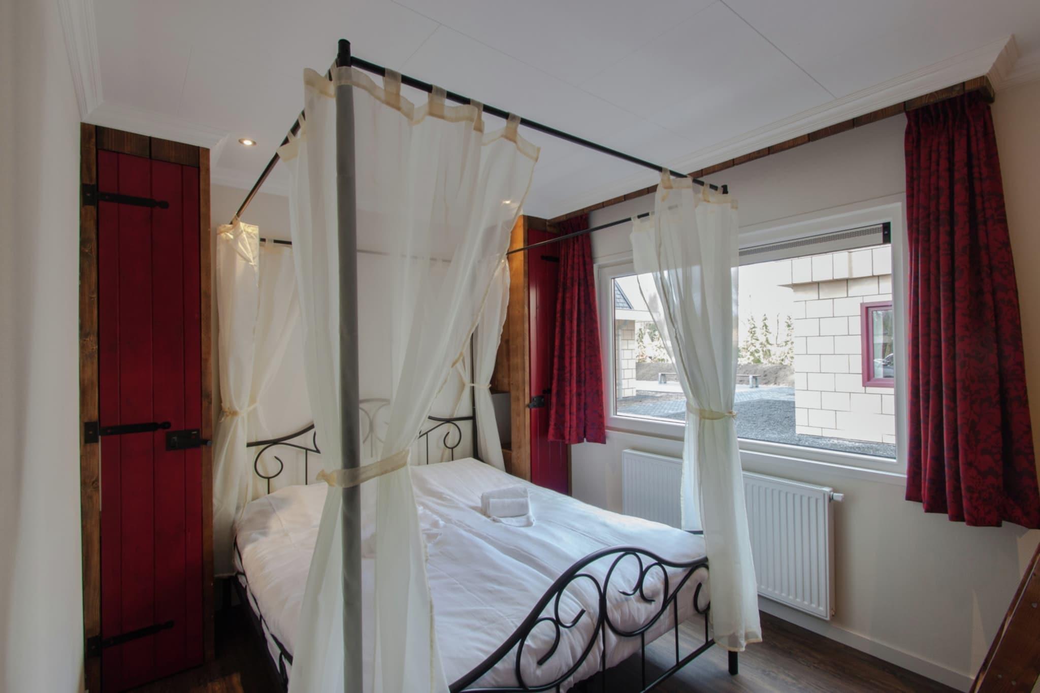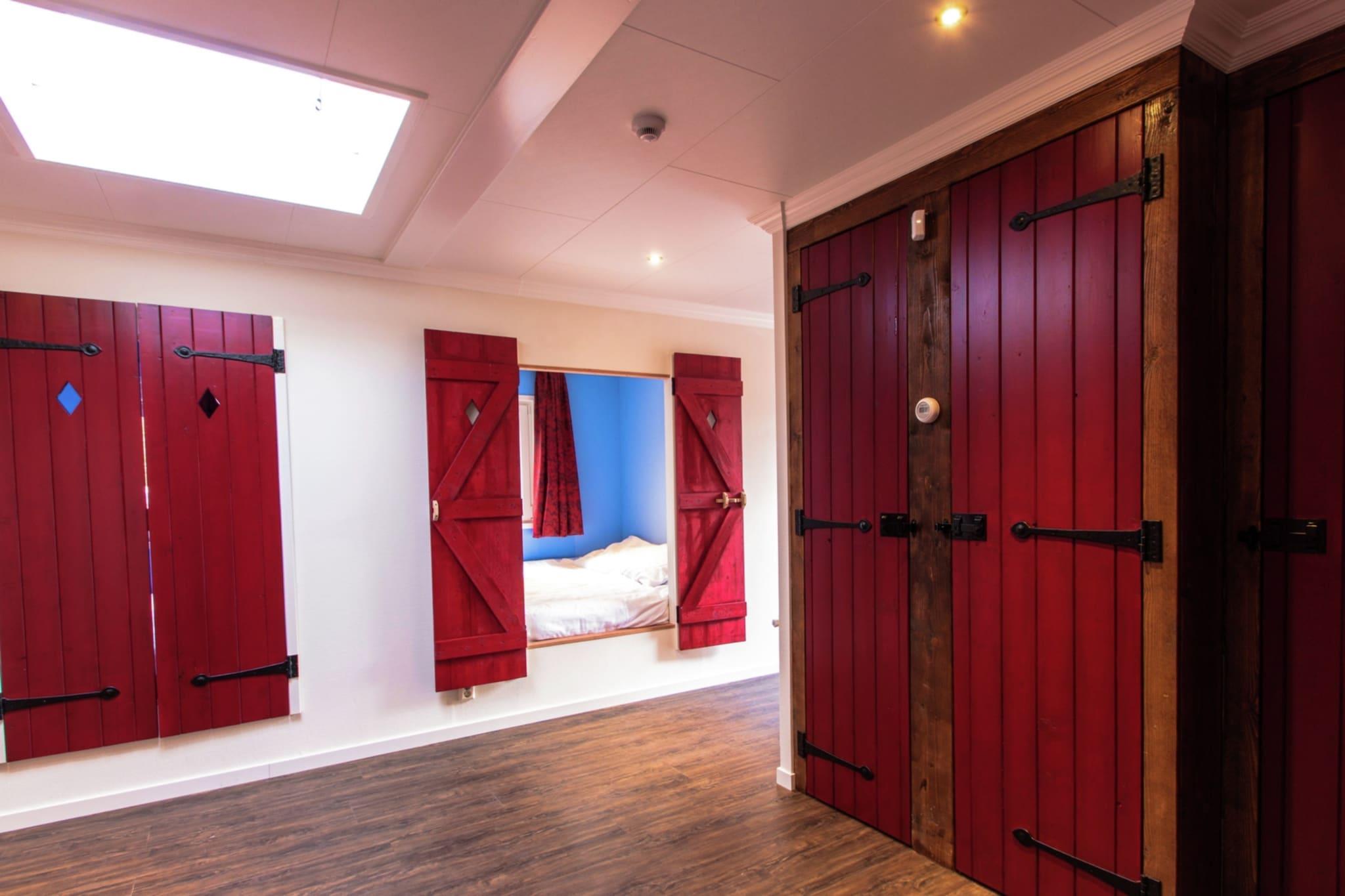 Til et kongeligt ophold tilbyder Residence de Eese flere typer gruppeindkvartering. Du kan vælge mellem 18 personers typen kaldet Eeserburcht og 28 personers typen kaldet Kasteel de Eese. Eeserburcht-typen består af to dele i en forhøjet position i udkanten af parken, der giver direkte udsigt til ferieparkens frit tilgængelige tennisbaner. Den 'levende fæstning' er et stort, fantastisk komfortabelt rum med et unikt kongeligt tema. Denne atmosfære forstærkes af de unikke håndlavede runde sofaer og det veludstyrede køkken, der blandt andet byder på et amerikansk køleskab og en ismaskine. Det smukke, lange franske vinbord er eminent velegnet til lange middage, hvor alle kan samles. Denne bygning har også to soveværelser, et badeværelse og et separat toilet. Den 'sove fæstning' er en separat bygning med tre soveværelser + tre bedst veludstyrede som og to badeværelser. Kasteel de Eese-typen er lige så behagelig og består endda af tre dele: en 'stor hal' og to 'sovende fæstninger'. Den store hall byder naturligvis på en rummelig, smukt indrettet stue med et fuldt udstyret køkken og en kogeø. Igen er det lange spisebord et rigtigt blikfang! I modsætning til Eeserburcht er alle soveværelser i de to andre bygninger. Hver sovende fæstning rummer tre soveværelser + tre sengestel og to badeværelser. Disse sovepladser inkluderer også et kongeværelse, et dronningsværelse og et prinsesseværelse. Begge typer har en smuk terrasse med havemøbler nok til at sidde på alle! For grupper med en anden sammensætning end familie, anmodes der om et depositum på 1000 euro.