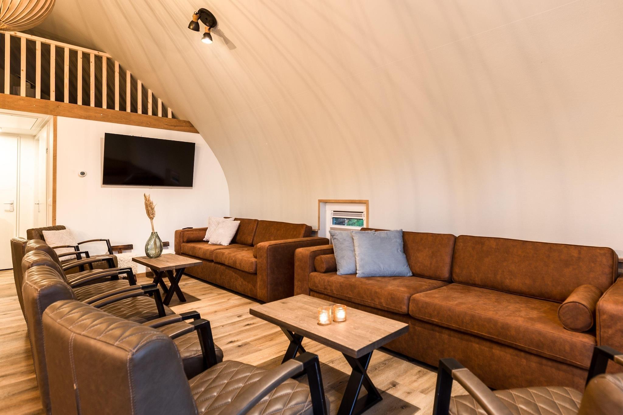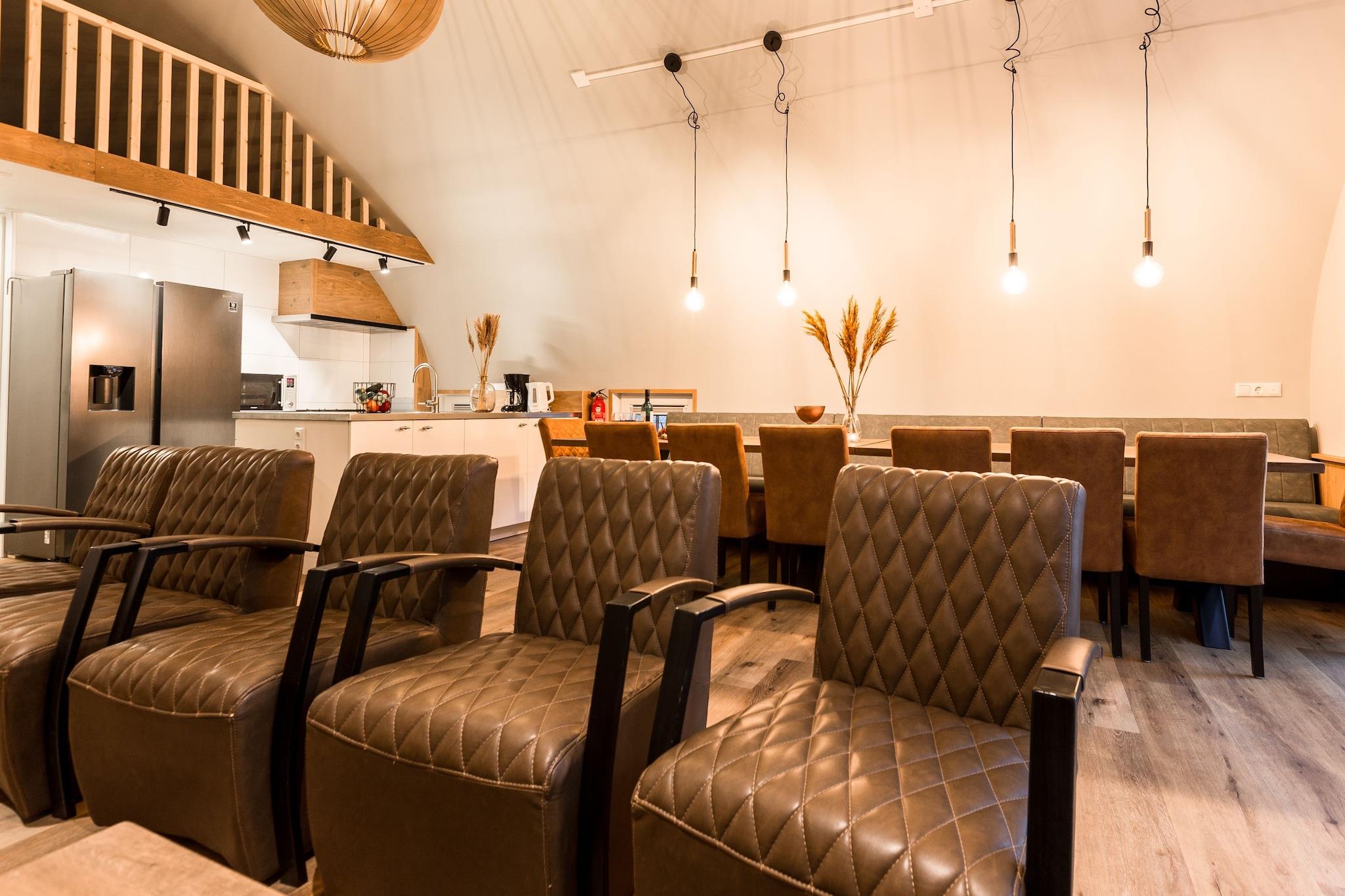 En stilfuld gruppeflugt i naturen Nyd den perfekte blanding af komfort, stil og privatliv i denne smukt designede stråtagsvilla - ideel til store familier eller multi-generations getaways. Fordelt på to separate hytter tilbyder denne bolig en rummelig stue med hyggelige siddepladser, et langt spisebord til fælles måltider og et åbent køkken, der holder alle forbundet. Med 10 soveværelser og 3 moderne badeværelser er der plads til, at alle kan slappe af og lade op, uanset om du samles til festligheder eller blot flygter til naturen. Omgivet af fredelige skove Beliggende i de frodige grønne De Bult nær Steenwijk, giver dette tilflugtssted en rolig flugt fra hverdagens travlhed. Franske døre åbner ud til en solbeskinnet terrasse, perfekt til morgenkaffe eller aftensnak under stjernerne. Gæsterne kan nyde den udendørs pool (åben maj-sep) og udforske nærliggende vandre- og cykelstier, der snor sig gennem skove, enge og charmerende hollandske landsbyer. Kæledyrsvenlige eventyr venter Tag din lodne ven med! Det omkringliggende område byder på masser af kæledyrsvenlige vandreruter gennem nationalparken Weerribben-Wieden, og nogle lokale caféer byder kæledyr velkommen på deres terrasser. Uanset om det er gåture ved søen, gåture i skoven eller at slappe af i haven, vil både du og dine kæledyr føle sig hjemme i denne fredelige oase på landet.