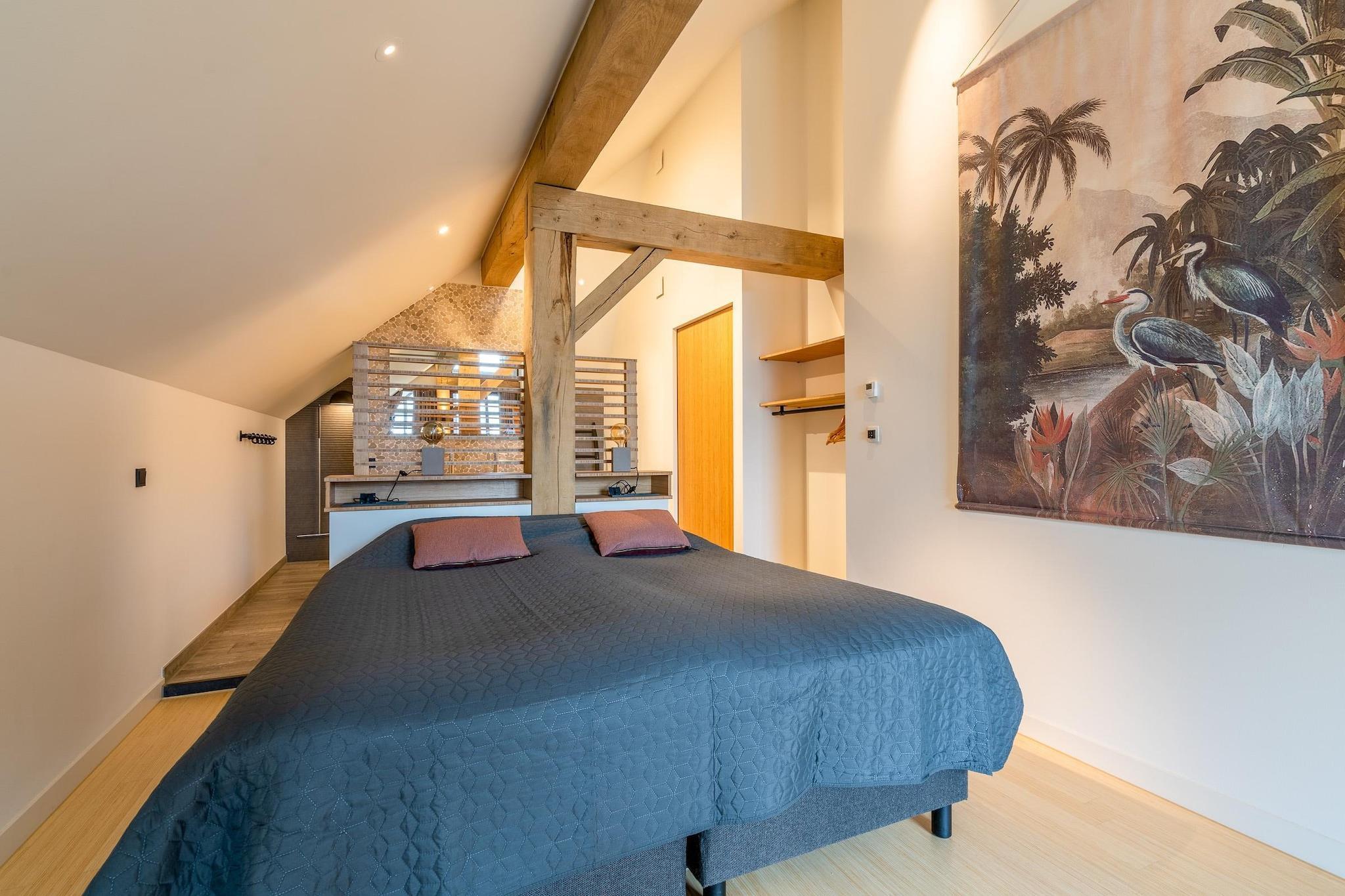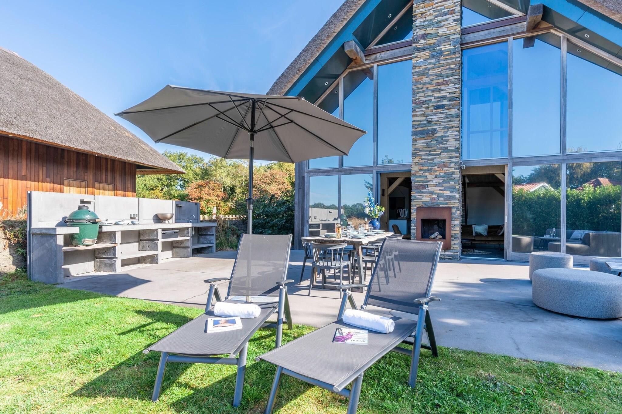 Denne luksusvilla ligger i udkanten af badebyen De Koog, nær stranden og skoven. Inspireret af den typiske Texel-fårefold tilbyder villaen en vidunderlig udsigt over den sydvendte have. Dette er et absolut topmoderne hus med et unikt og smagfuldt interiør. Den rummelige stue har et opholdsområde med pejs, smart-tv og musikanlæg. Der er en spiseplads med et stort spisebord til seks personer. Det åbne køkken er fuldt udstyret med forskellige indbyggede apparater, herunder en kombinationsmikrobølgeovn, dampovn, opvaskemaskine, Quooker og kaffemaskine. Der er et soveværelse i stueetagen med eget badeværelse med bruseniche med to regnbrusere og en dobbelt håndvask. Ovenpå er der to soveværelser med eget badeværelse. Disse badeværelser har en rummelig bruseniche og badekar. Alle soveværelser i huset har komfortable boxmadrassenge, og soveværelserne på første sal har et tv. Sengene er redt som standard, og håndklæder er inkluderet. Opholdsstuen åbner direkte ud til terrassen via skydedøre. Den sydvendte terrasse er udstyret med havemøbler. Der er en trampolin til børnene. Der er et fuldt udstyret udendørskøkken med The Bastard BBQ. Det brændefyrede spabad er tilgængeligt året rundt. Nyd de vidunderlige dufte, naturens lyde, den flammende brændeild og stjernerne på himlen. Haven er lukket, delvist med et hegn og delvist med en naturlig "Texel-havemur". Dette er et energineutralt hjem. Der er vaskemaskine, tørretumbler og børnemøbler til rådighed. Gratis Wi-Fi og yderligere tyske kanaler er tilgængelige. Der er også en gratis ladestation til elbiler og cykler. Villaen opvarmes og køles af en varmepumpe. Gulvvarme og -køling sikrer en behagelig temperatur selv om sommeren. Ved ankomst modtager du en voucher til en sæk brænde og en sæk trækul til brug af pejsen, spabadet og grillen. Ekstra poser kan købes på Total-tankstationen i De Koog. Du kan også bestille Big Bad-brænde ved din reservation.