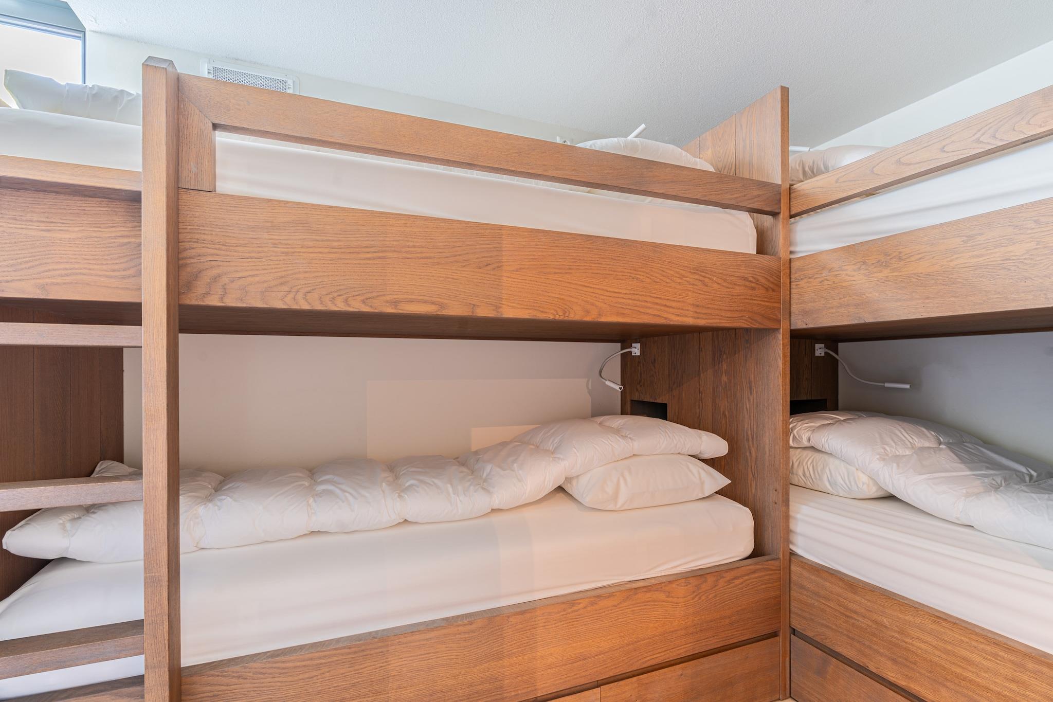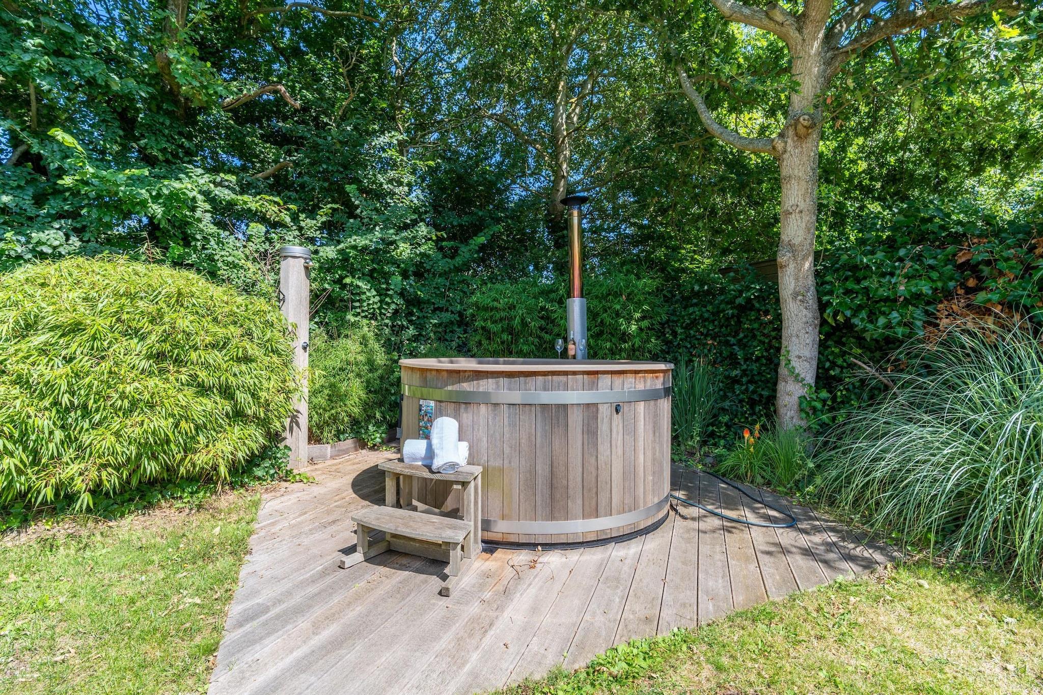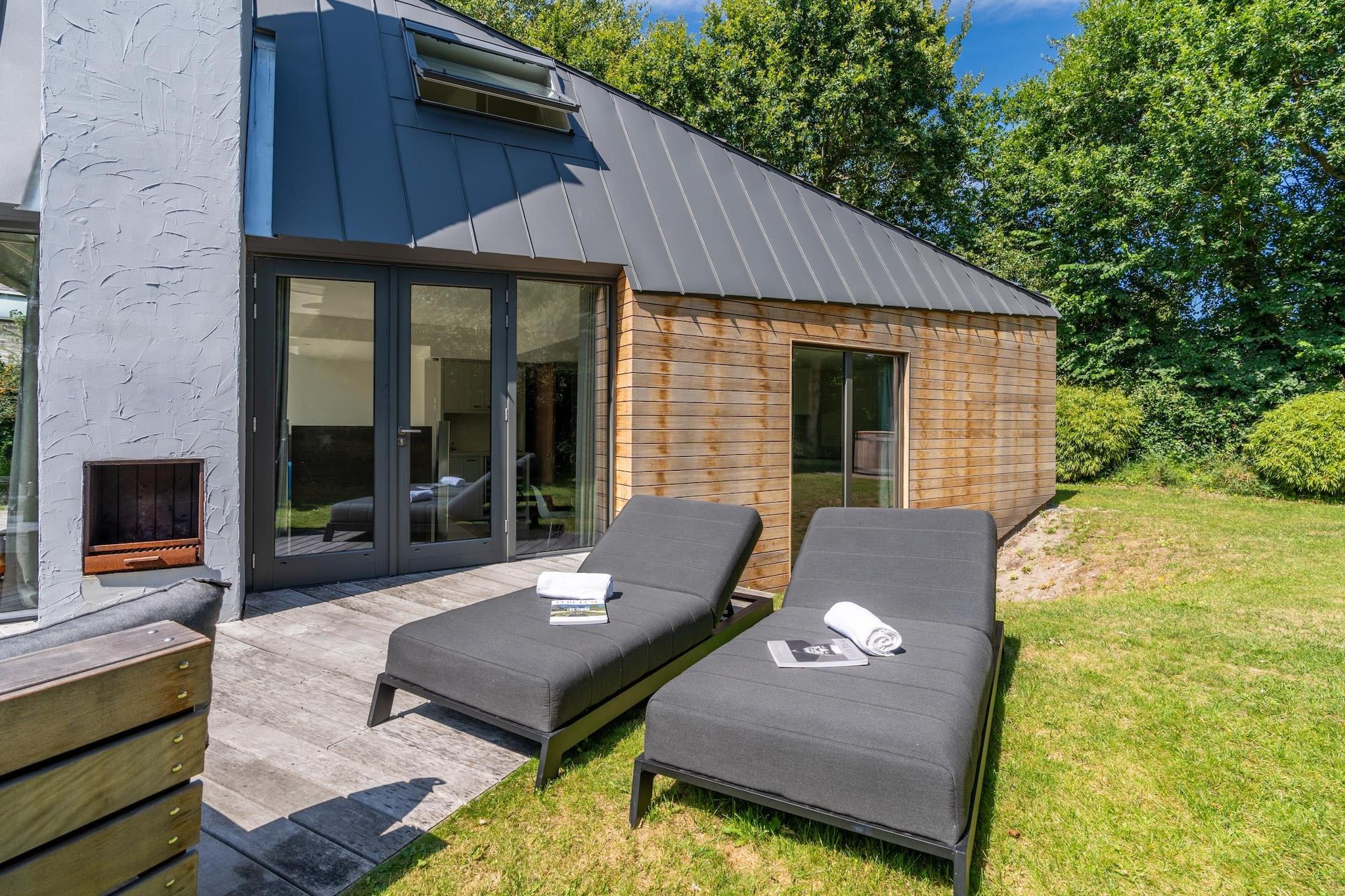 Rummelig og charmerende villa til 8 personer, beliggende nær skoven i en rolig, lille feriepark. Den rummelige stue er villaens hjerte. Her finder du et generøst opholdsområde med en komfortabel hjørnesofa, et smart-tv og en hyggelig brændeovn. Når du tænder op, fyldes rummet straks med varme og en indbydende atmosfære. Perfekt til lange aftener sammen. Det moderne åbne køkken er fuldt udstyret med alt, hvad du behøver. Vinkøleskabet sikrer, at din yndlingsvin altid serveres ved den ideelle temperatur. Det store spisebord har plads til op til otte personer, ideelt til en omfattende middag eller en hyggelig spilleaften. Huset har i alt fire soveværelser. Via trappen til kælderen når du to dejlige soveværelser, et vaskerum og et dejligt badeværelse med bruseniche, dobbelt håndvask og badekar. Perfekt til fuldstændig afslapning. På første sal finder du yderligere to soveværelser, en privat sauna til afslapning og et andet badeværelse med bruseniche og håndvask. Tre soveværelser er møbleret med dobbeltsenge med enkeltmadrasser, mens det fjerde værelse er møbleret med to køjesenge, perfekt til børn. Udendørs er det lige så behageligt som indendørs. Opholdsstuen og spisegruppen giver mulighed for at slappe af eller spise sammen. Det brændefyrede spabad og den udendørs bruser er tilgængelige året rundt. Duften af brændende brænde, naturens bløde lyde omkring dig og en funklende stjernehimmel, når du kigger op - alt dette vækkes til live på denne ejendom. Der er en trampolin til rådighed for børn, så de også kan have det sjovt. Der er én parkeringsplads til rådighed; andre biler kan parkeres langs vejen uden for parken.