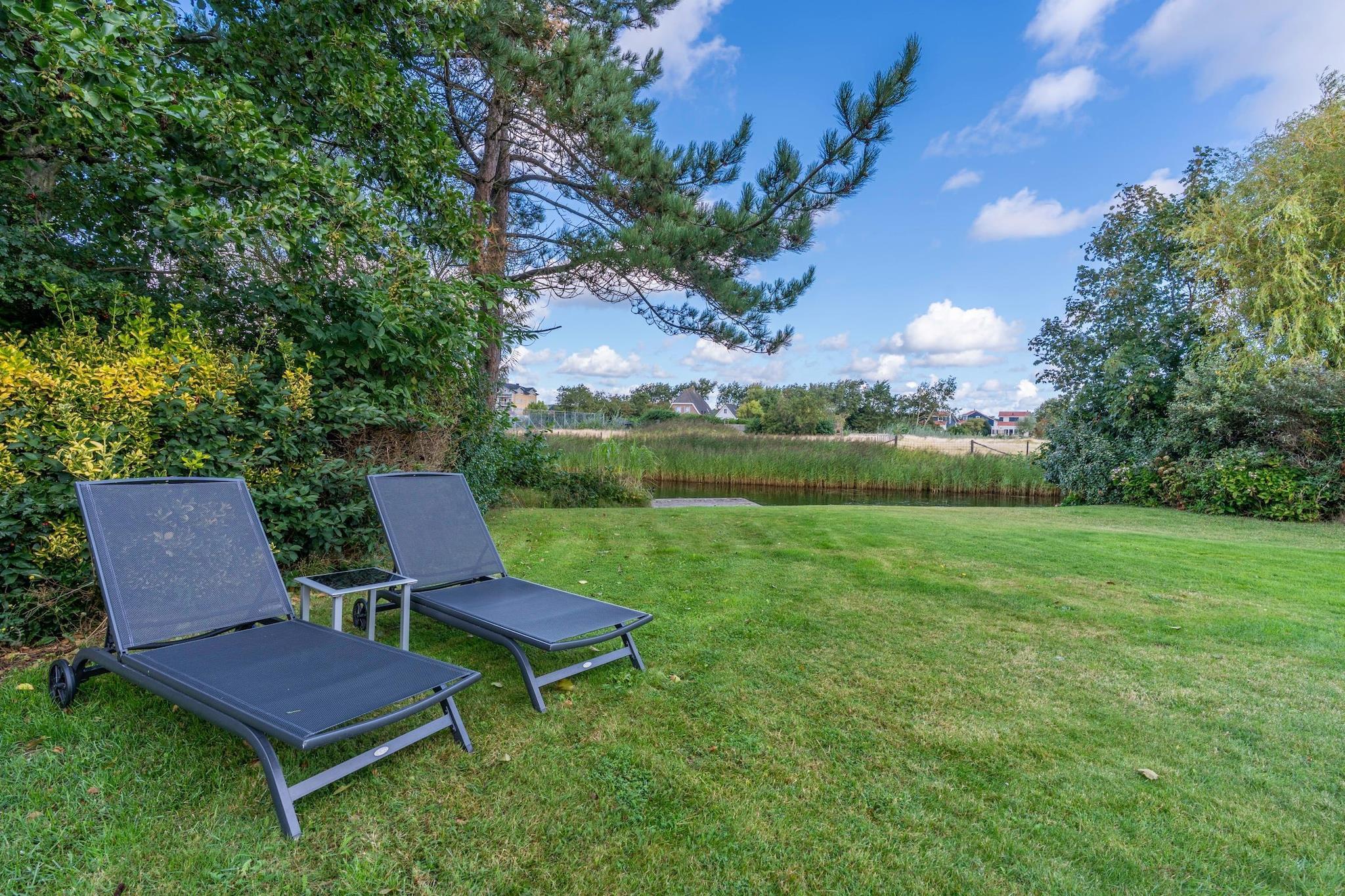 Denne charmerende villa til fire personer har en dejlig, rummelig have med en sydvestvendt terrasse. Den ligger nær centrum af De Koog, Nordsøstranden og et skovområde. Den rummelige, lyse stue har et siddeområde, tv, musikanlæg og læsekrog. Det rummelige åbne køkken er fuldt udstyret. Der er to soveværelser, begge placeret på første sal. Det ene har en dobbeltseng og det andet to enkeltsenge. Badeværelset er udstyret med bruser, spabad, dobbelt håndvask og toilet. Et separat toilet er også placeret i stueetagen. Fra stuen åbner franske døre ud til terrassen og den rummelige have ved vandet. Terrassen er møbleret med havemøbler, inklusive et loungesæt. For børnene er der en fælles legeplads med forskellige legeredskaber i nærheden af villaen. To private parkeringspladser er til rådighed. Dette feriehus ligger på Villapark Kamperfoelie, en rummelig, lille og intim femstjernet park i udkanten af De Koog. Denne park byder på luksuriøse villaer, der tilbyder rigelig privatliv og komfort. De ligger kun 5 minutters gang fra den charmerende landsbymidte og mindre end 15 minutter fra stranden. Kort sagt: et perfekt sted at opdage fred, plads og ø-følelsen.