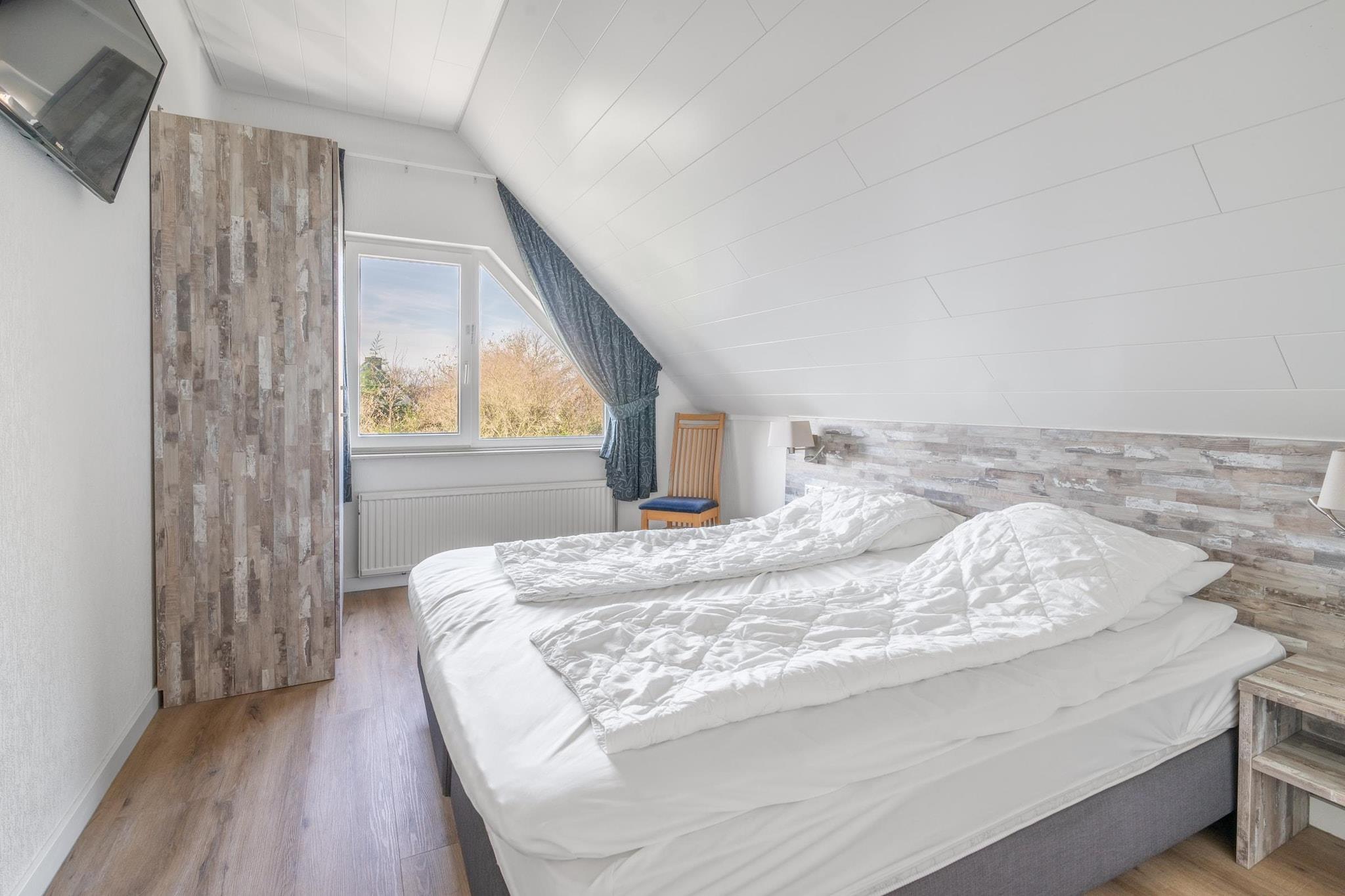 Denne charmerende villa til fire personer har en dejlig have. Den ligger nær centrum af badebyen De Koog, stranden ved Vesterhavet og et skovområde. Den rummelige, lyse stue har et opholdsområde, tv, musikanlæg og læsehjørne. Det rummelige åbne køkken er fuldt udstyret. Der er to soveværelser, begge placeret på første sal. Det ene har en dobbelt boxmadras og det andet to enkeltsenge med boxmadras. Begge soveværelser er udstyret med tv. Badeværelset har bruser, spabad, dobbelt håndvask og toilet. Der er også et separat toilet i stueetagen. Terrassedøre fra stuen åbner ud til terrassen og haven. Terrassen er møbleret med havemøbler. For børnene er der en fælles legeplads med forskellige legeredskaber i nærheden af villaen. To private parkeringspladser er til rådighed. Dette feriehus ligger på Villapark Kamperfoelie, en rummelig, lille og intim femstjernet park i udkanten af badebyen De Koog. Denne park byder på luksuriøse villaer, der tilbyder rigelig privatliv og komfort. De ligger kun 5 minutters gang fra den charmerende landsbymidte og mindre end 15 minutter fra stranden. Kort sagt: et perfekt sted at opdage fred, plads og ø-følelsen.