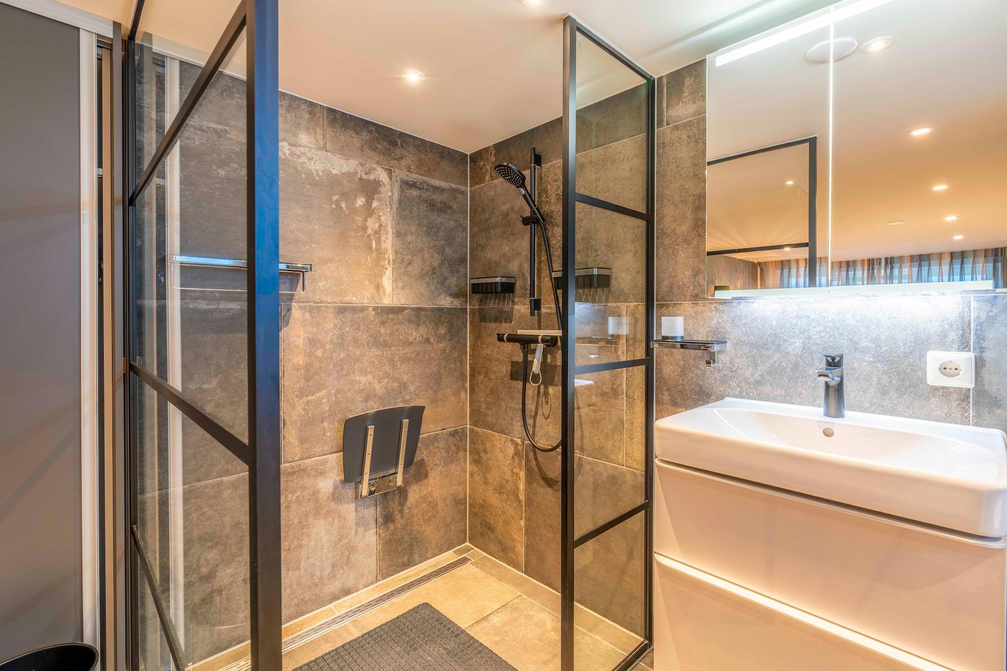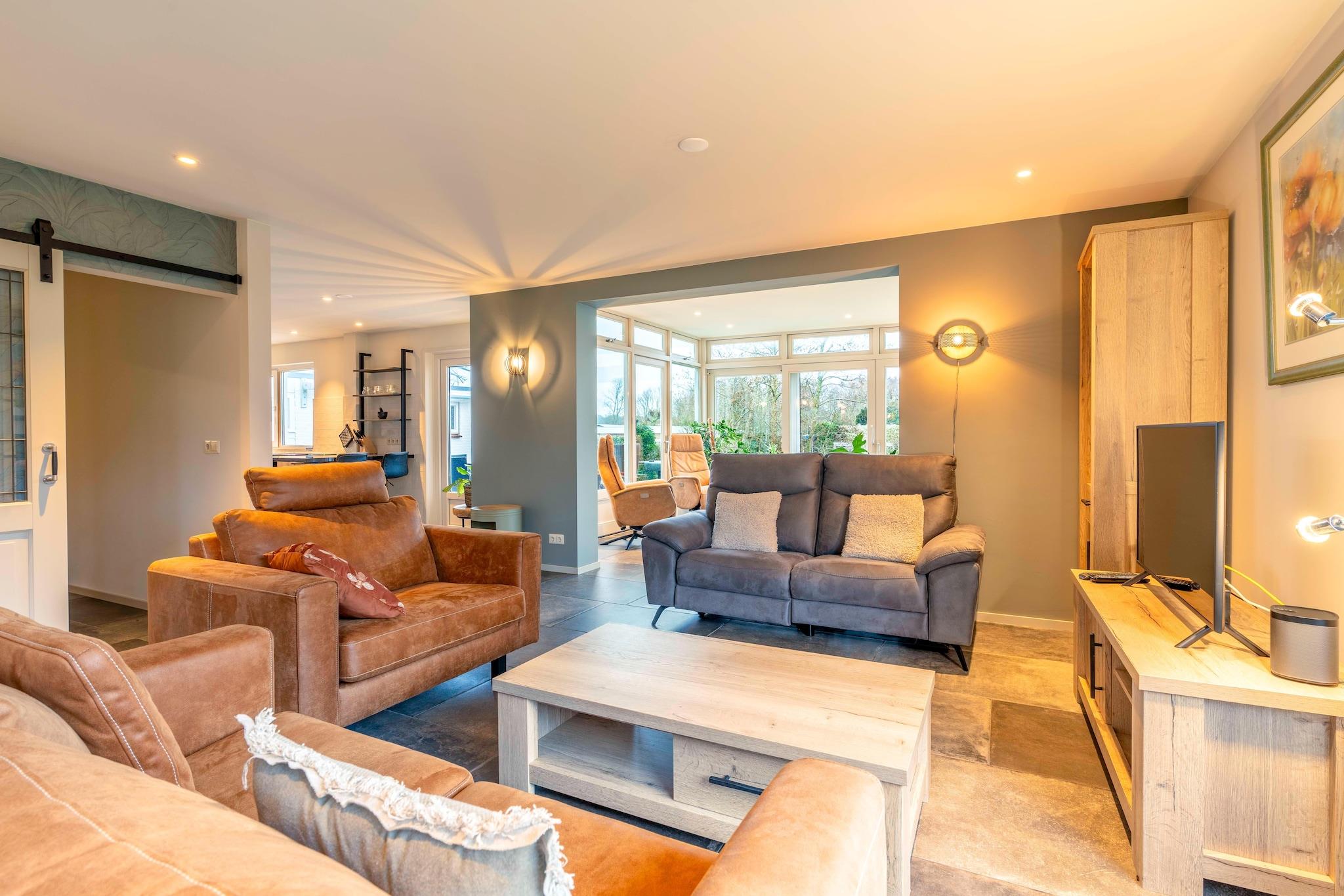 Et moderne og charmerende feriehus til 6 personer med en fuldt lukket have, beliggende nær badebyen De Koog, stranden og skoven. Dette feriehus er smagfuldt møbleret og fuldt udstyret. Entréen fører ind i stuen med en dejlig siddegruppe og smart-tv. Udenhaveområdet har en spiseplads med spisebord til 6 personer. De mange vinduer gør det til et dejligt lyst rum med udsigt over haven og terrassen. Det åbne køkken er fuldt udstyret med forskellige indbyggede apparater, herunder en kombinationsovn, opvaskemaskine og diverse kaffemaskiner. Der er tre soveværelser. Det ene ligger i stueetagen og har en komfortabel dobbelt boxmadras og et tv. Dette soveværelse har også et ensuite badeværelse med en rummelig bruseniche, håndvask og toilet. Ovenpå er der to soveværelser, begge med to enkeltsenge med boxmadras. Det ene soveværelse har et tv og en privat terrasse. Der er også et badeværelse på første sal med bruser, håndvask og toilet. Et separat toilet er placeret i stueetagen. Fra vinterhaven åbner skydedøre ud til haven og den sydøstvendte terrasse, hvilket giver den perfekte mulighed for at nyde naturen. Terrassen er møbleret med havemøbler, og haven er fuldt indhegnet. Vaskemaskine og tørretumbler er placeret i bryggerset. Et ekstra køleskab med fryser er også tilgængeligt i bryggerset. Gratis Wi-Fi er tilgængelig. Børnemøbler kan lejes mod et gebyr. Dette er en ikke-ryger ejendom. Ét kæledyr er tilladt mod et tillægsgebyr. Privat parkering til én bil i haven (porten åbnes med en fjernbetjening). Andre biler kan parkeres på gaden. Der er flere dørtrin i huset, herunder i stueetagen.
