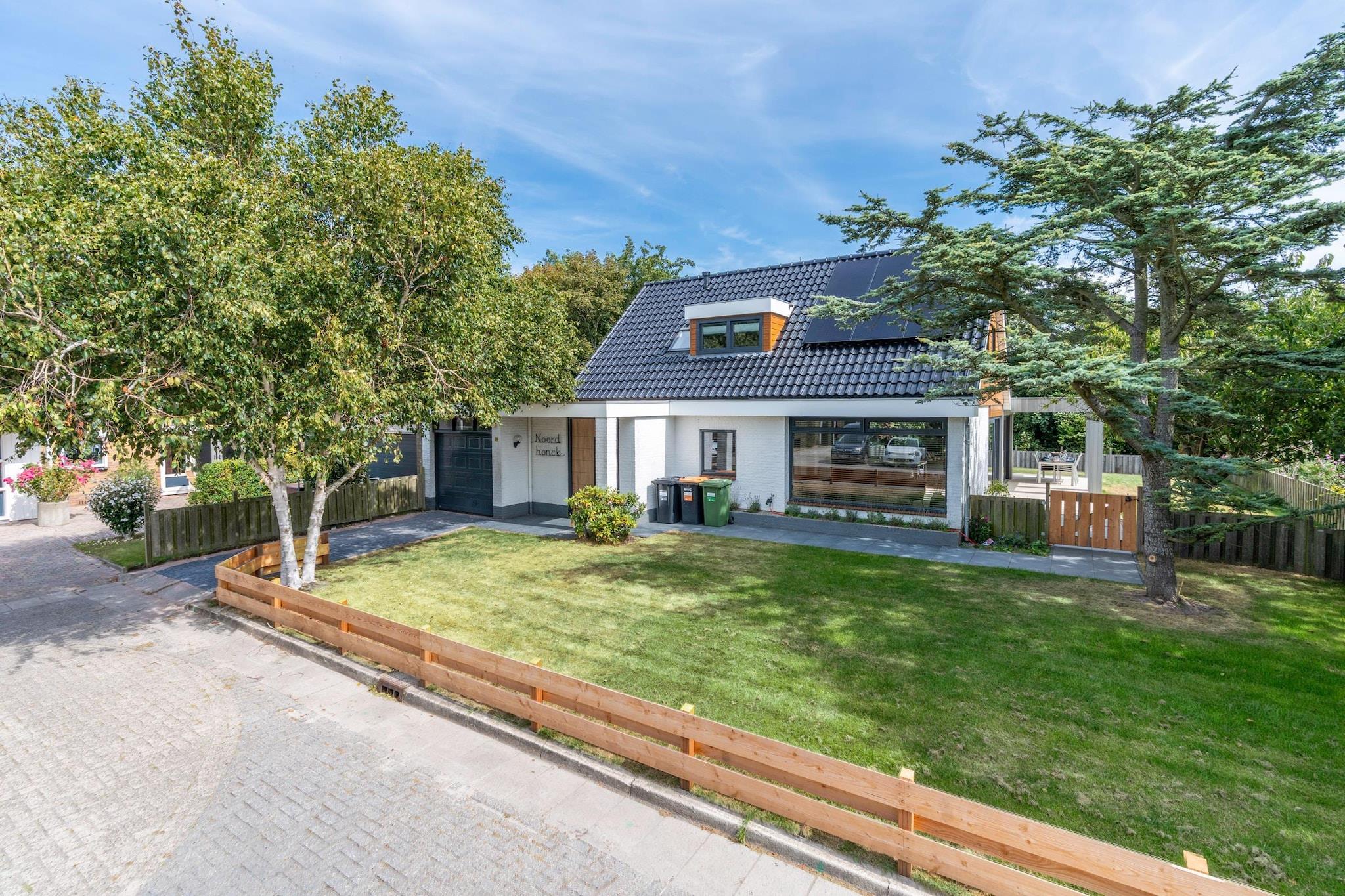 Luksuriøs og charmerende familievilla til 8 personer. Roligt beliggende i badebyen De Koog, nær strand, klitter og skov. Dette feriehus er smagfuldt møbleret og fuldt udstyret. Ved indgangen til stuen finder du et opholdsområde med smart-tv og en rummelig spiseplads med et stort spisebord til 8 personer. Det åbne køkken er fuldt udstyret med forskellige indbyggede apparater, herunder en kombineret mikrobølgeovn, opvaskemaskine og diverse kaffemaskiner. Køkkenøen med skamler garanterer vidunderlige stunder sammen med venner og familie. Der er et soveværelse i stueetagen med eget badeværelse med bruseniche og håndvask. Ovenpå er der fire soveværelser og et separat andet badeværelse. Dette badeværelse er udstyret med badekar, bruseniche, håndvask og toilet. Alle soveværelser i huset har aircondition og komfortable boxmadrassenge, hvoraf fire har dobbelte topmadrasser (to er trekvartsenge) og et med en enkelt topmadras. Der er også et separat toilet i stueetagen. Stuen åbner direkte ud til terrassen gennem skydedøre og vinduer. Den rummelige terrasse er møbleret med havemøbler. Haven er helt lukket og vender mod sydøst. Du kan trygt opbevare dine cykler eller parkere din bil i garagen. Der er én privat parkeringsplads i indkørslen og én i garagen, og der er yderligere fælles parkeringspladser foran huset. Der er vaskemaskine, tørretumbler og børnemøbler. Yderligere børnemøbler er tilgængelige efter anmodning og mod et gebyr. Gratis Wi-Fi. Rygning er ikke tilladt.