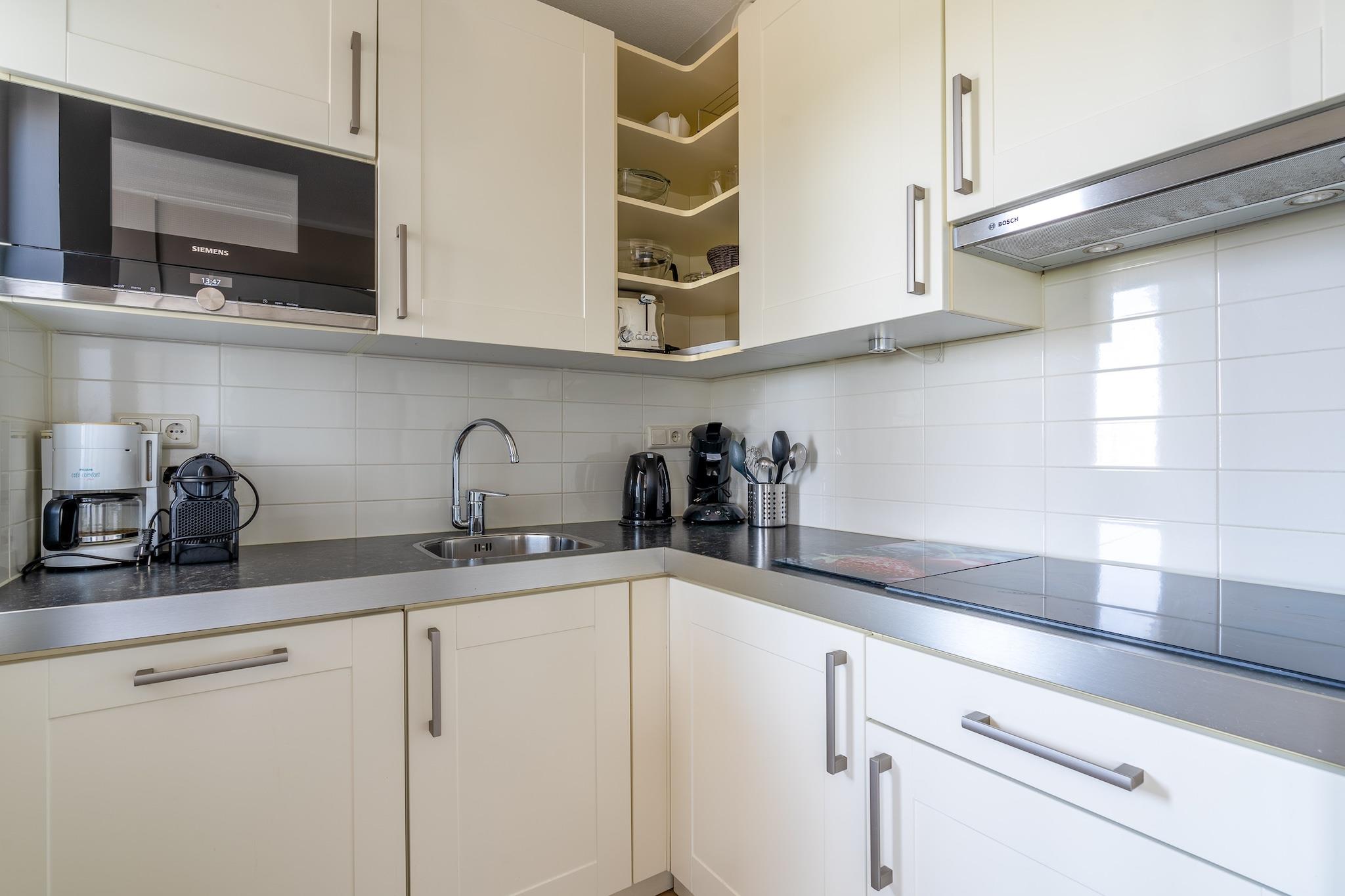 Charmerende hjørnelejlighed på første sal med sydvendt altan. Lejligheden har diagonal udsigt over havet og klitterne. Stuen har et opholdsområde, tv og en spiseplads med spisebord til fire personer. Det åbne køkken er fuldt udstyret med opvaskemaskine, kombineret mikrobølgeovn, køleskab med fryser og forskellige kaffemaskiner. Der er to soveværelser, hver med to elektrisk justerbare enkeltsenge. Det ene soveværelse har et tv. Det velholdte badeværelse har badekar, bruser og dobbelt håndvask. Toilettet er separat. Den sydvendte altan er udstyret med havemøbler. Fra terrassen kan man beundre en smuk solopgang. Et vaskerum er tilgængeligt i komplekset mod et gebyr. Børnemøbler er tilgængelige efter anmodning og mod et gebyr. Gratis Wi-Fi. Rygning er ikke tilladt. Der er én parkeringsplads på stedet pr. bolig.