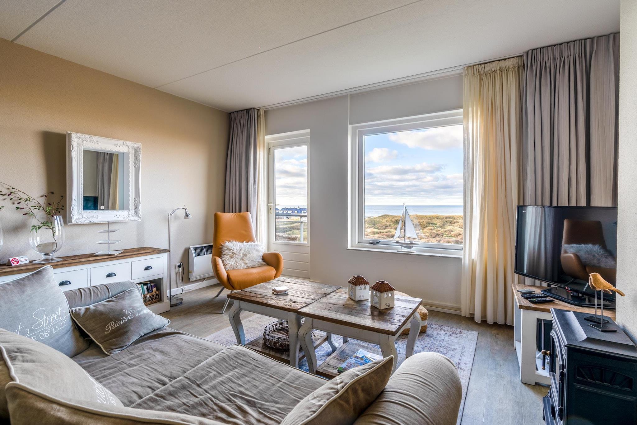 Komfortabel lejlighed til to personer på første sal med en smuk udsigt over Vesterhavet og klitterne. Et dejligt badeværelse med solbruser. Den lyse stue har et opholdsområde med tv og en dekorativ pejs, der skaber en hyggelig atmosfære, når man tænder den. Der er også en spiseplads med et spisebord til fire personer. Det pæne åbne køkken er fuldt udstyret med opvaskemaskine, kombineret mikrobølgeovn, køleskab med fryser og flere kaffemaskiner. Soveværelset har to enkeltsenge med boxmadras og et tv. Fra soveværelset er der også udsigt over Vesterhavet. Det pæne badeværelse har en bruseniche med regnbruser og solbruser samt en dobbelt håndvask. Toilettet er placeret separat. Den vestvendte balkon tilbyder en smuk udsigt over Vesterhavet. Havemøbler er til rådighed. Et vaskerum er tilgængeligt i komplekset mod et gebyr. Børnemøbler er tilgængelige efter anmodning og mod et gebyr. Gratis Wi-Fi. Rygning er ikke tilladt. Der er 1 parkeringsplads til rådighed pr. bolig på stedet.