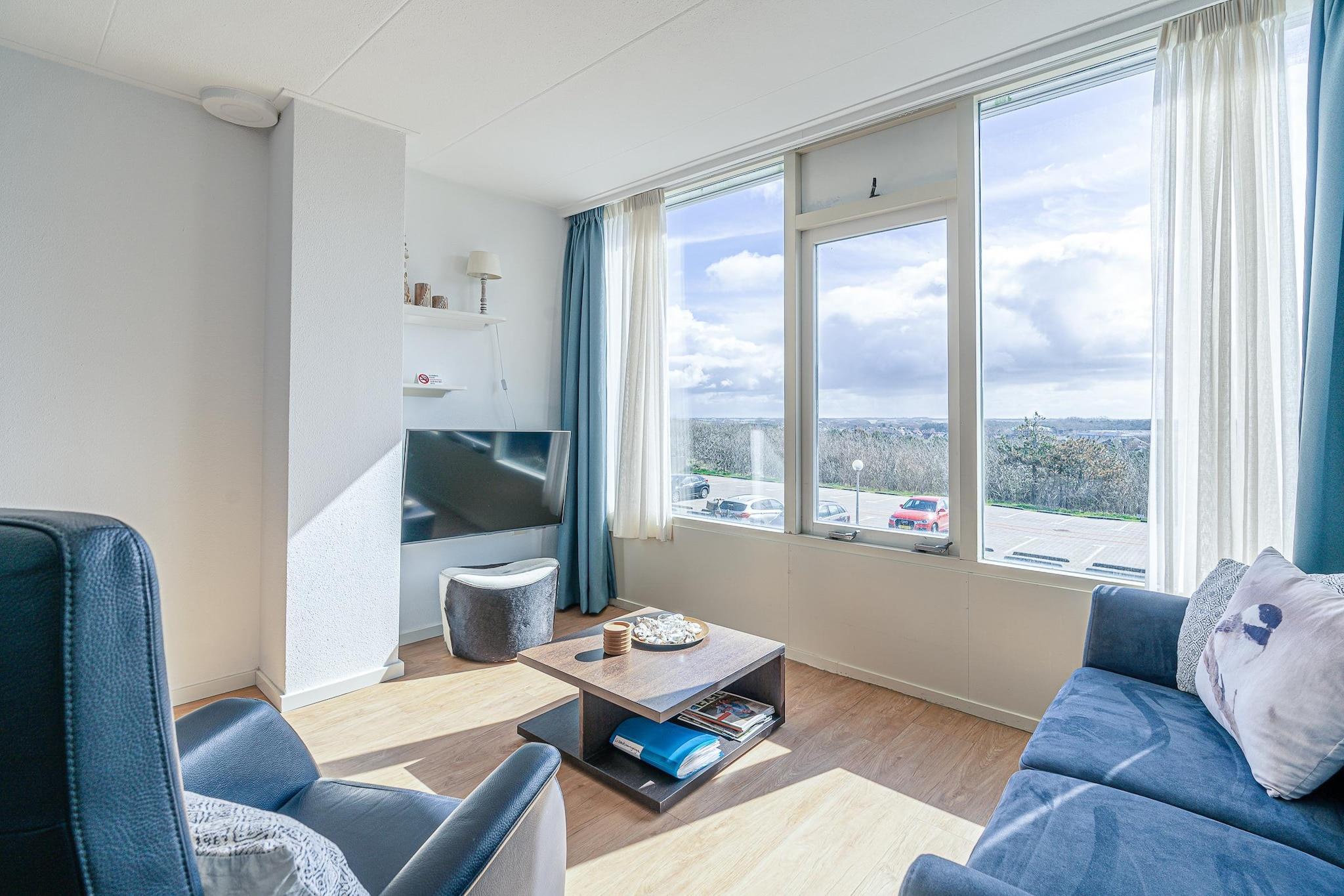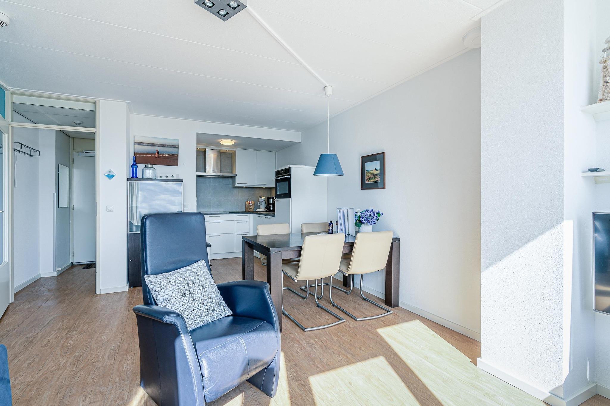 Hyggeligt møbleret lejlighed til 2 personer på første sal med balkon og smuk udsigt over Vesterhavet. Stue med siddeområde, TV og spiseplads med spisebord til 4 personer. Det pæne åbne køkken er fuldt udstyret med opvaskemaskine, kombineret mikrobølgeovn, induktionskogeplade, køleskab med fryser og diverse kaffemaskiner. Der er et soveværelse med en dobbelt boxmadras. Fra soveværelset er der en smuk udsigt over Vesterhavet. Det renoverede badeværelse har bruseniche og et rummeligt håndvaskbord. Toilettet er placeret separat. Fra balkonen er der en smuk panoramaudsigt over Vesterhavet. Havemøbler og elektrisk markise er til rådighed. Et vaskerum er tilgængeligt i komplekset mod et gebyr. Børnemøbler kan lejes efter anmodning og mod et gebyr. Gratis Wi-Fi. Rygning er ikke tilladt. Der er én parkeringsplads på stedet pr. bolig.