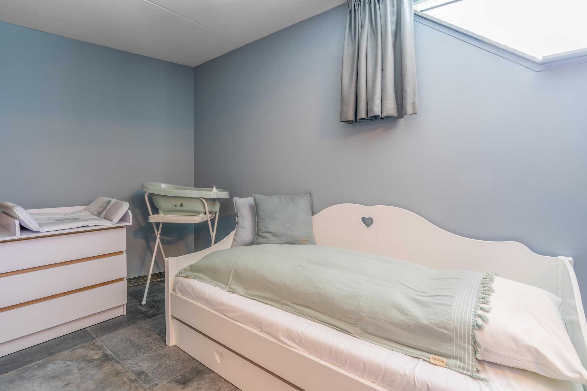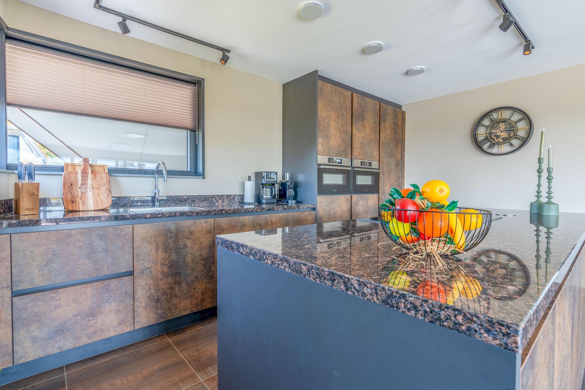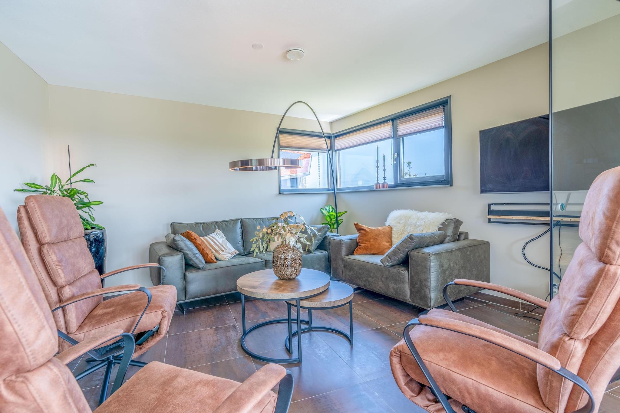 Nyd denne naturvilla til 8 personer beliggende på Nieuwlanderweg, i udkanten af naturreservatet Waalenburg, hjertet af Texel. Inspireret af den typiske Texel-fårefold, kan villaen prale af en vidtstrakt udsigt over det store naturreservat Waalenburg. Dette er et helt fantastisk hjem med et unikt og smagfuldt interiør. Den rummelige stue bringer roen i Texel-landskabet indenfor. Takket være de enorme glasvægge (udstyret med skydedøre) flyder stuen problemfrit ud i den store have. Den generøse stue har også et opholdsområde med brændeovn, smart-tv og musikanlæg. Det åbne køkken med en stor kogeø er fuldt udstyret med forskellige indbyggede apparater. Kælderen byder på to store soveværelser og et børneværelse med naturligt lys. Det ene soveværelse har et ensuite badeværelse med en rummelig bruseniche med regnbruser og håndvask. Det andet soveværelse deler badeværelse med wellnessrummet. Dette badeværelse har også en rummelig bruseniche med regnbruser og håndvask. Kælderen huser også wellnessrummet, som inkluderer en finsk sauna og en infrarød sauna, egnet til 6-8 personer. Ovenpå finder du to soveværelser, begge med eget badeværelse med rummelig bruseniche med regnbruser og håndvask. Et af disse badeværelser har også et badekar. Alle soveværelser i huset har komfortable boxmadrassenge og et smart-tv. Der er vaskemaskine og tørretumbler, børnemøbler, Wi-Fi og yderligere tyske kanaler. Der er også ladestationer til to elbiler og cykler. Gulvvarme og -køling sikrer en behagelig temperatur. Villaen er tilgængelig via trapper.