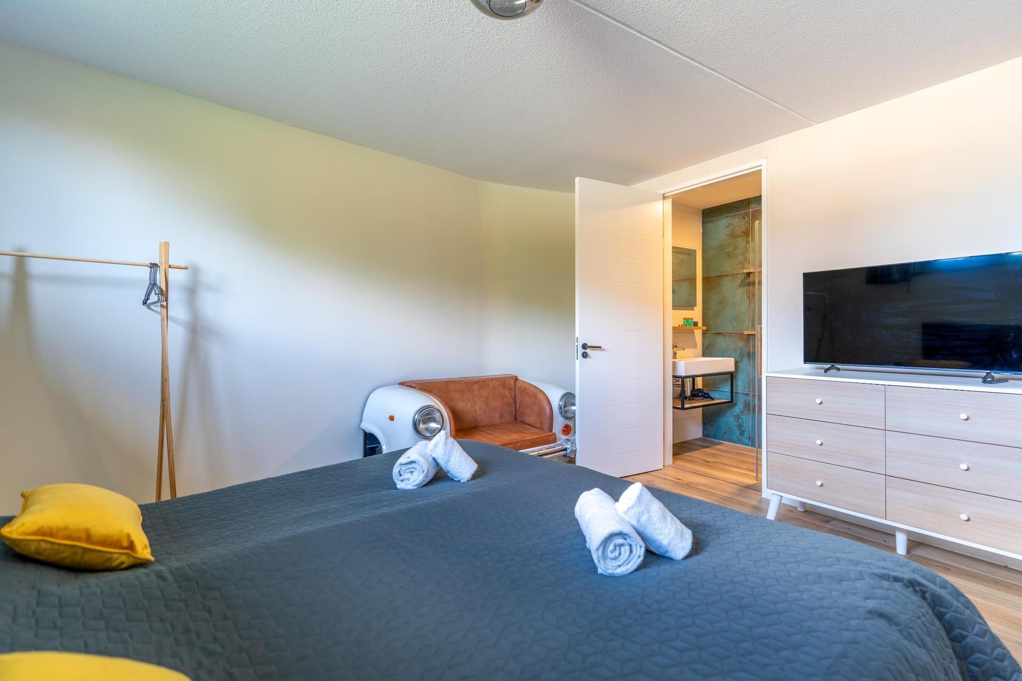 Moderne, luksuriøs og bæredygtig naturvilla beliggende i Waalerburght. Luksuriøs og bæredygtig naturvilla til 8 personer beliggende på Nieuwlanderweg og i udkanten af naturreservatet Waalenburg, hjertet af Texel. Den ligger tre kilometer fra Den Burg og badebyen De Koog. Denne villas design er inspireret af den typiske Texel-fårefold og tilbyder panoramaudsigt over det vidtstrakte naturreservat Waalenburg. Dette er et absolut førsteklasses hjem med et unikt og smagfuldt interiør. Den rummelige stue bringer roen i Texel-landskabet indenfor. Takket være de enorme glasvægge (udstyret med skydedøre) flyder stuen problemfrit over i den store have. Nyd den vidtstrakte udsigt over det åbne Texel-landskab. Det unikke, arketypiske design garanterer en vidunderlig atmosfære, selv i de koldere årstider. Den rummelige stue har også et opholdsområde med brændeovn, smart-tv og musikanlæg. Det store åbne køkken er perfekt til fælles madlavning. Der er en spiseplads med et stort spisebord til 8 personer. Det åbne køkken med en stor kogeø er fuldt udstyret med forskellige indbyggede apparater. Kælderen byder på to store soveværelser med naturligt lys og et ensuite badeværelse. Disse badeværelser har en rummelig bruseniche med regnbruser og vaskeskabe. Kælderen har også en finsk sauna, der er egnet til 6-8 personer. Ovenpå finder du to soveværelser, begge med ensuite badeværelser med en rummelig bruseniche med regnbruser og vaskeskabe. Et af disse badeværelser har også et badekar. Alle soveværelser i huset har komfortable boxmadrassenge og et smart-tv. Opholdsstuen åbner direkte ud til terrassen via skydedøre. Terrassen er udstyret med havemøbler, et legesæt til børnene og et udendørs køkken med en Weber-grill. Den østvendte terrasse giver dig mulighed for at nyde de smukkeste solopgange. Energineutrale boliger. De tekniske installationer er placeret i kælderen, og et separat rum huser vaskemaskine og tørretumbler. Børnemøbler er tilgængelige. Gratis Wi-Fi og yderligere tyske kanaler er tilgængelige. Ladestationer til to elbiler og elcykler. Villaen opvarmes og køles af en varmepumpe. Gulvvarme og -køling sikrer en behagelig temperatur i alle årstider. Villaen er tilgængelig via trapper.