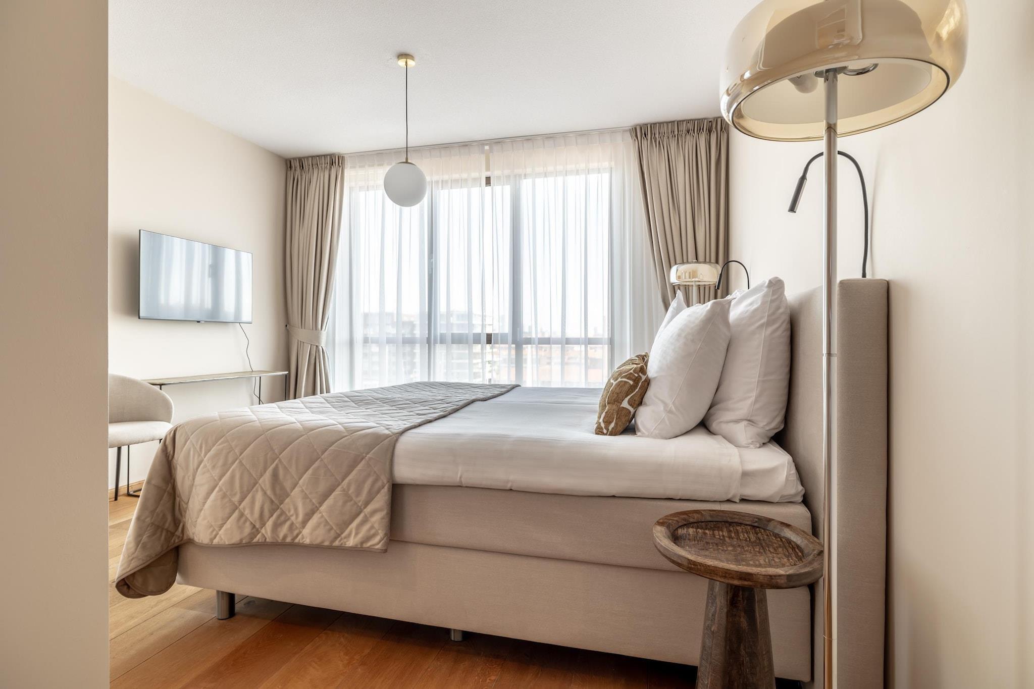 This luxurious 2 bedroom 160 m2 (!) penthouse apartment is part of the Nautical Center Scheveningen located at the second inner harbor of Europe's largest and fashionable bathing resort of Scheveningen, only 15 minutes away from the vibrant city center of The Hague with impressive hotspots like Madurodam and the Louwman Car Museum. Apartment no. 42a has a spacious 30 m2 terrace offering a stunning view on the exclusive seaworthy yachts. It includes a secured private parking from where you can take an elevator to the apartment entrance. The apartment itself has been beautifully designed and furnished to the highest standard. It offers essentials such as high speed internet, a large SMART TV, a fully equipped kitchen, a spacious bathroom, a separate toilet and laundry facilities. The comfortable boxspring beds guarantee a good night sleep. Within walking distance you find South beach, some of the best restaurants, a supermarket and the 'world famous' local fish shop Simonis, known for the best fresh fish in town. Holland's most famous seaside resort Scheveningen has an abundance of attractions and beach pavilions. So take a stroll along the boulevard to the famous pier with its new ferris wheel and put on your dancing shoes after sunset to enjoy the best of The Hague's nightlife. Beach life and city life go together in The Hague which explains why so many people come back to this wonderful apartment every year again! Free private parking.