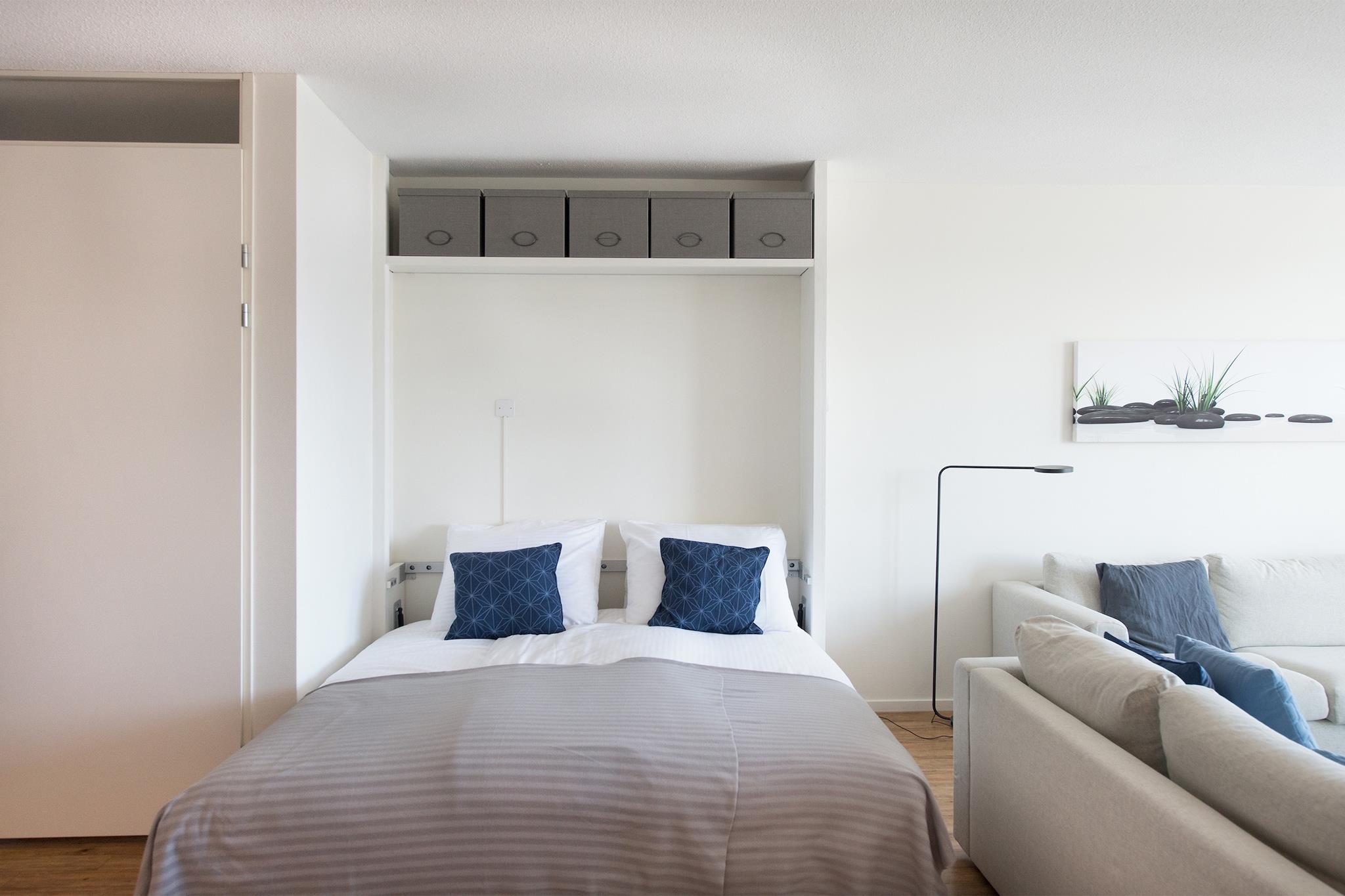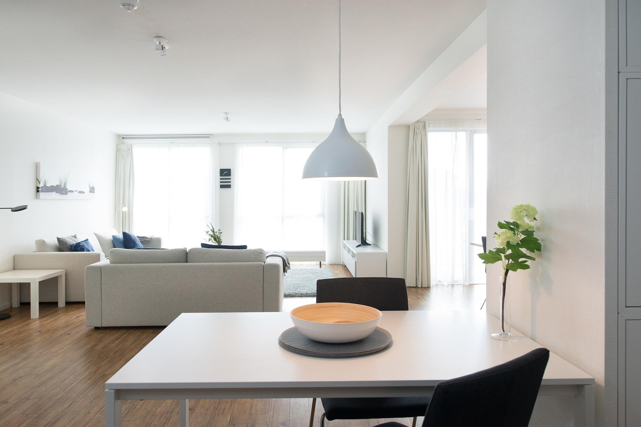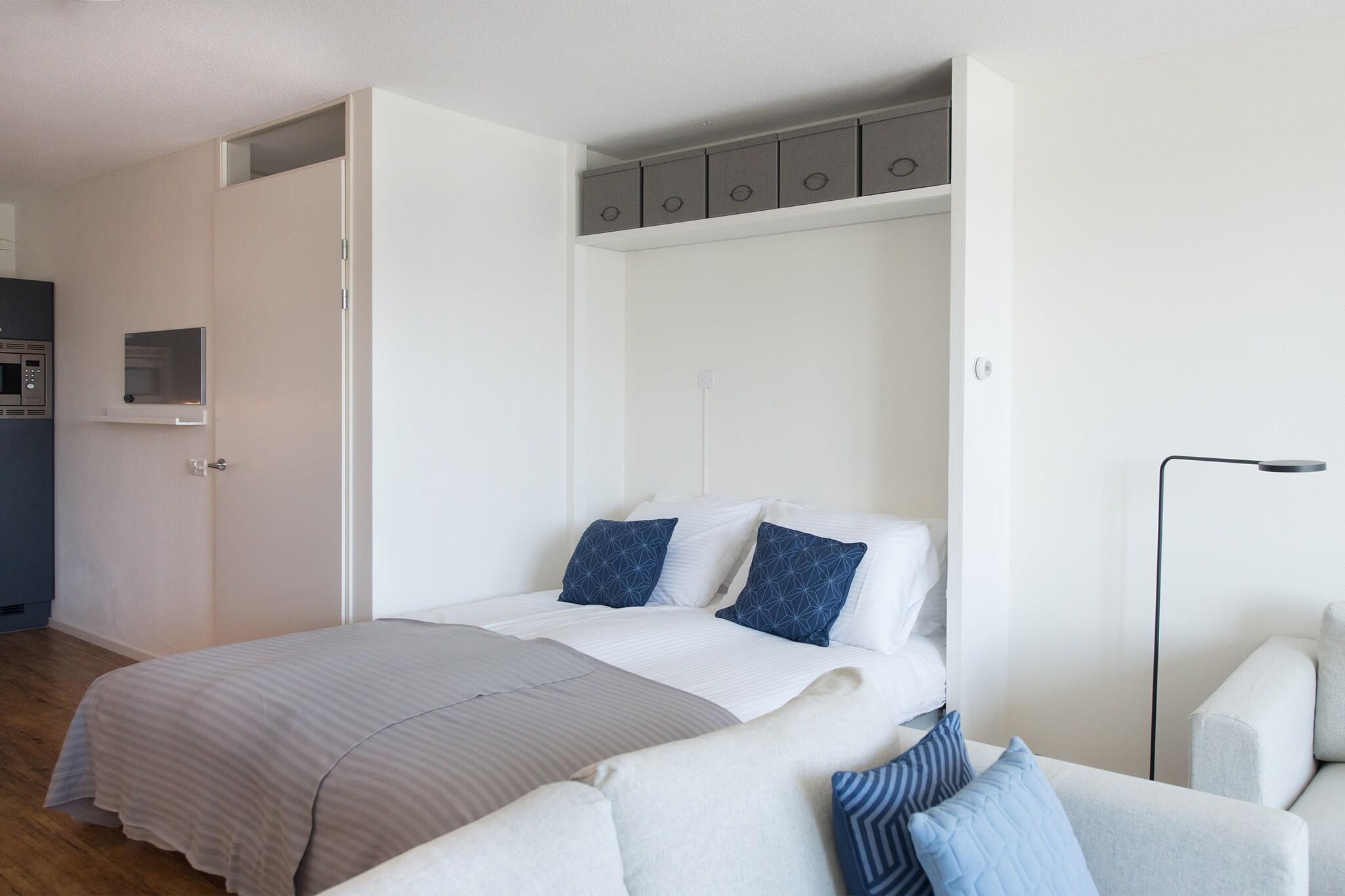 This luxurious 1 bedroom 80 m2 apartment is part of the Nautical Center Scheveningen located at the second inner harbor of Europe's largest and fashionable bathing resort of Scheveningen, only 15 minutes away from the vibrant city center of The Hague with impressive hotspots like Madurodam and the Louwman Car Museum. Apartment no. 58c has a balcony on the harbor side offering a fantastic view on the exclusive seaworthy yachts. It includes private parking from where you take an elevator to your apartment entrance. The apartment itself has been beautifully designed and furnished to the highest standard. It offers essentials such as high speed internet, a large SMART TV, a fully equipped kitchen, a spacious bathroom with easy-walk-in shower, a separate toilet and laundry facilities. The comfortable boxspring beds guarantee a good night sleep. There are additional sleeping facilities for two persons in the living room. Within walking distance you find South beach, some of the best restaurants, a supermarket and the 'world famous' local fish shop Simonis, known for the best fresh fish in town. Holland's most famous seaside resort Scheveningen has an abundance of attractions and beach pavilions. So take a stroll along the boulevard to the famous pier with its new ferris wheel and put on your dancing shoes after sunset to enjoy the best of The Hague's nightlife. Beach life and city life go together in The Hague which explains why so many people come back to this wonderful apartment every year again!