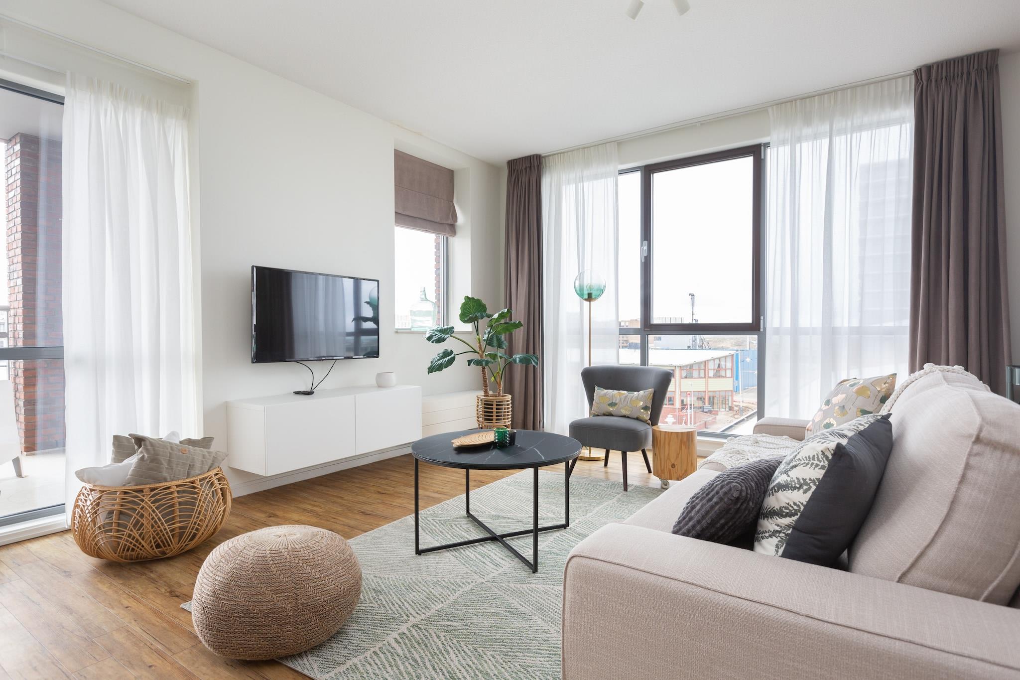 Denne luksuriøse 83m2 lejlighed med 1 soveværelse er en del af Nautical Center Scheveningen, der ligger i den anden indre havn i Europas største og moderigtige badested Scheveningen, kun 15 minutter væk fra det pulserende centrum af Haag med imponerende hotspots som Madurodam og Louwman Car Museum. Lejlighed nr. 80C har en stor altan med udsigt over skibsværftet, havnen og delvis udsigt over havet og stranden. Det inkluderer privat parkering, hvorfra man kan tage en elevator til indgangen til lejligheden. Selve lejligheden har været behageligt Det tilbyder væsentlige ting såsom højhastighedsinternet, et stort SMART-TV i stuen og et andet TV i soveværelset. Soveværelset leveres med en behagelig fjederseng og to sammenklappelige senge af høj kvalitet, der udvider denne lejligheds kapacitet til fire gæster, hvilket gør denne lejlighed til et meget omkostningseffektivt valg for familier og grupper. Et fuldt udstyret køkken, et rummeligt badeværelse med bruser og badekar, en separat spiste toilet og dine private vaskerier gør dette til en ideel lejlighed til både korte og lange ophold. Inden for gåafstand kan du finde South Beach, nogle af de bedste restauranter, et supermarked og den "verdensberømte" lokale fiskebutik Simonis, kendt for den bedste friske fisk i byen. Hollands mest berømte badeby Scheveningen har en overflod af attraktioner og strandpavilloner. Så gå en tur langs boulevarden til den berømte mole med sit nye pariserhjul og tag dine dansesko på efter solnedgang for at nyde det bedste fra Haag natteliv. Strandliv og byliv går sammen i Haag, hvilket forklarer, hvorfor så mange mennesker kommer tilbage til denne vidunderlige lejlighed hvert år igen! Gratis privat parkering.