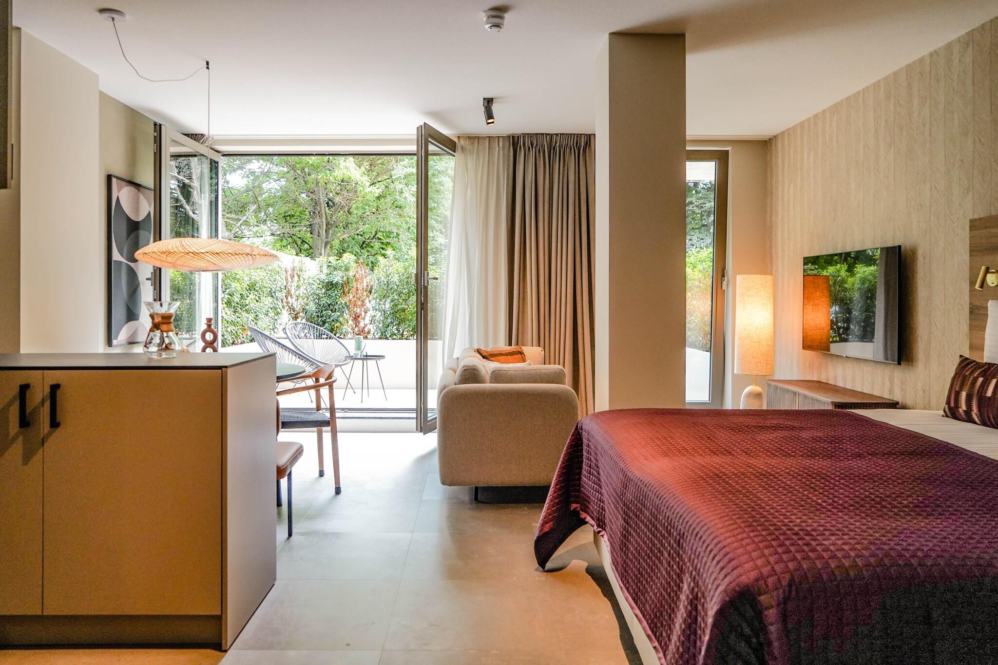 Smart design, hyggeligt liv Dette gennemtænkt designede studie tilbyder moderne komfort i et kompakt, miljøbevidst rum. Perfekt til solorejsende eller par, det har et hyggeligt loungeområde, en privat terrasse til morgenkaffe og et fuldt udstyret køkken til hjemmelavede måltider. Smarte detaljer som et Chromecast-kompatibelt tv, vaskemaskine/tørretumbler i enheden og solcelledrevne forsyninger gør den ideel til både korte ferier og længere ophold. Gæsterne har også adgang til et gratis fitnessrum og en indbydende lobby med gratis kaffe og te. Udforsk Haag som en lokal Denne lejlighed ligger i hjertet af Haag og tilbyder nem adgang til ikoniske steder som Fredspaladset, Noordeinde-paladset og de kunstneriske skatte i Gemeentemuseum. Byens smukke strande ved Scheveningen ligger kun en kort sporvognstur væk, mens frodige grønne områder som Zorgvliet Park inviterer til afslappende gåture. Uanset om du er her for politik, kunst eller en blanding af begge dele, vil du bo i et af Haags mest tilgængelige og livlige kvarterer. Caféer og køkken lige ved døren Lige rundt om hjørnet kan du nyde en række spisemuligheder. Prøv Café Franklin for en afslappet stemning, De Sushimeisjes for friske japanske retter, eller Bistro Maurice for raffineret fransk-inspireret køkken. Trænger du til noget sødt? Bakkerij Hessing er en lokal favorit til kager. Dette kvarter balancerer bekvemmelighed, charme og kulinarisk variation - alt sammen kun få skridt fra din dør.