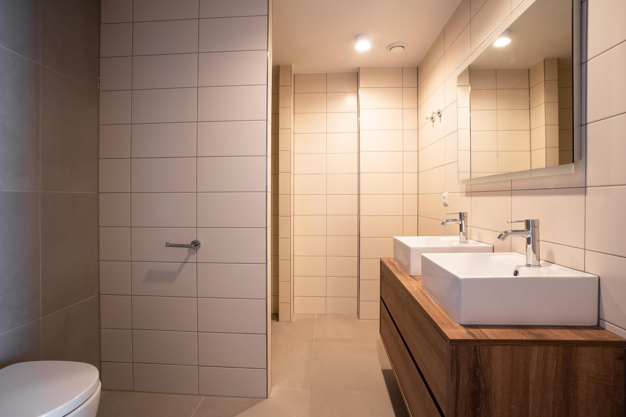 Disse rummelige 2-værelses lejligheder, som hver måler 91 m², giver et generøst alternativ til de mindre enheder, og tilbyder rigelig plads til op til 4 gæster. De er perfekte til både korte og længere ophold, hvilket giver et behageligt og stilfuldt miljø. Når du træder ind, vil du straks blive mødt af en varm og indbydende atmosfære, præget af en harmonisk blanding af naturlige farver, materialer og moderne teknologi, der forbedrer den samlede boligoplevelse. Lejligheden indeholder et fuldt udstyret køkken, en rummelig spiseplads, en hyggelig sofa og et stort SMART-tv med Chromecast til din underholdning. Begge soveværelser er generøst store og byder på komfortable senge, SMART-tv med Chromecast, skriveborde og masser af garderobeplads. Det store badeværelse er udstyret med bruseniche, dobbelt håndvask med skuffer, opvarmet spejl og toilet. Et separat andet toilet og et vaskerum med vaskemaskine og tørretumbler bidrager til lejlighedens bekvemmelighed. Derudover byder lejligheden på en 4 m² stor balkon, perfekt til afslapning. BizStay Walden tager bæredygtighed seriøst, da den elektricitet og varme, der bruges under dit ophold, primært genereres af solpaneler. Dette miljøbevidste design understreger bygningens forpligtelse til at være miljøvenlig, hvilket gør den til et ideelt valg for gæster, der værdsætter både moderne komfort og bæredygtighed.