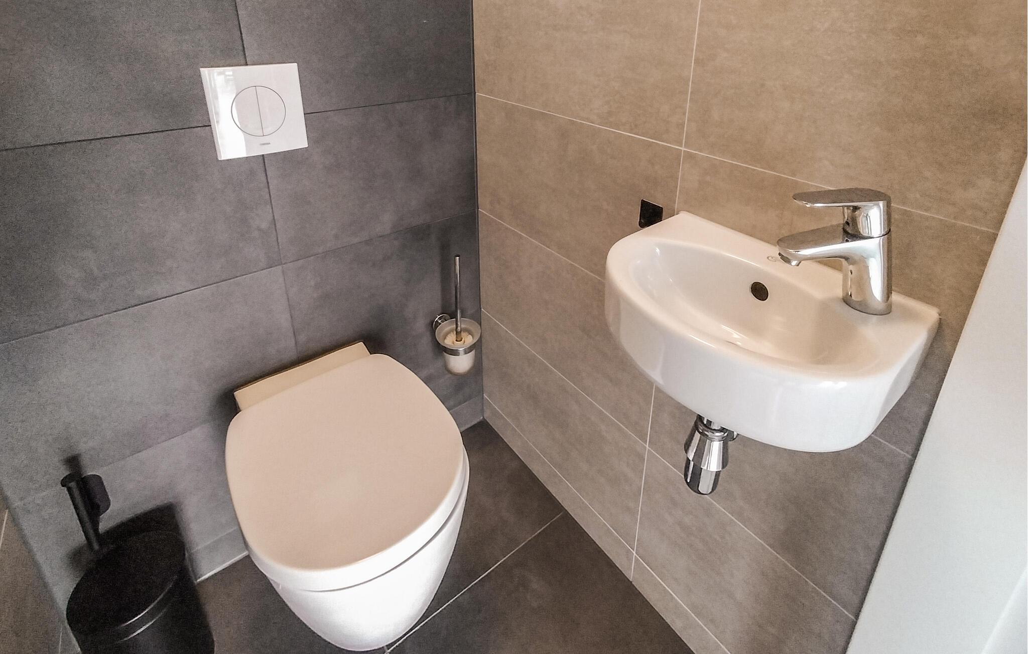 Badeværelse (nr. 2) - WC. Varmt og koldt vand. Håndbruser, badekar og bruser