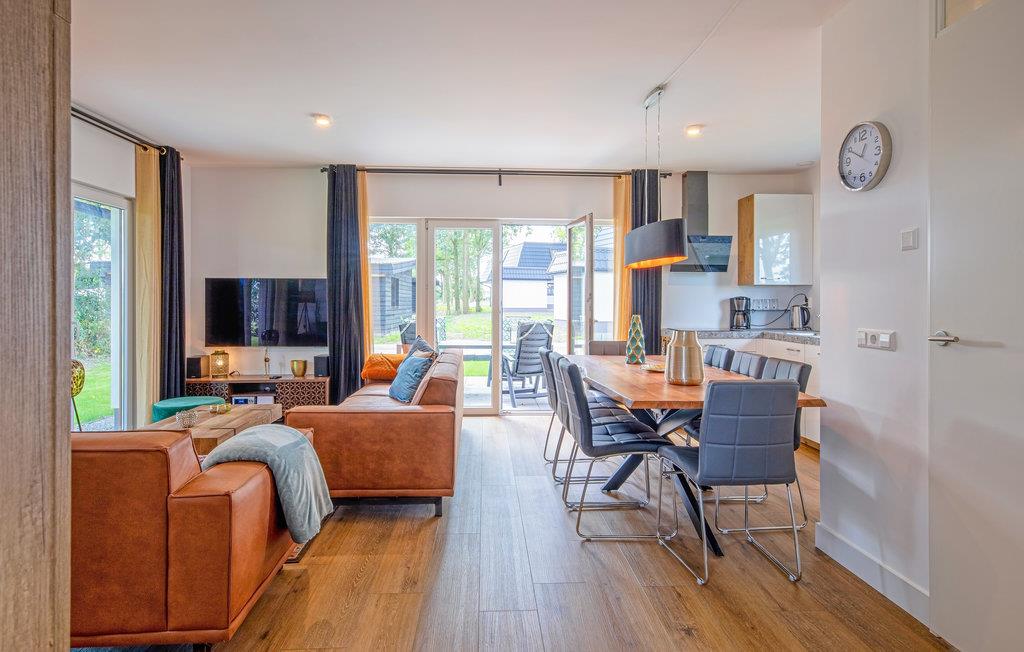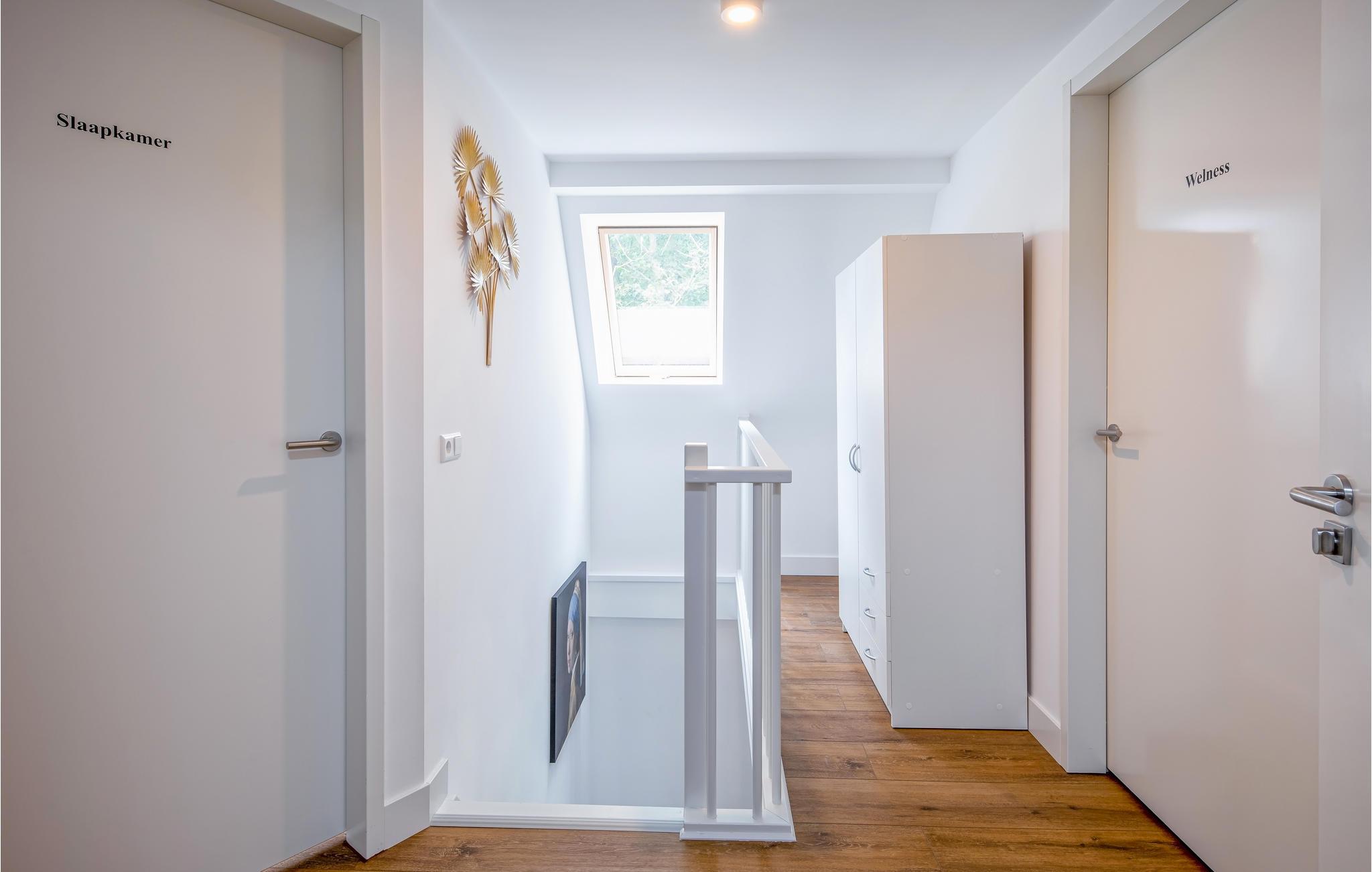 Denne flotte nye villa med wellness er velegnet til en stor familie. Begynd dagene med en lækker morgenmad foran ??huset eller sæt jer på modsatte side, hvor I har en vidtrækkende udsigt over engene. Køkkenet er fuldt udstyret, og i tilknytning til køkkenet har I den hyggelige stue med opholdsområde, Smart TV og franske døre ud til haven. I kan også se frem til wellness i form af infrarød sauna og et solarium.