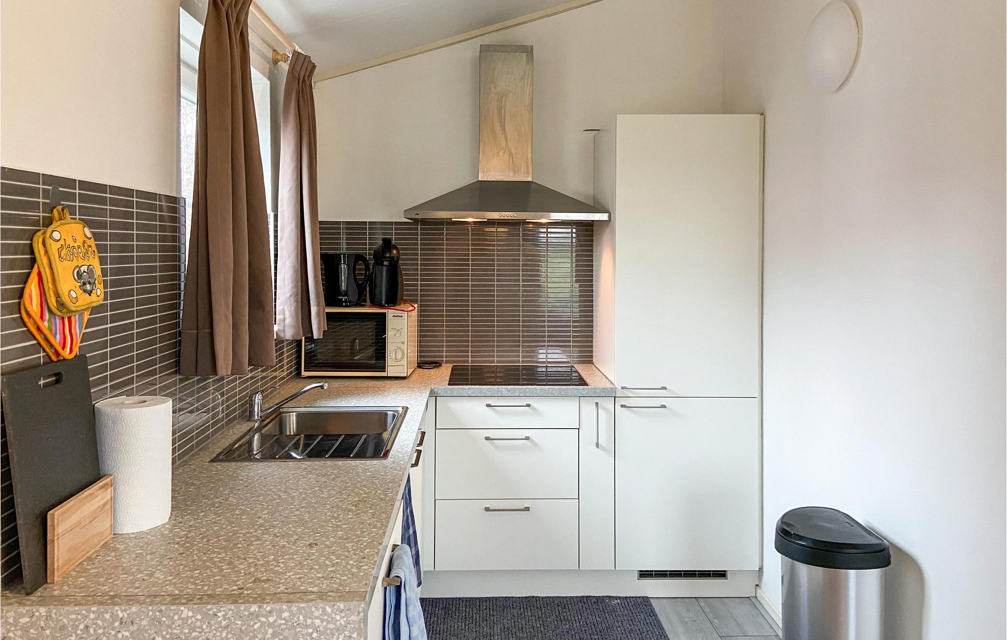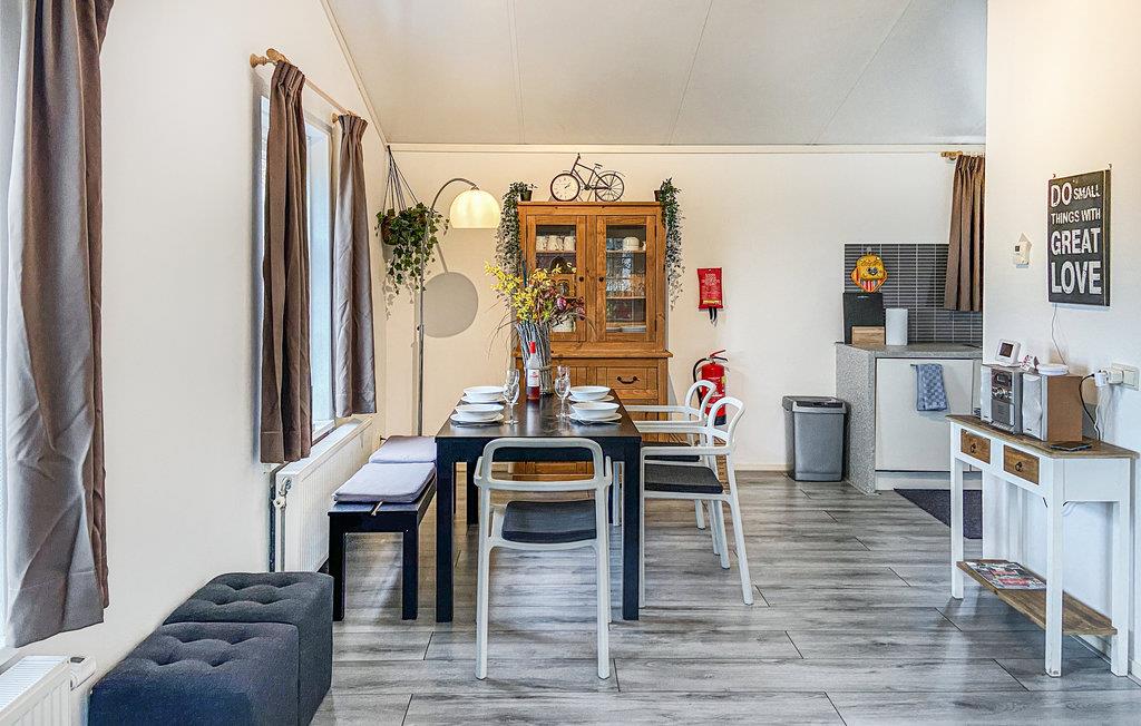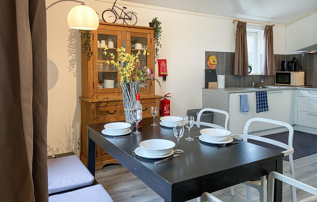 Når I træder indenfor, vil I straks føle jer hjemme. Det hyggeligt indrettede feriehus er veludstyret og tilbyder jer alt, hvad I kan ønske jer til en afstressende ferie. I stuen kan I kombinere madlavning, leg og afslapning i sofaen, så I kan tilbringe mest mulig tid sammen med familien. På den dejlige træterrasse kan I nyde udsigten over det grønne område og spise jeres feriemåltider i solen ved picnicbordet. Drøft, hvilke udflugter og aktiviteter I ønsker at foretage jer den kommende dag.