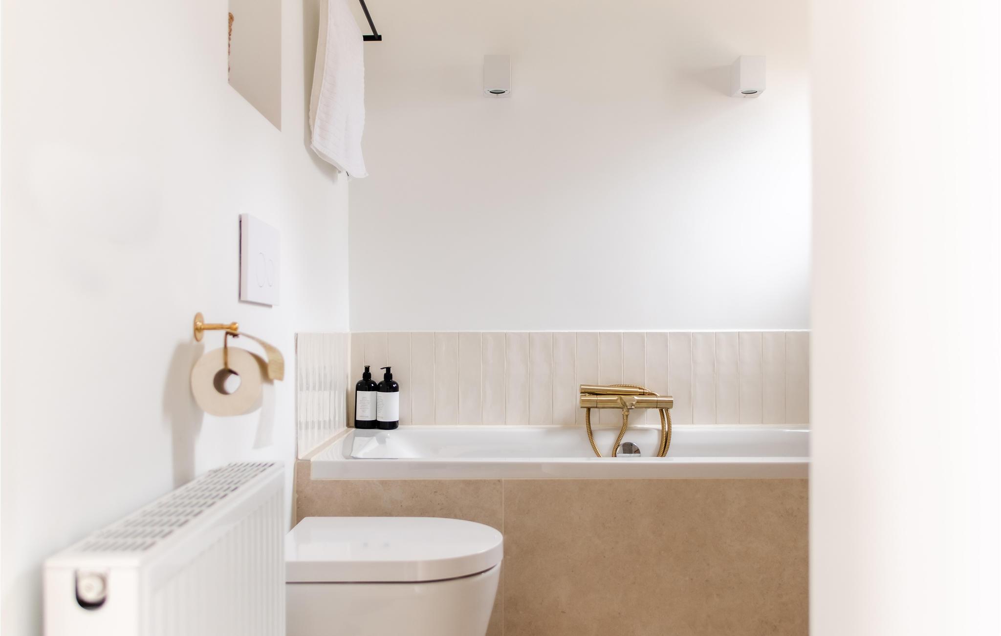 Badeværelse (nr. 1) - WC. Varmt og koldt vand. Bruser og badekar