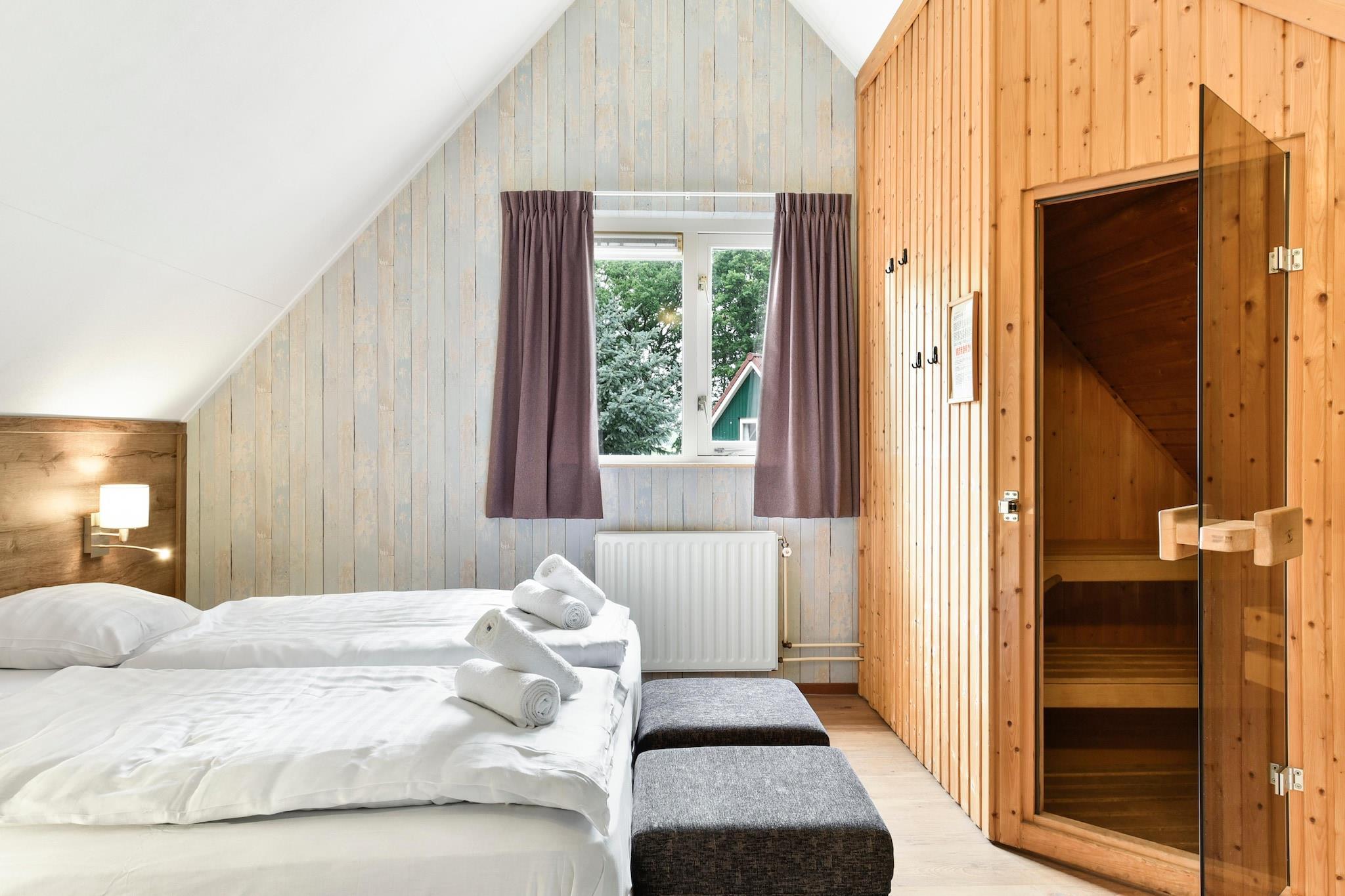 Dette fritliggende feriehus ligger i den rummelige, grønne feriepark Parc Duc de Brabant. Det er beliggende 4 km fra det lille centrum af Diessen, 18 km fra Tilburg og 25 km fra Eindhoven. Feriehuset er fuldt og komfortabelt indrettet og består af to etager. I stueplan finder du en stue med TV og et åbent køkken med blandt andet mikroovn og opvaskemaskine. Der er et soveværelse med dobbeltseng og et badeværelse med badekar og bruser. Der er separat toilet i gangen. På første sal finder du to soveværelser med dobbeltsenge, hvoraf det ene med traditionel eller infrarød sauna. Perfekt til fuldstændig afslapning. Alle sengene er enkeltsenge med springmadrasser, enten skubbet sammen for at lave en dobbeltseng eller bruges separat i en dobbeltværelsesopsætning. En træseng, høj stol og trappelåge er standard. Et indendørs depotrum fuldender boligen. Udenfor er en have med overdækket terrasse, havemøbler, sofa, hængekøje, terrassepejs og kulgrill. Om sommeren er der nogle liggestole. Der er parkering til to biler lige ved siden af ferieboligen. Centrale parkeringspladser er også tilgængelige på ferieparken. Der er forskellige sommerhuse, der kan reserveres til to til ti personer på ferieparken Parc Duc de Brabant.