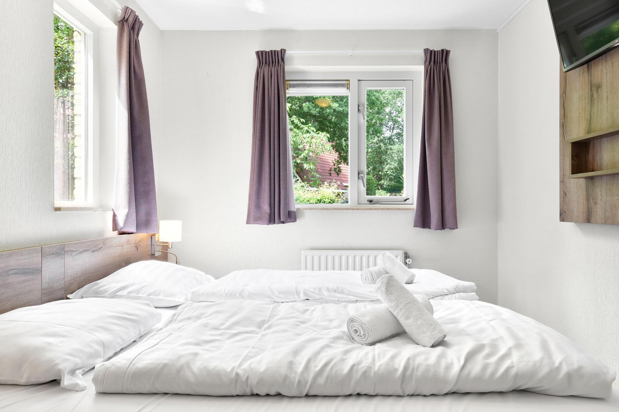 Denne fritliggende bungalow i Summio Parc Duc de Brabant er omgivet af frodigt grønt i hjertet af Brabant og er et vidunderligt sted at sætte tempoet ned og tilbringe kvalitetstid sammen. Den lyse og rummelige stue åbner direkte ud til en møbleret terrasse og et stort haveområde, hvor I kan slappe af, dele måltider udendørs eller bare nyde freden i naturen. Efter en dag på opdagelse kan du tage et bad under stjernerne i dit private brændefyrede spabad eller træde ind i varmen i din egen sauna for ren afslapning. Bungalowen er designet til op til 4 gæster med alt, hvad du har brug for til et behageligt ophold. I stueetagen finder du et hyggeligt soveværelse med to boxmadrasser, et moderne badeværelse med badekar og bruseniche samt et separat toilet. Ovenpå er der et andet soveværelse med to enkeltsenge og en barneseng samt din egen private sauna. Køkkenet er veludstyret med Nespresso-maskine, ovn, mikroovn, opvaskemaskine og køleskab med fryser, så ferien kan begynde med det samme. Uden for døren inviterer Kempen-regionen dig til at opdage skove, heder og indbydende landsbyer. Nyd gå- eller cykelture gennem Kempse Bossen, eller klatre op i udsigtstårnet på Landgoed de Utrecht for at få et fantastisk panorama. Familier vil elske et safarieventyr i Beekse Bergen, og kultursøgende kan tage til Eindhoven, Tilburg, Breda eller Den Bosch for at få livlige byoplevelser. Her mødes afslapning, natur og nye eventyr til en ferie, du altid vil huske.