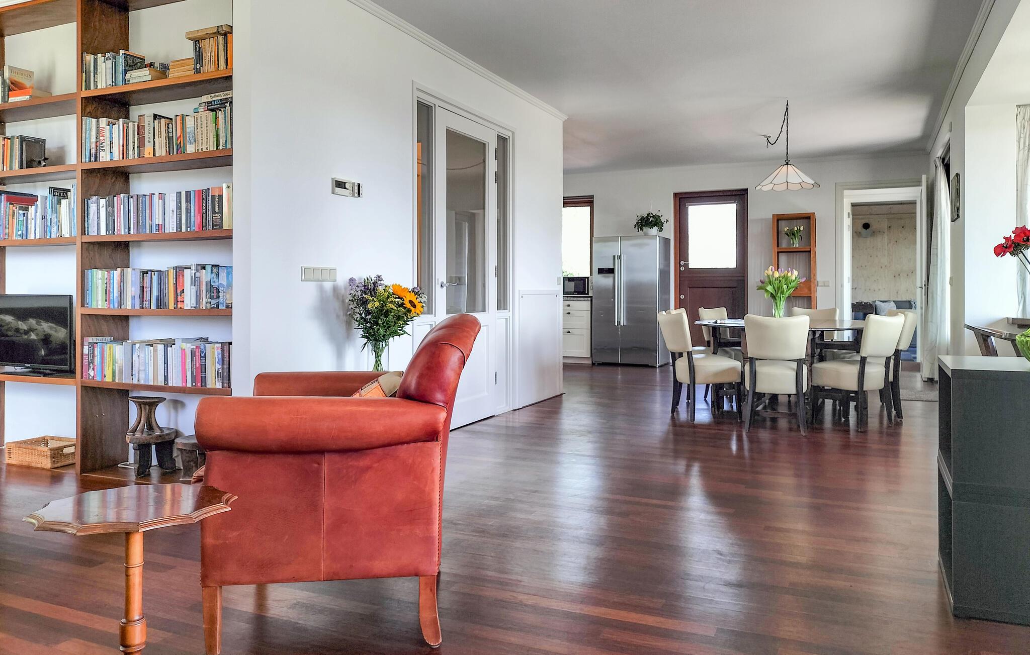 Dette rummelige hus byder jer velkommen med varme trægulve, smagfulde værelser og en fredelig atmosfære omgivet af store hesteenge og ikke langt fra kysten. Hvis I har lyst, kan I tænde brændeovnen og tage en bog fra hylden. Start aftenen med en god samtale og tilbered lækre måltider i det moderne køkken. Udfordr jeres medrejsende til et spil bordfodbold, og skål derefter for jeres sejr. Huset byder på masser af plads og behagelige opholdsmuligheder.