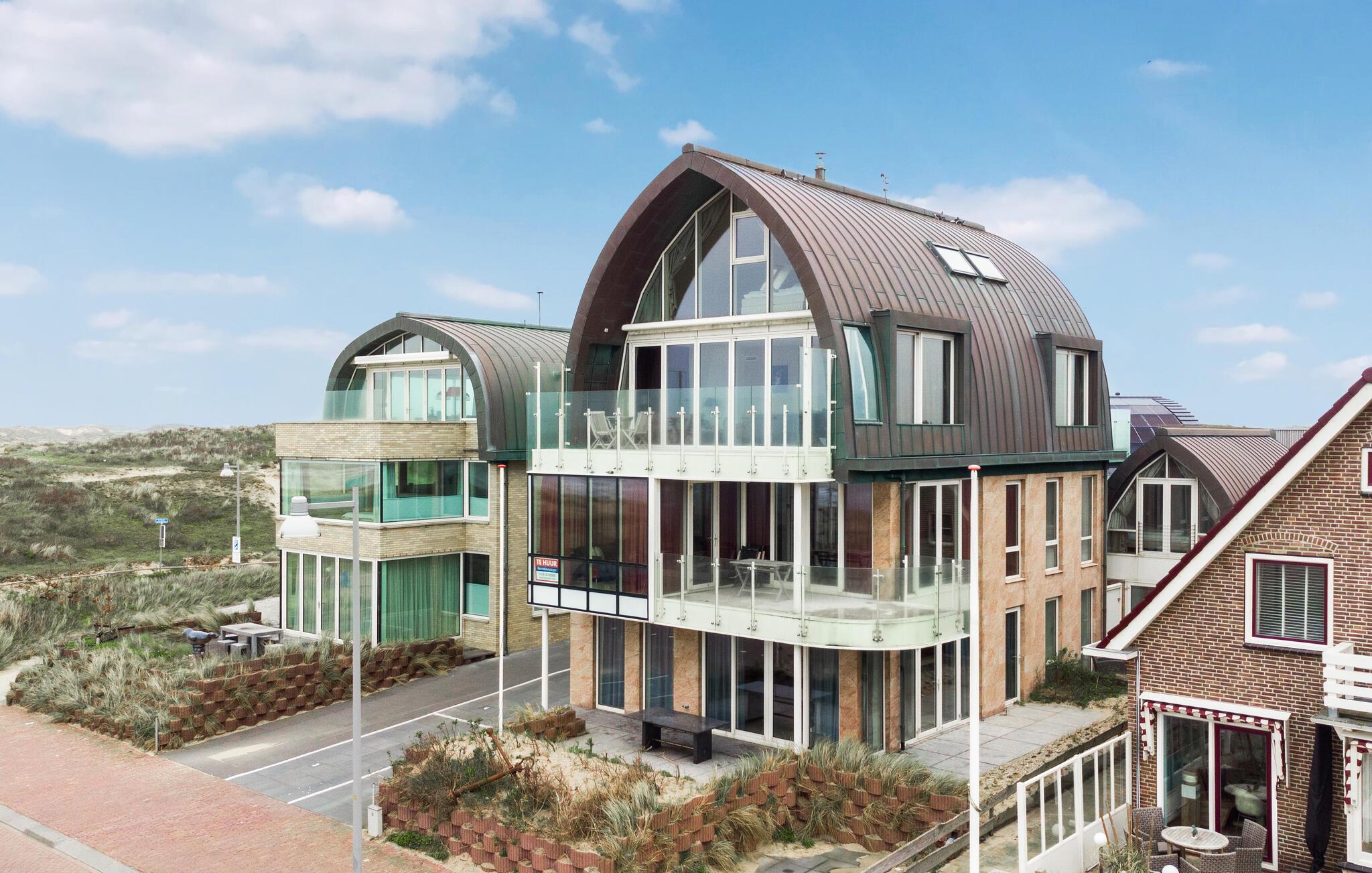 Velkommen til denne skønne ferielejlighed, som ligger på første sal i en moderne lejlighedsbygning lige ved havet. Den rummelige arkitektoniske stil og masser af glas giver jer en betagende panoramaudsigt over Nordsøen. Find jer godt til rette, slap af på sofaerne og lav lækre måltider i det veludstyrede køkken. Denne komfortable ferielejlighed byder på plads til familien.