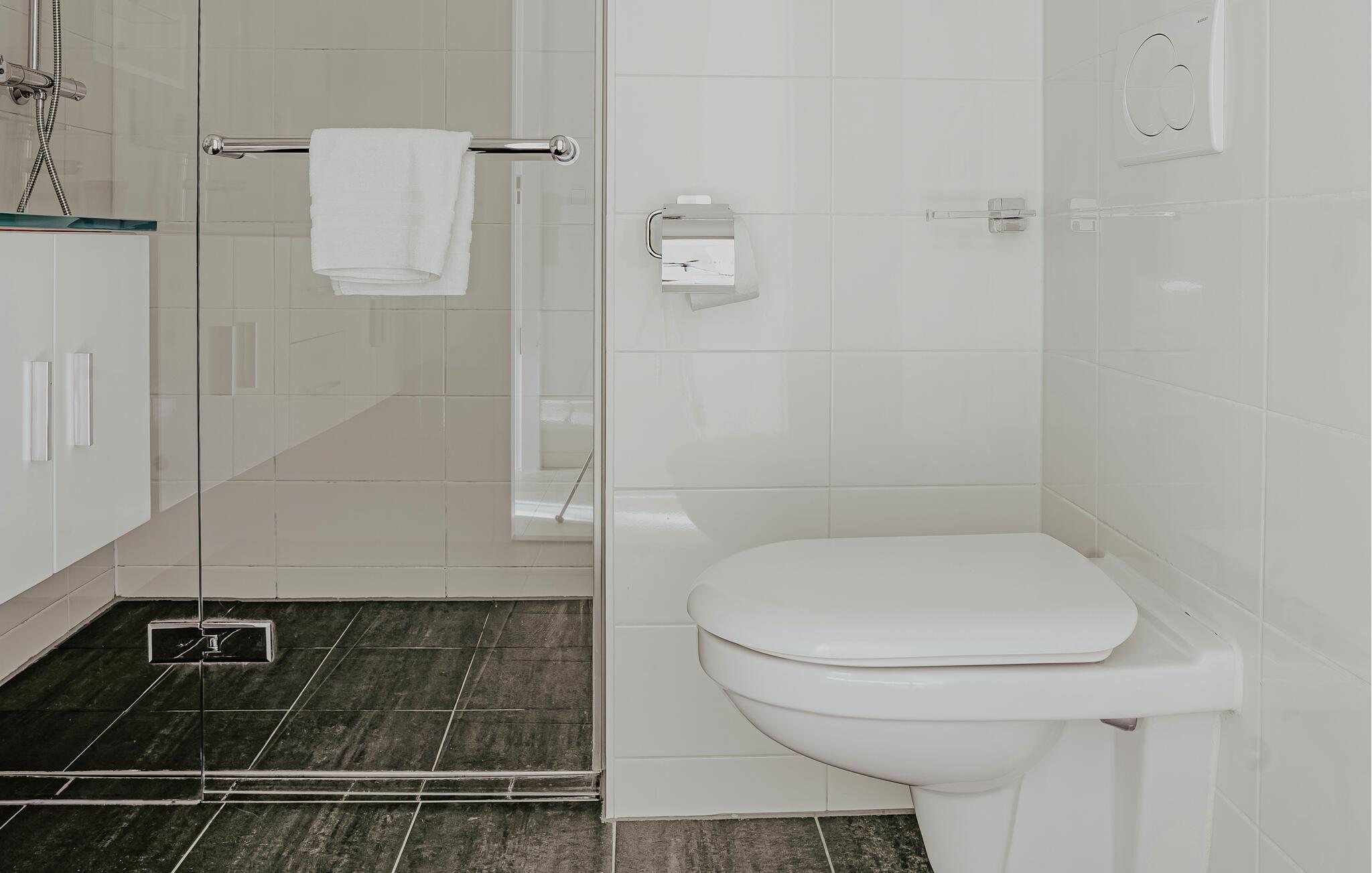 Badeværelse (nr. 1) - WC. Varmt og koldt vand. Bruser