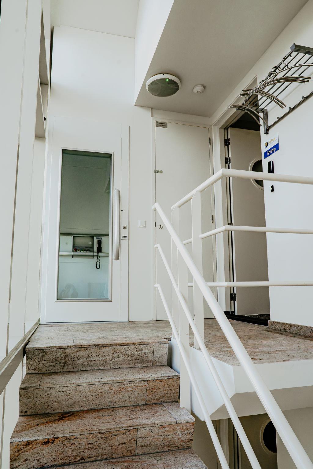 "Shrimp", 4-room apartment 210 m2 on 2nd floor. Bright, stylish furnishings: living/dining room with dining table, international TV channels, flat screen and radio. Exit to the balcony. 1 room with 1 bed. Open kitchen (oven, dishwasher, Gas stove, microwave, electric coffee machine). Shower, sep. WC. Heating. Upper floor: with sloping ceilings, 1 double bedroom with 2 beds, bath/shower/bidet/WC and double hand-basin. 1 double bedroom with 2 beds. Large balcony. Balcony furniture. Very beautiful panoramic view of the sea. Facilities: washing machine, dryer. Internet (WiFi, free). Please note: non-smoking house. Maximum 2 pets/ dogs allowed. Smoke alarm. Pets on request.
