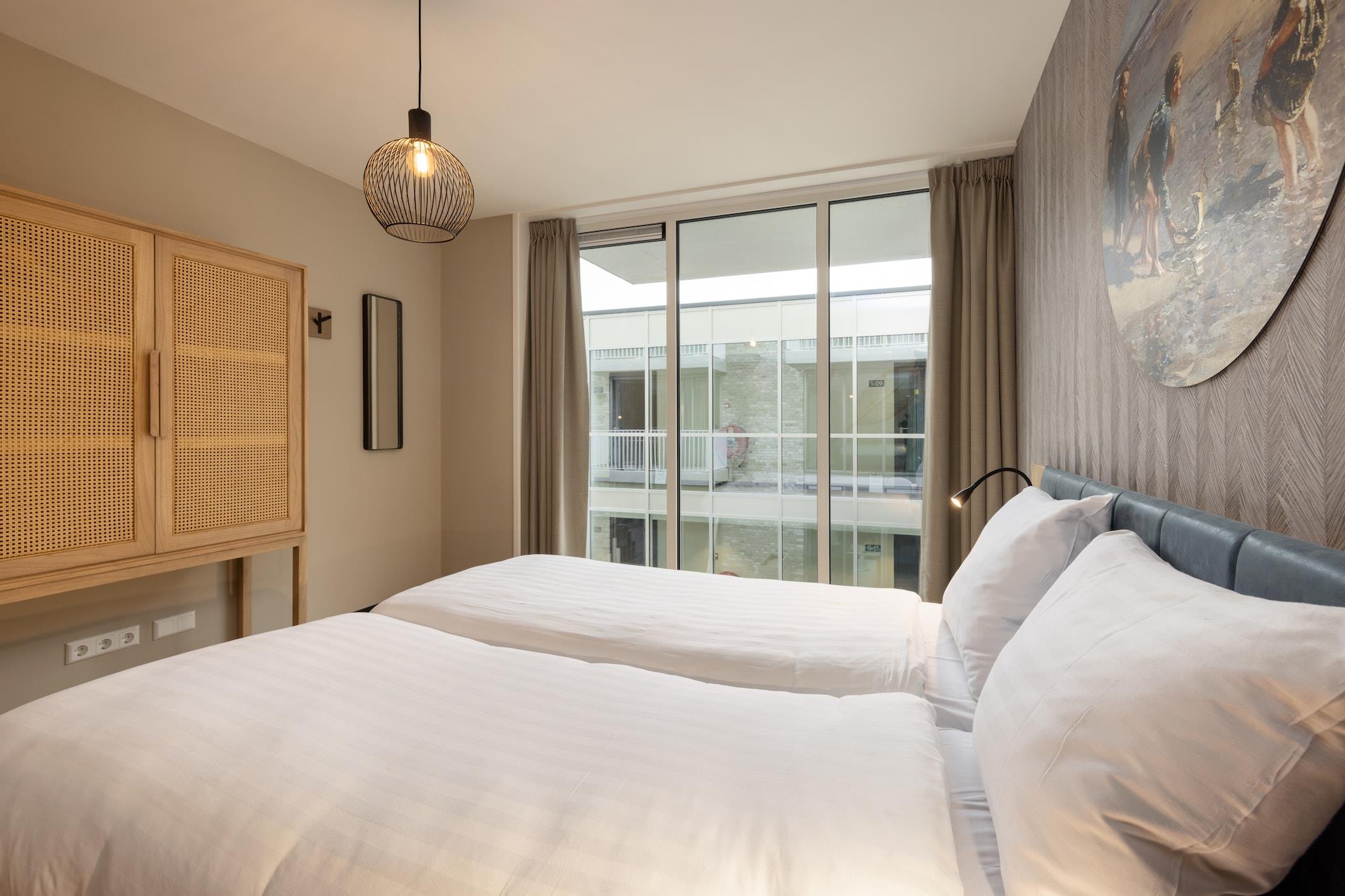 Træd ind i kyst-elegance i denne smukt renoverede stuelejlighed i De Graaf van Egmont. Genåbnet i 2021 efter en fuld transformation, dette lyse og stilfulde rum er perfekt til en afslappende flugt. Lejligheden er designet til op til tre gæster og har en indbydende stue med et smart-tv, et fuldt udstyret køkken med opvaskemaskine og kombineret mikroovn samt to fredfyldte soveværelser med boksmadrasser til afslappende nætter. Start din morgen med frisk havluft på din private balkon, komplet med havemøbler. Denne lejlighed ligger lige på boulevarden Egmond aan Zee, kun få skridt fra stranden og klitterne. Uanset om du planlægger lange gåture langs kysten, solbade ved havet eller udforske charmerende kyststier, tilbyder denne beliggenhed det hele. Med elevatoradgang og en reserveret parkeringsplads er din ankomst og ophold gnidningsfrit og problemfrit - bare medbring dine kufferter og gør dig klar til at slappe af. Efter en dag i sandet kan du opdage de kulinariske perler i Egmond aan Zee. Fra frisk fisk og skaldyr på den lokale favorit "Visrestaurant Vissers" til hyggelige steder som "Het Wapen van Egmond" til traditionelle hollandske retter, byder landsbyen på noget for enhver lyst. For en sød lækkerbisken, snup en stroopwafel eller is, mens du slentrer langs boulevarden. Dette charmerende feriested ved havet er din indgang til al skønheden og smagen ved den nordhollandske kyst - ingen kæledyr, ingen stress, bare ren ferielykke.