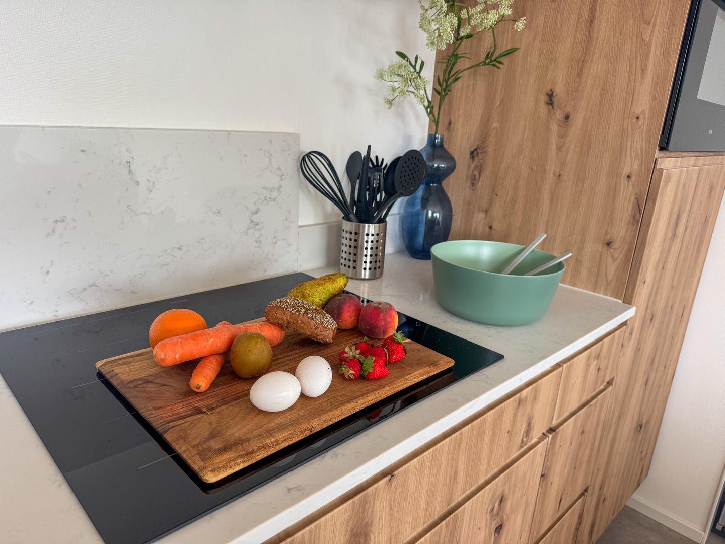 Die voll ausgestattete Küche lässt keine Wünsche offen: Induktionsherd, Backofen, Mikrowelle, Spülmaschine sowie umfangreiches Geschirr und Besteck bieten alles, was Sie für genussvolle Kochabende brauchen.