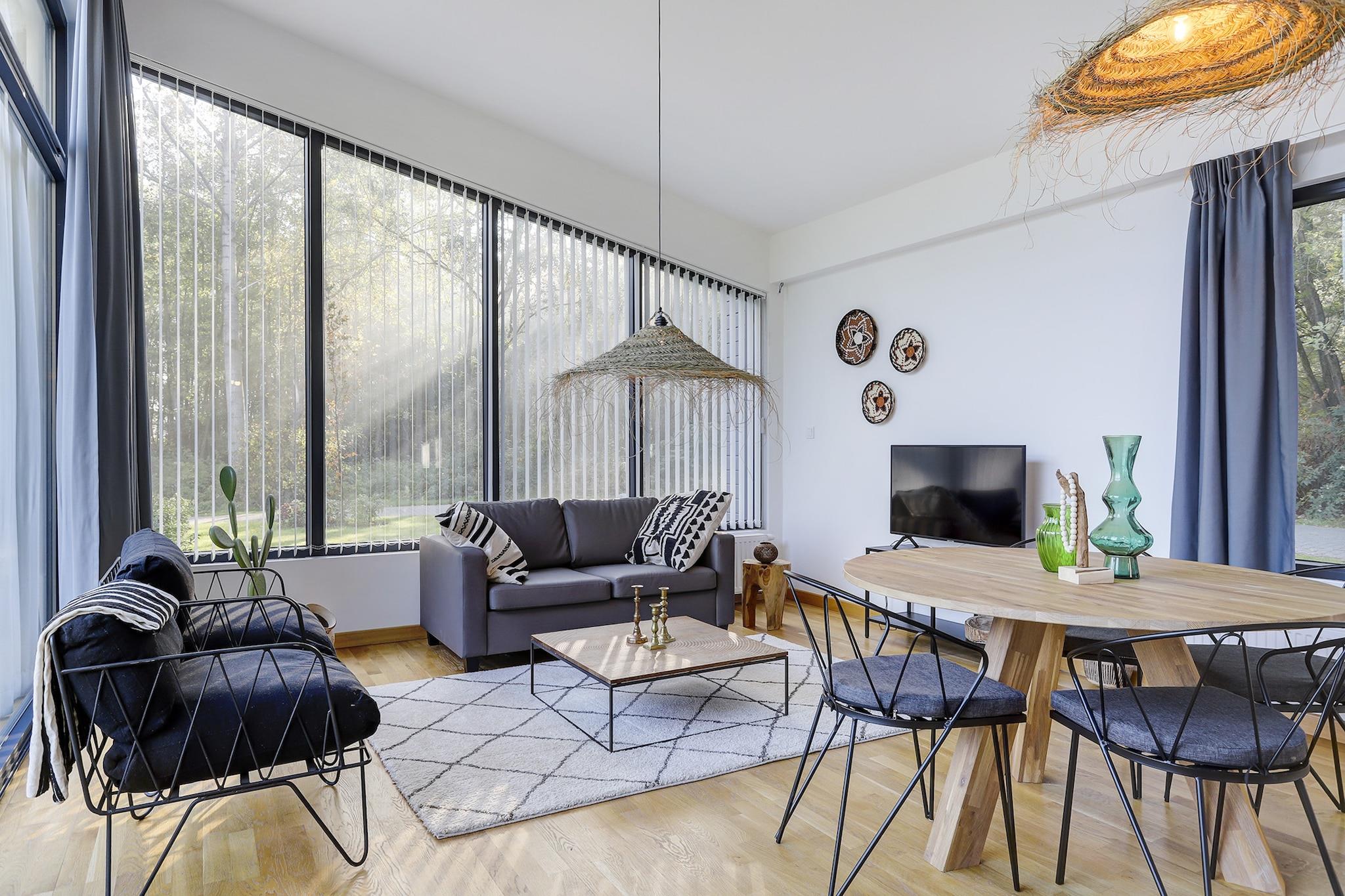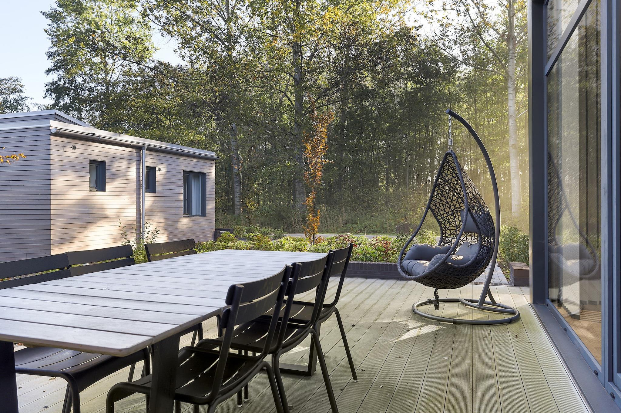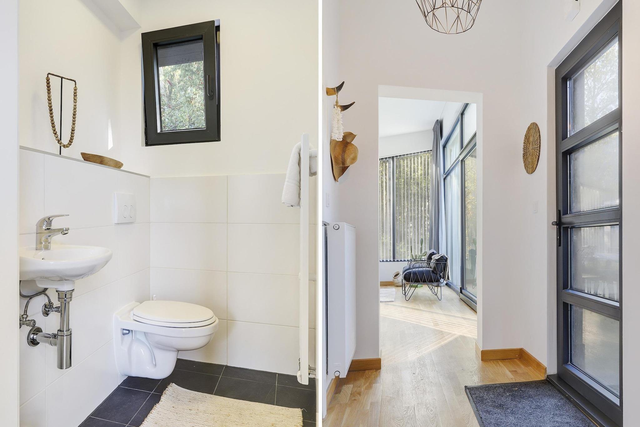Beliggende i hjertet af Holiday Centre 't Schuttenbelt, er denne charmerende kæledyrsvenlige skovhytte den perfekte blanding af rustik skønhed og moderne komfort. Fremstillet af naturligt træ giver de varme toner og det gennemtænkte design hjemmet en hyggelig, kabineagtig atmosfære. Med to en-suite soveværelser, et veludstyret køkken og store vinduer, der oversvømmer rummet med naturligt lys, tilbyder denne lodge både bekvemmelighed og ro i én indbydende pakke. Den glasoverdækkede veranda med brændeovn giver dig mulighed for at nyde udendørslivet året rundt - uanset om det er solskin eller regnfuld. Beliggende i rummelige, grønne omgivelser, som deles med nogle få andre hytter, er denne bolig ideel for gæster, der søger fred og privatliv. Da kæledyr er velkomne her, kan du tage din firbenede ven med på eventyret! Udforsk de nærliggende skove på naturskønne stier, der er ideelle til hundeture, eller tag en kort køretur til Wierdense Veld naturreservat, hvor kæledyr i snor er velkomne. Mange caféer og terrasser i regionen tilbyder endda vandskåle og godbidder til hunde, hvilket gør dette til et tilflugtssted for hele familien. Slap af med en dukkert i den fælles udendørs pool eller udforsk Enters hyggelige landsbycentrum. Snup en bid af lokale favoritter som Restaurant De Kolenbrander, eller nyd en afslappet frokost på Brasserie Louisa. Med et opbevaringsområde til dine (e-)cykler er regionen også perfekt til at cykle gennem Overijssels bølgende landskab.