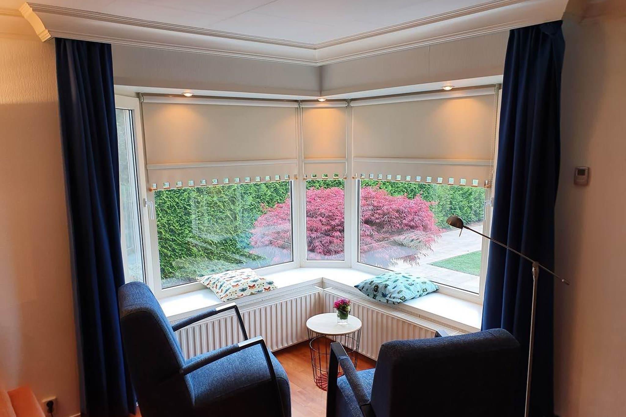 Beliggende i det rolige Bospark De Wervelwind i Garderen tilbyder denne rummelige hytte et afslappende ophold i hjertet af Veluwe, et af de smukkeste naturreservater i Holland. Omgivet af skove, hede og enge er det den perfekte base for at udforske endeløse vandre- og cykelstier, der snor sig gennem varierede landskaber og fredfyldt natur. Start din morgen med fuglesang og morgenmad på den solbeskinnede terrasse, eller træk dig tilbage til glasverandaen i køligere vejr for en hyggelig start på dagen. Den velholdte have har flere siddeområder, ideelle til at læse, spise eller blot slappe af i naturens favn. Indenfor tilbyder hytten moderne bekvemmeligheder med aircondition, et fuldt udstyret køkken og en varm opholdsstue. Praktiske ekstrafunktioner såsom en vaskemaskine og parkering på stedet - inklusive en ladestation til elbiler ved parkens indgang - forbedrer bekvemmeligheden ved dit ophold. Både familier og par vil nyde den fredelige atmosfære i denne lille park. For en dagstur kan du besøge det berømte Kröller-Müller Museum med dets exceptionelle Van Gogh-samling, eller klatre i den nærliggende klatreskov Garderen. For de små er Apenheul Primate Park og Julianatoren forlystelsespark kun en kort køretur væk. Når det er tid til at spise, kan du nyde friske regionale retter på Brasserie Staverden, raffineret køkken på Chez Brochard eller et hyggeligt måltid på De Bonte Koe i Garderen. Uanset om du leder efter natur, komfort eller kulinarisk forkælelse, tilbyder denne hytte et uforglemmeligt ophold i hjertet af Gelderland.