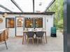 Stueetage: (åbent køkken(kogeplade, elkedel, emhætte, kaffemaskine, ovn, mikrobølgeovn, køleskab), Stue/soveværelse(dobbeltsovesofa, Fjernsyn, spisebord, sofahjørne), soveværelse(dobbeltseng), badeværelse(bruser, håndvask, toilet), veranda) varme, terrasse, have, havemøbler, grill, liggestole, loungemøbler, Haveskur