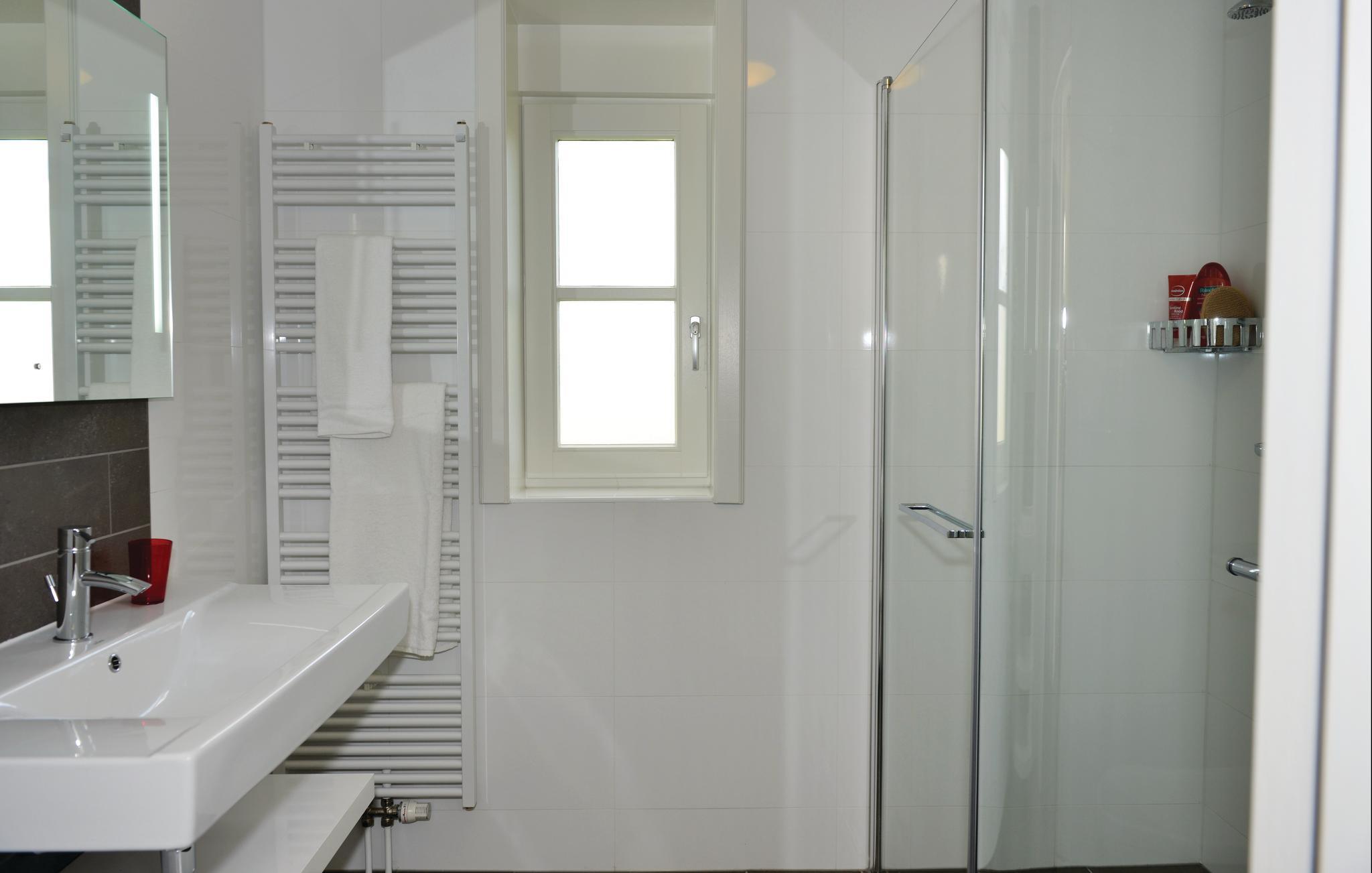 Badeværelse (nr. 1) - WC. Varmt og koldt vand. Håndbruser, badekar og bruser