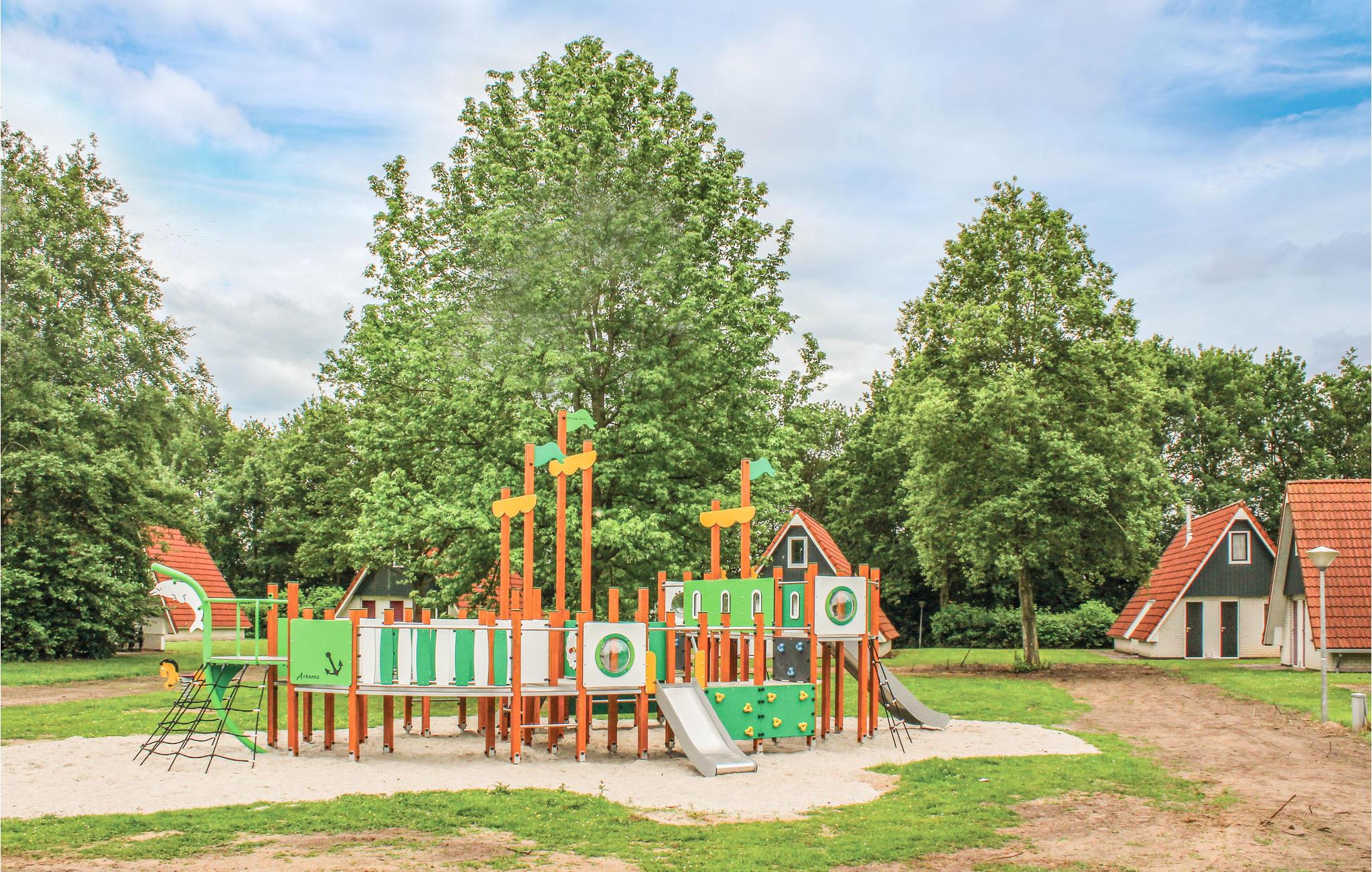 Lige overfor huset ligger en lille zoo med klappevenlige dyr. Ferieparken er et dejligt feriemål for alle aldersgrupper på grund af de mange, forskellige fritidsmuligheder. Både den indendørs og udendørs swimmingpool har et børnebassin. Her findes desuden en legeplads, tennisbane og beachvolleybane. Den indendørs legeplads og glow-in-the-dark bowlingbanerne er perfekte uanset om solen skinner eller det regner. Hvis I ikke har lyst til at lave mad en aften, så kan I spise på restauranten eller i snackbaren.