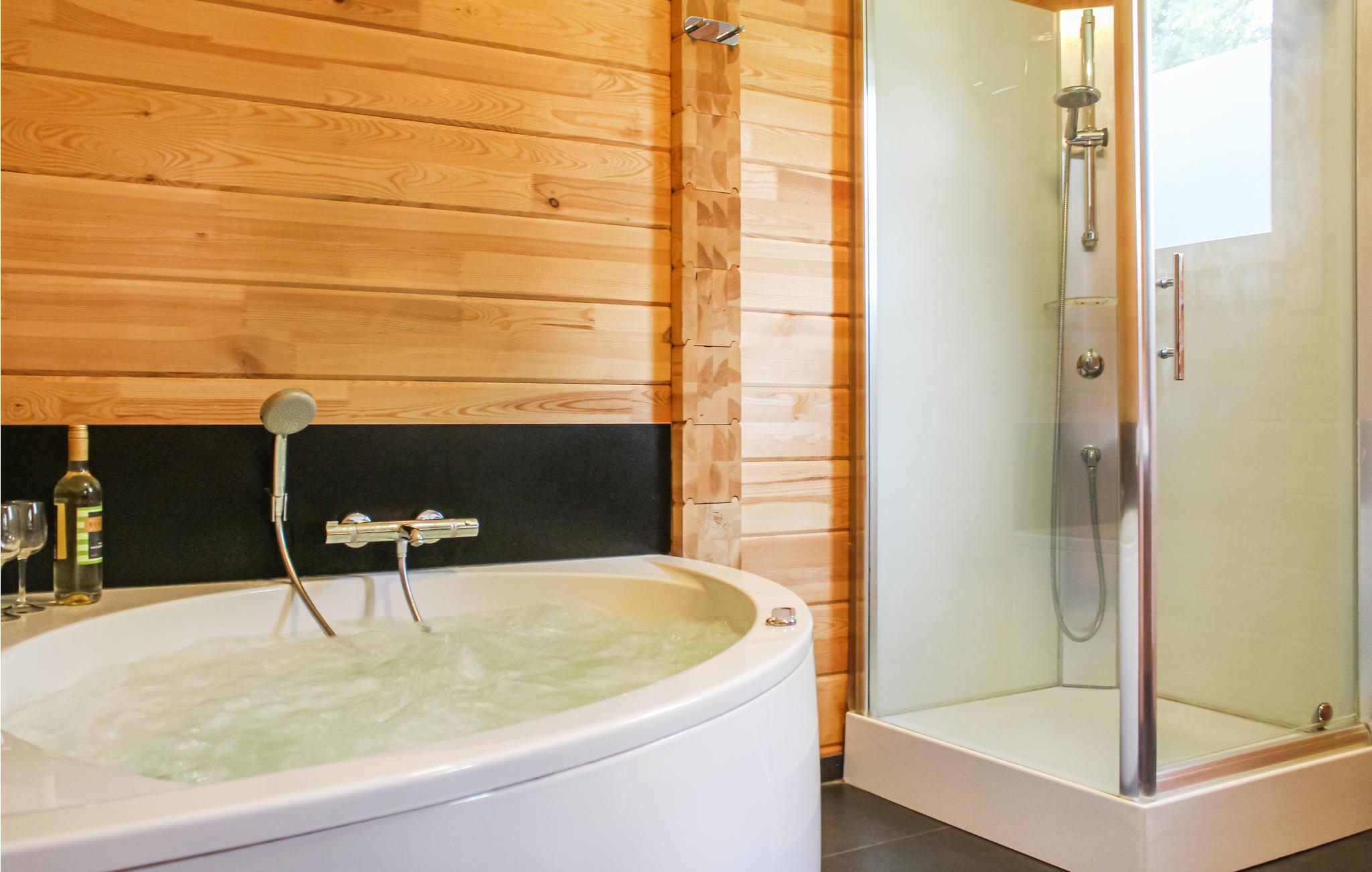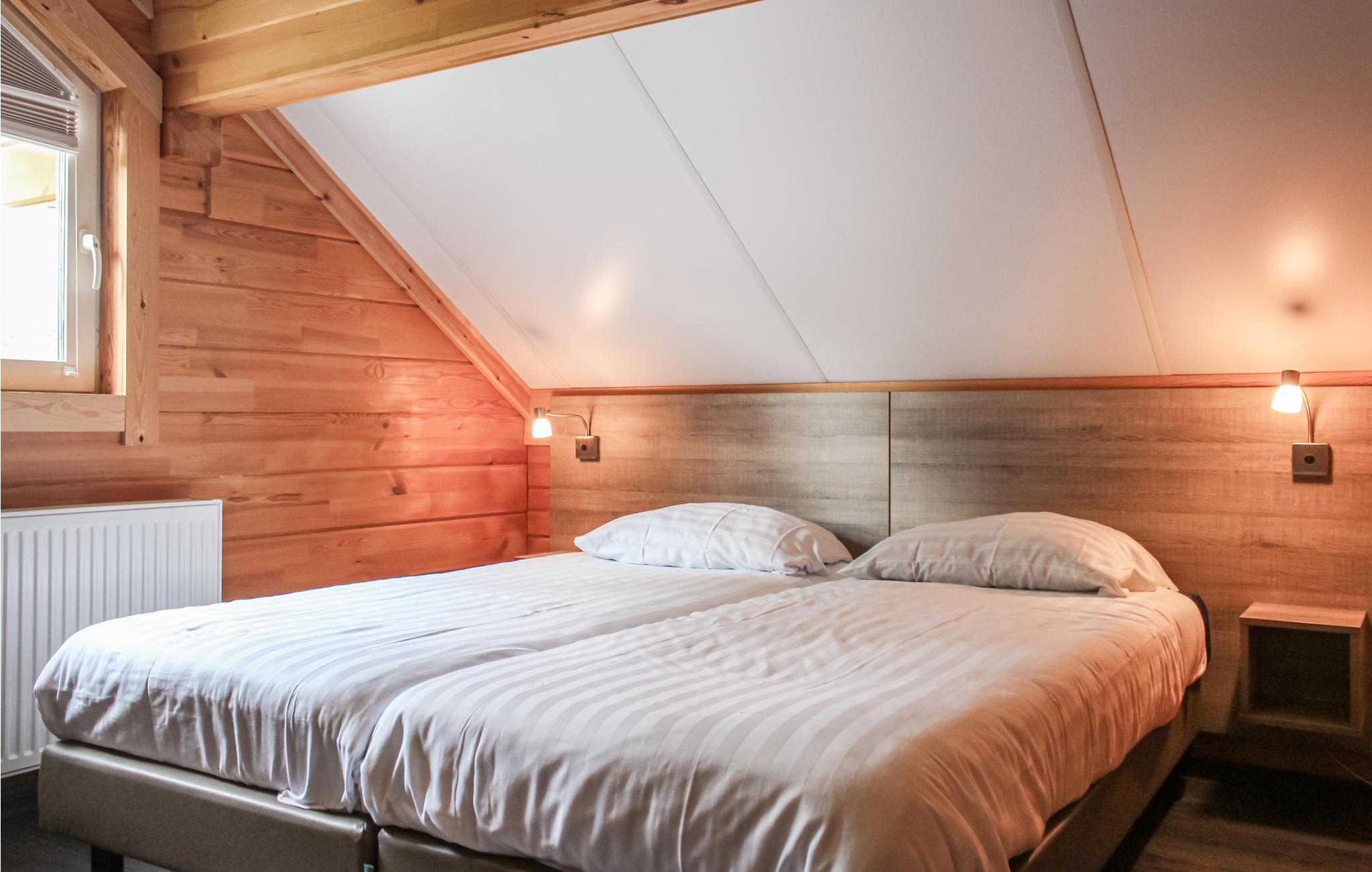 Denne meget rummelige villa til 6 personer med spabad i Central Limburg ligger i en rolig naturpark i Central Limburg, nær Roermond. Villaen er bygget udelukkende af træ og har en dejlig terrasse (ingen kaj) med udsigt over vandet. Stueetagen rummer stuen med et rummeligt, åbent køkken med højt til loftet og masser af lys. Køkkenet er fuldt udstyret. I stueetagen finder I også et soveværelse og et luksuriøst badeværelse med badekar og håndbruser samt et separat brusebad. Et separat toilet og opbevaringsrum er placeret i gangen. Ovenpå finder I det andet soveværelse, et andet toilet og ekstra opbevaringsplads.