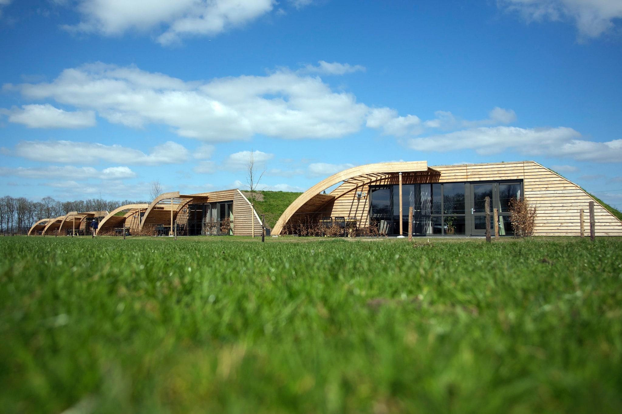 Oplev et enestående ophold, hvor fantastisk design møder naturlig skønhed. Disse smukt udformede bungalows har tilgroede grønne tage og rustikt træinteriør, herunder unikke træstammelofter. Ikke kun er de visuelt slående, men de er også energieffektive og velisolerede for komfort året rundt. Indenfor finder du et hyggeligt pillefyr, gulvvarme og et fuldt udstyret køkken med opvaskemaskine, ovn og kaffemaskine. Store vinduer bringer det udendørs ind, så du kan slappe af i stuen, mens du ser køer græsse på engene lige uden for din terrasse. Beliggende i det rolige Heeten er dette fredfyldte tilflugtssted ideel for familier, par eller grupper, der søger en fredelig flugt på landet - uden kæledyr. Vælg mellem 5-, 6- eller 8-personers boliger, alle designet til komfort med moderne badeværelser og rummelige soveværelser, hver med sin egen håndvask. Nyd din morgenkaffe på terrassen med udsigt over åbne marker, eller slap af i et varmt bad efter en dag med udforskning af de frodige omgivelser. Selvom omgivelserne føles vidunderligt afsondret, er du stadig tæt på charmerende hollandske landsbyer og autentisk lokal spisning. Tag til nærliggende Raalte for en bid mad på Brasserie Zinnen, eller udforsk Deventer for caféer ved floden og historisk charme. Uanset om du nipper til vin under stjernerne eller nyder et varmt wienerbrød fra et lokalt bageri, tilbyder denne natur-møder-komfort flugt en mindeværdig hollandsk oplevelse på landet.