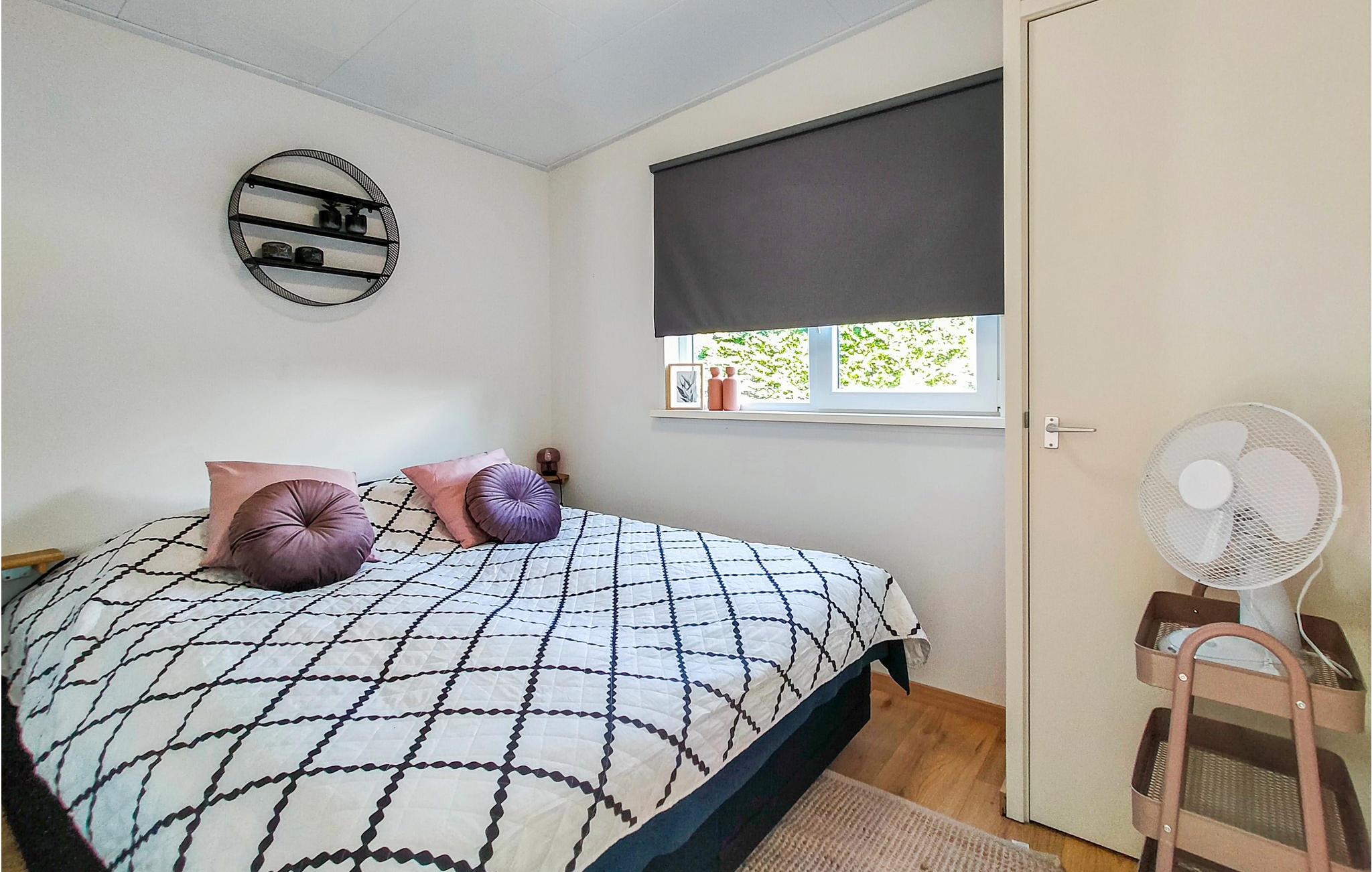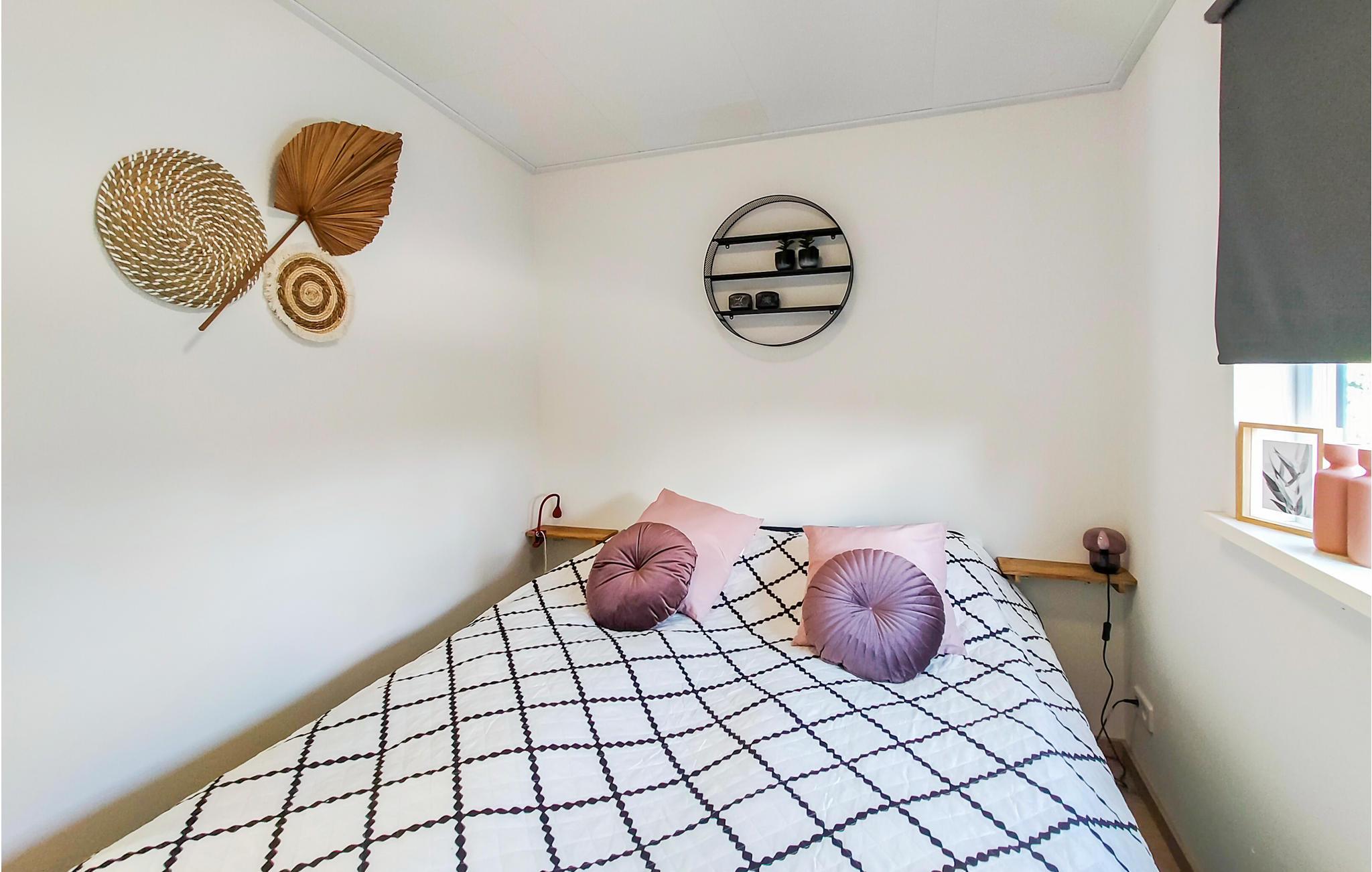 Der er to soveværelser, en åben stue med køkken, sofahjørne og spiseplads og et badeværelse, hvilket giver plads til fem personer, der kan tilbringe en afslappende ferie her når som helst på året. To kæledyr er også velkomne.