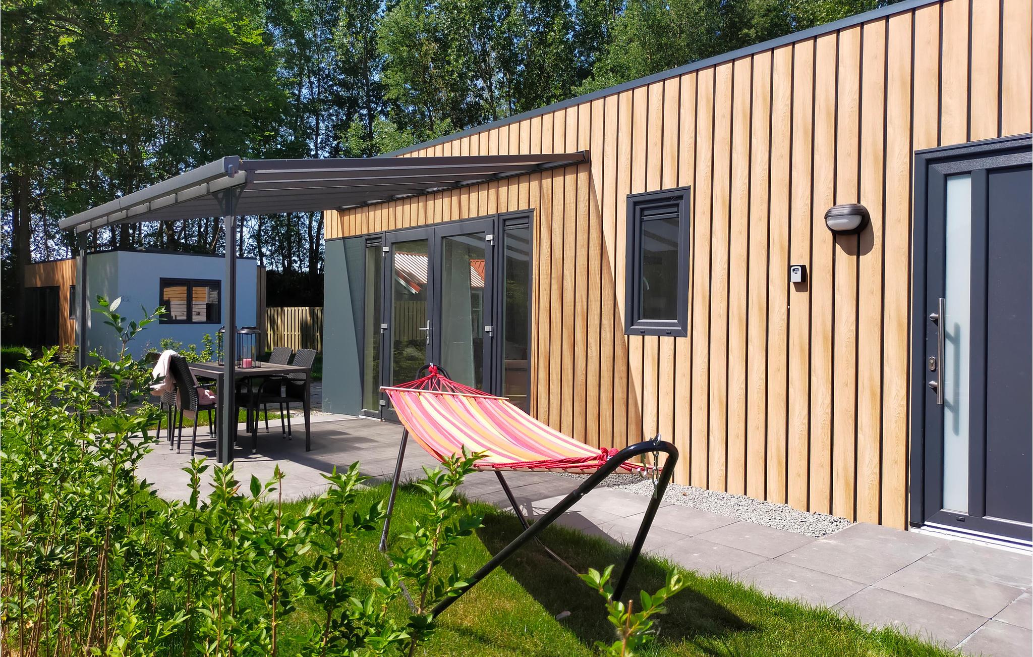 Her får I en hyggelig, lys og veludstyret base til en ferie med masser af aktivitetsmuligheder lige uden for døren. I ferieparken finder I blandt andet flere legepladser, en boldbane, en solplæne, en restaurant og ikke mindst en stor pool med vandrerutchebane, der indbyder til mange timers badesjov. Derudover er der selvfølgelig også selve søen, som I også kan bade i.