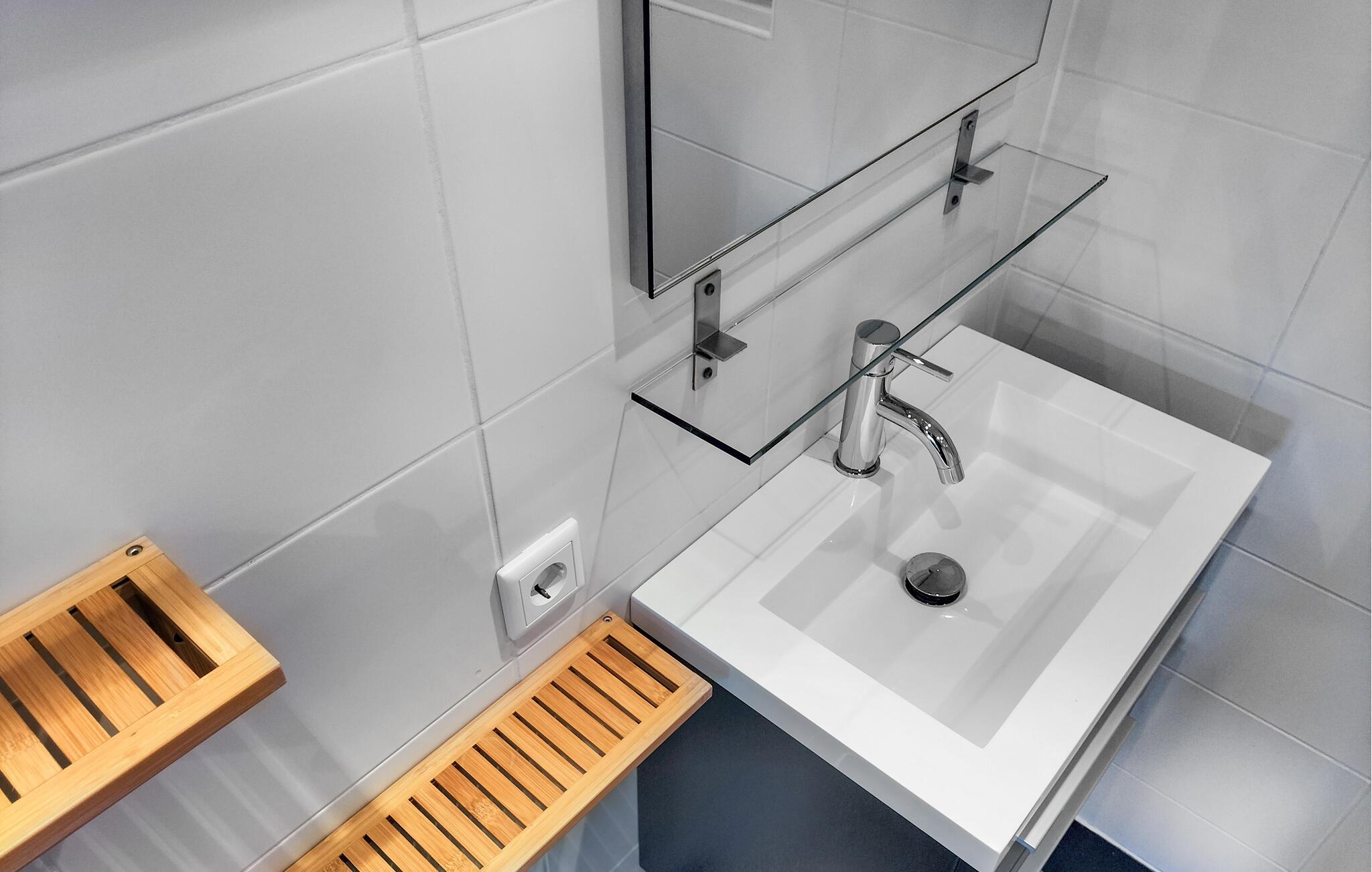 Badeværelse (nr. 1) - Varmt og koldt vand. Håndbruser, badekar og bruser