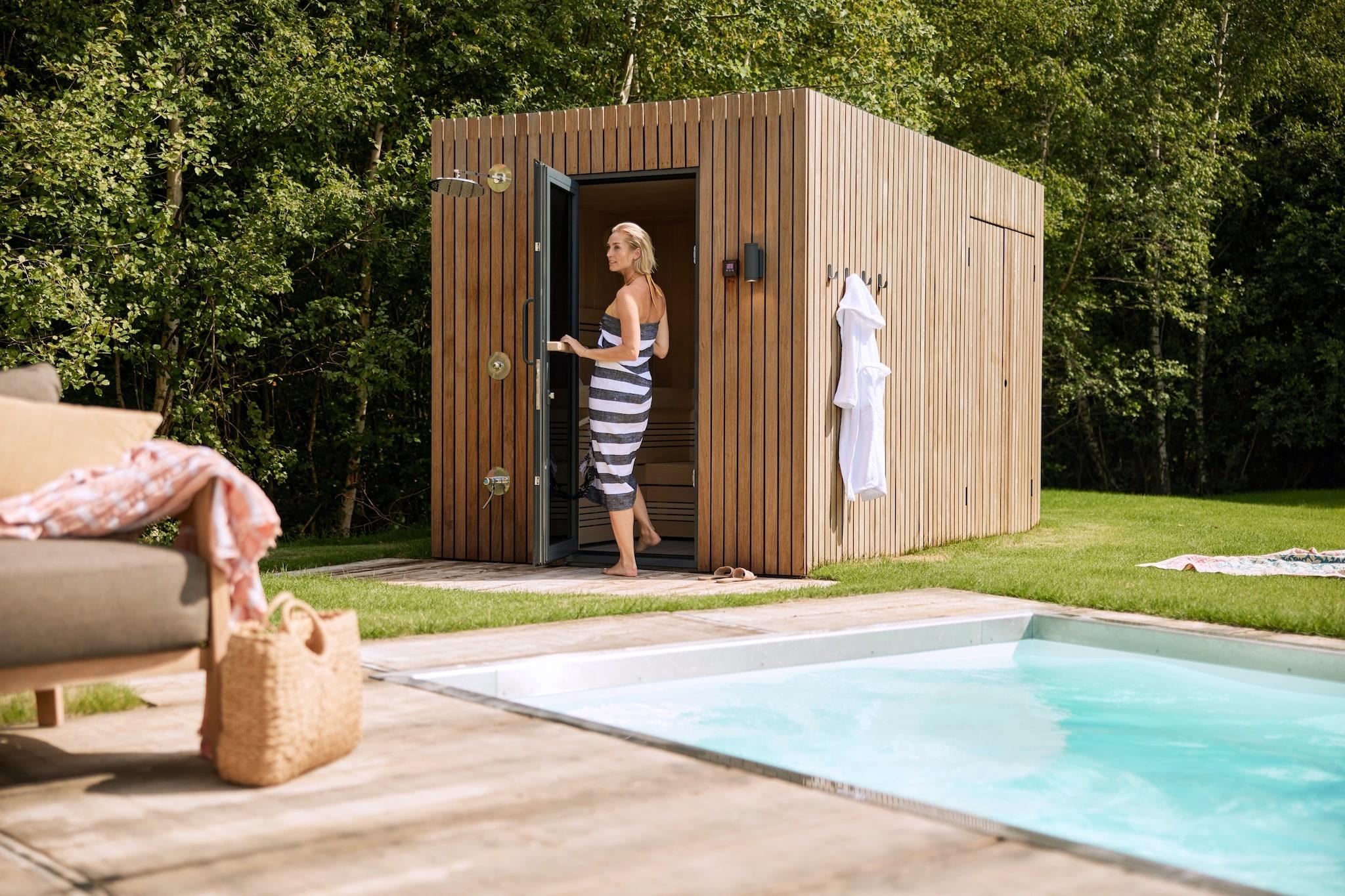 Stueetage: (entre, Stue(Fjernsyn), åbent køkken(cooker, komfur(induktion), kaffemaskine(kopper), combi-mikroovn, opvaskemaskine , køle-fryseskab), Soveværelse med badeværelse(dobbeltseng, bruser, håndvask, toilet, føntørrer), Soveværelse med badeværelse(køjeseng, køjeseng, bruser, håndvask, toilet, føntørrer)) trådløst musiksystem, tørretumbler, sauna, vaskemaskine, varme(gennem aircondition), klimaanlæg, terrasse, have, havemøbler, grill, swimmingpool(privat, opvarmet), loungemøbler, Ladestation til el-biler