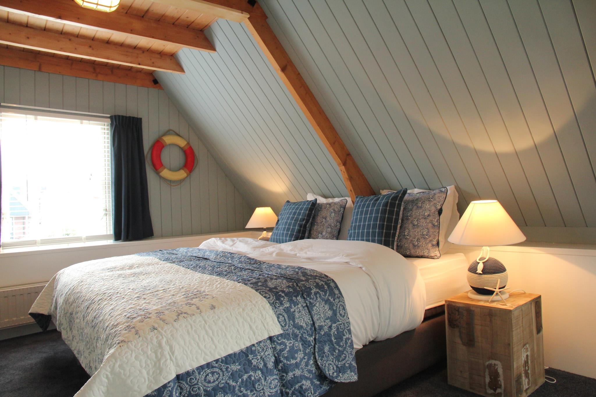 Dette feriehus i Hindeloopen tilbyder et komfortabelt og rustikt fristed med moderne detaljer. Stueetagen har et åbent køkken, der er fuldt udstyret med elkedel, gaskomfur, ovn, opvaskemaskine og køleskab med fryser. Den indbydende stue/spisestue har digitalt tv med hollandske og tyske kanaler, et spisebord, en hyggelig brændeovn og komfortable siddepladser. Der er også et praktisk toilet på denne etage. Ovenpå finder du to soveområder og et badeværelse med bruser, to håndvaske og toilet. Ejendommen har centralvarme overalt. Udenfor fører havedøre til en privat, møbleret have med liggestole og grill, perfekt til afslapning udendørs. Cykler kan lejes efter anmodning. Hindeloopen er kendt som en af Europas smukkeste små byer med charmerende smalle gader, maleriske stræder og naturskønne broer - ideelt til spadsereture. Du kan tage en forfriskende dukkert i den nærliggende sø, kun 100 meter væk. For friluftsentusiaster er cykling gennem de fredfyldte frisiske enge en vidunderlig måde at opleve det lokale landskab på.