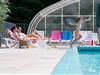 Stueetage: (entre, Stue(Fjernsyn, pejs), åbent køkken(køle-fryseskab), soveværelse(enkeltseng), badeværelse(bruser, håndvask, toilet)) På 1. etage: (soveværelse(2x enkeltseng), soveværelse(2x enkeltseng), Repos(trappegitter)) varme(central), terrasse, have, havemøbler, swimmingpool(deles med andre gæster), swimmingpool(deles med andre gæster, overdækket)