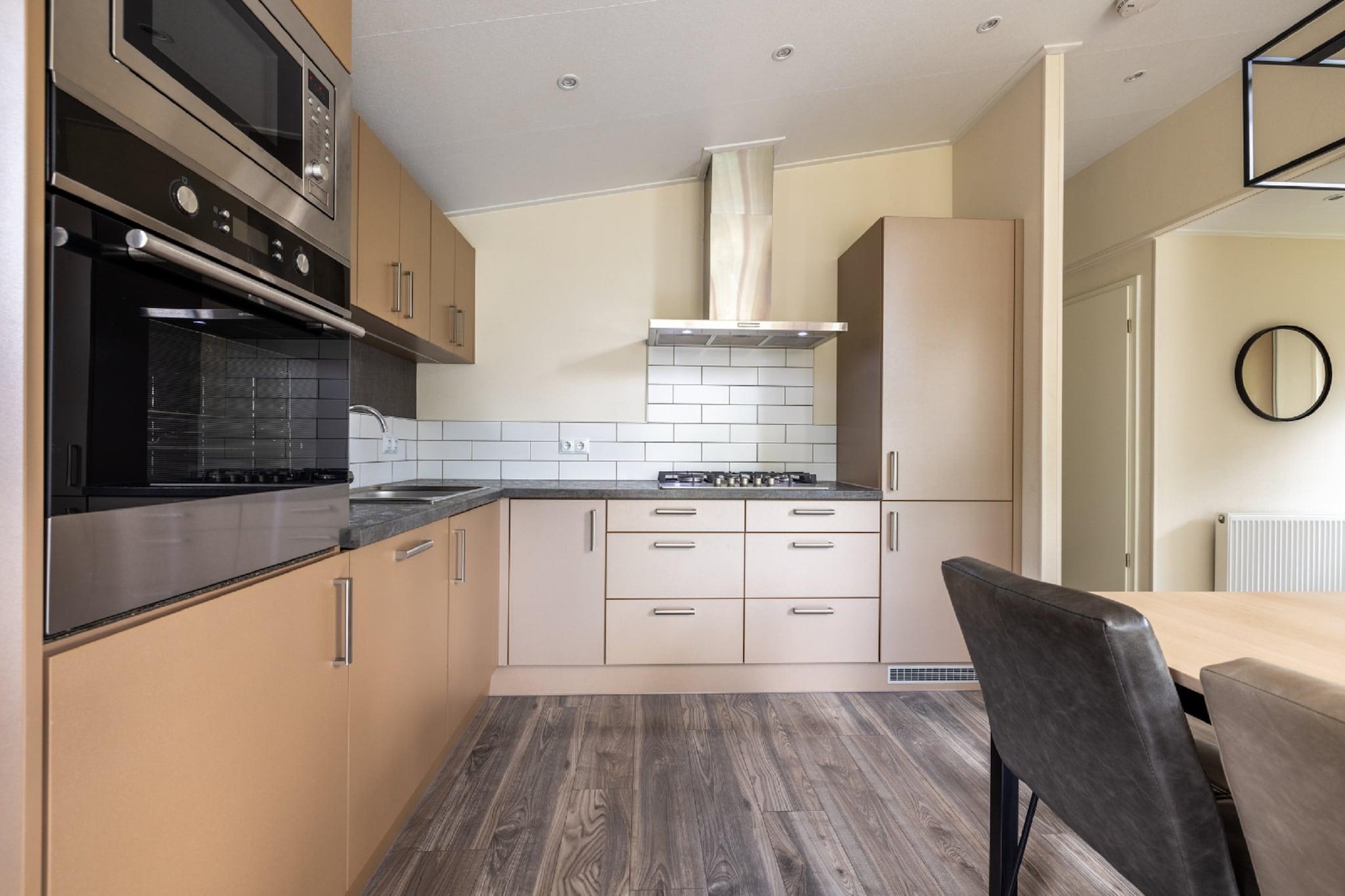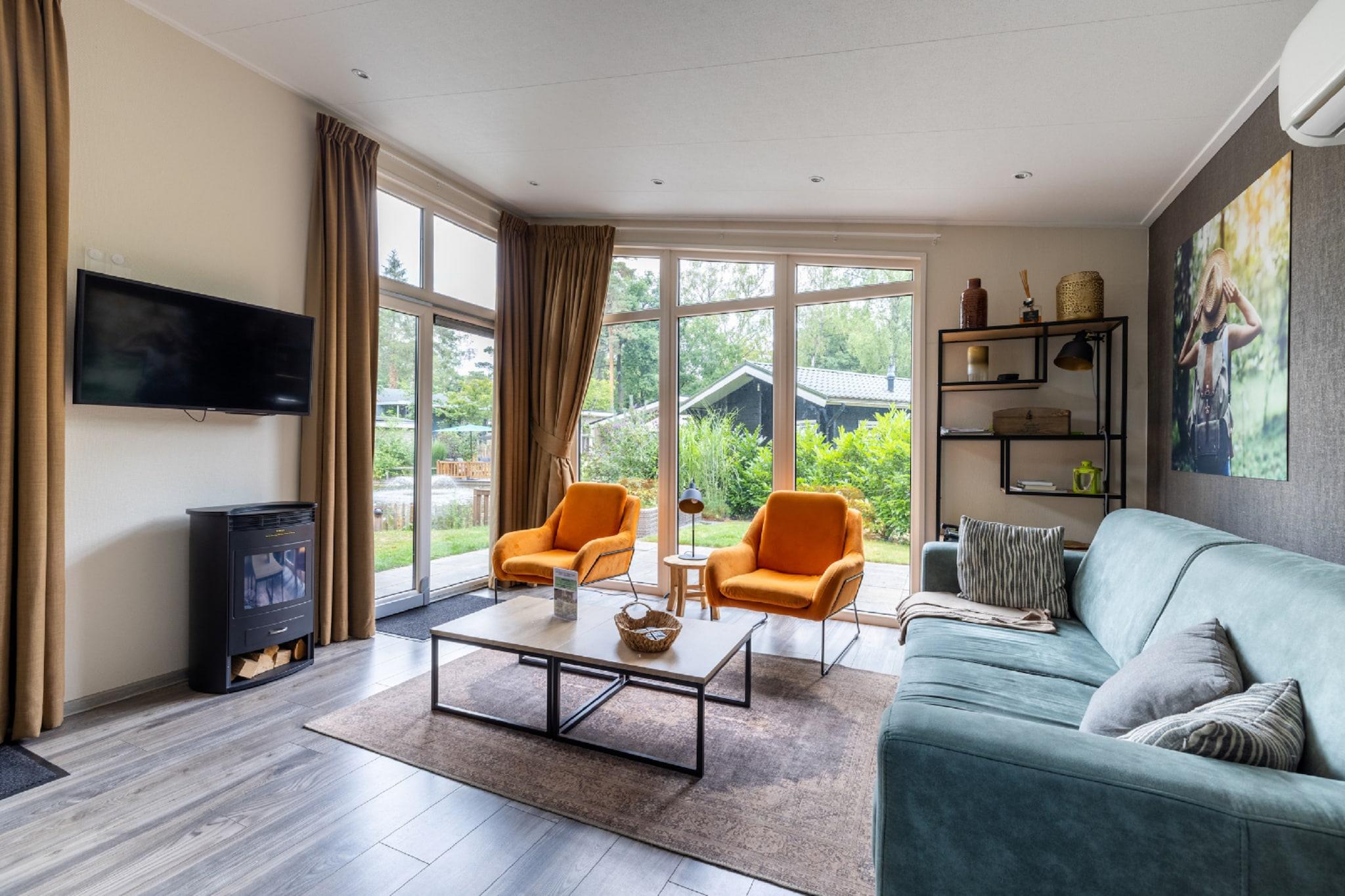 Moderne komfort i skovmiljø Denne hyggelige 6-personers hytte er beliggende blandt træerne i de fredelige omgivelser i Hoenderloo og tilbyder en perfekt blanding af natur og komfort. Indvendigt skaber finishen af høj kvalitet, den varme indretning og det airconditionerede opholdsområde en indbydende atmosfære for par, familier eller venner. Det åbne køkken er fuldt udstyret, og med tre gennemtænkt designede soveværelser - heraf to med boksmadrasser og et tredje med enten køjer eller to enkeltsenge - har alle deres eget hyggelige sted at slappe af. Haveafslapning og skoveventyr Træd ud gennem havedørene til et smukt anlagt uderum med egen terrasse og komfortable havemøbler. Uanset om du slikker solen eller nyder en kølig, skyggefuld eftermiddag med en bog, er denne have perfekt til sommerdage. Hytten er en del af en rummelig feriepark med en fælles opvarmet udendørs pool, og afhængigt af tilgængelighed kan du endda booke en hytte med udsigt over dam, infrarød kabine eller dekorativ pejs til et ekstra specielt ophold. Kæledyrsvenlige aktiviteter og lokal spisning Tag din lodne ven med – denne skovflugt er kæledyrsvenlig! Gå på naturskønne stier i den nærliggende Nationaal Park De Hoge Veluwe, eller lad din hund udforske områder uden snor som Kootwijkerzand. Efter en dag med eventyr kan du tage til kæledyrsvenlige spisesteder som De Smaak van Hoenderloo eller Brasserie Délicat for en lokal bid. Denne hytte er et fredeligt, praktisk og kæledyrsvenligt tilflugtssted i hjertet af Veluwe.