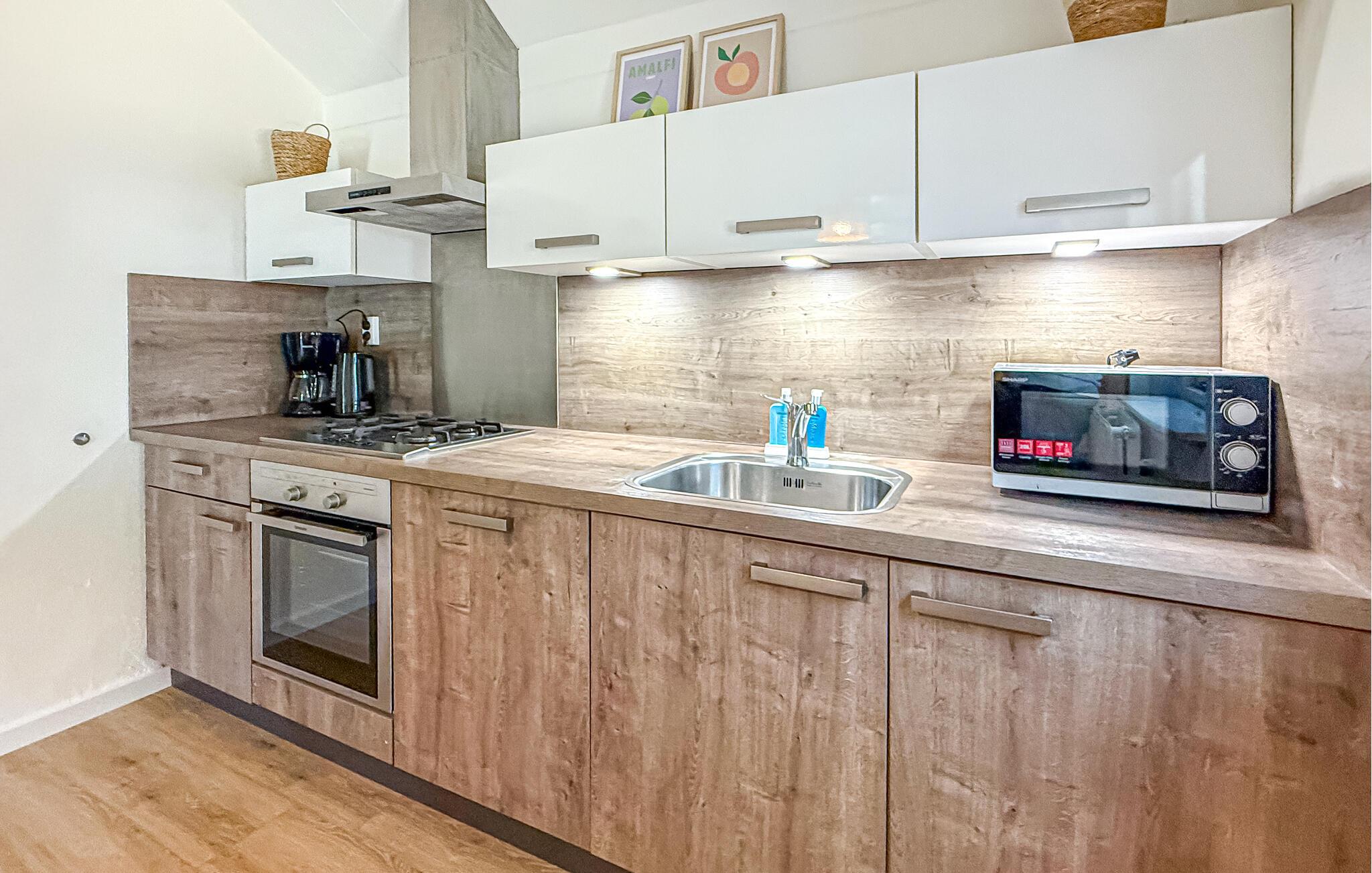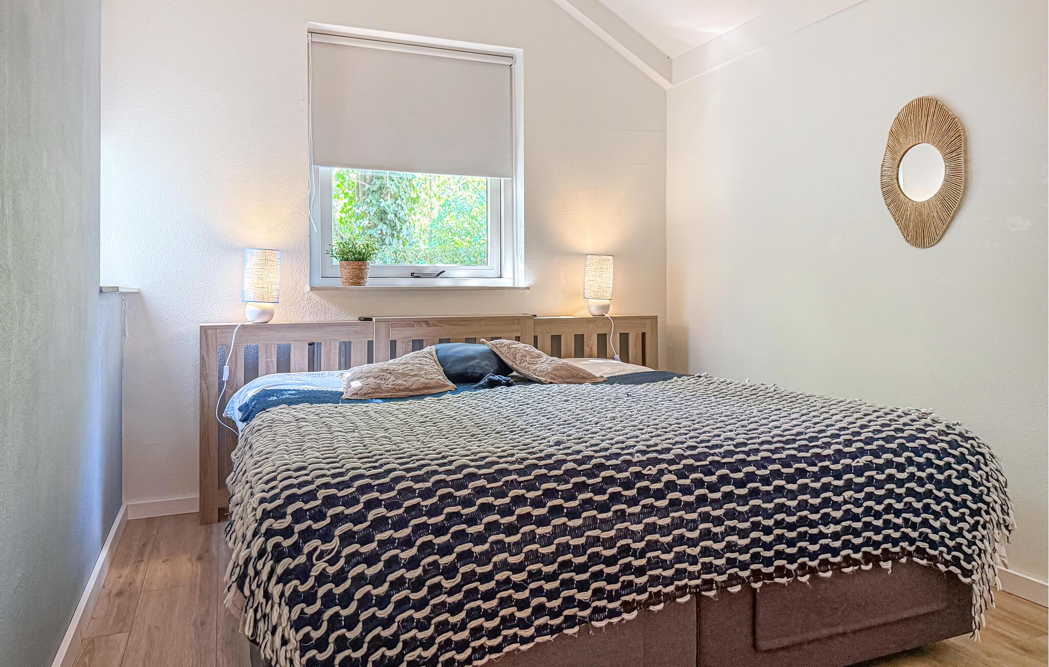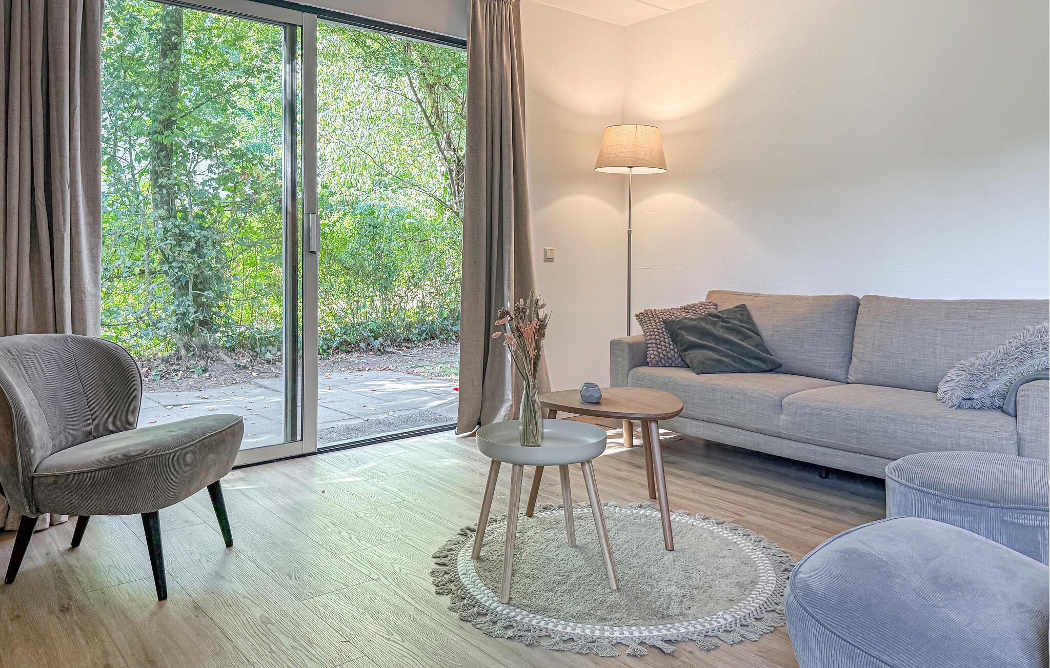 Nyd afslappende dage i dette attraktive feriehus omgivet af natur. Bliv budt velkommen af de lyse og smagfulde møbler. Slap af i den komfortable sofa, se tv eller læs en bog i den fredelige atmosfære i opholdsstuen. Udnyt den åbne planløsning, der skaber en venlig atmosfære. Tilbered jeres yndlingsretter i det veludstyrede køkken-alrum og nyd måltiderne sammen ved det store spisebord. Åbn skydedørene og gå ud i haven. Tag plads på terrassen med udsigt over dammen og afslut dagen med en drink i aftensolen. Tænd et bål i den stilfulde udendørspejs og tilbring noget kvalitetstid udenfor. Leg med børnene på græsplænen eller slap blot af og oplev naturen. Besøg ferieparken Camping Bosbad Hoeven og oplev de mange rekreative muligheder i området. Tag en tur til det nærliggende vandland Splesj, udforsk de charmerende byer Breda og Roosendaal, eller cykl gennem de vidtstrakte landskaber i Nordbrabant. Besøg historiske slotte eller nyd regionale specialiteter på hyggelige restauranter.