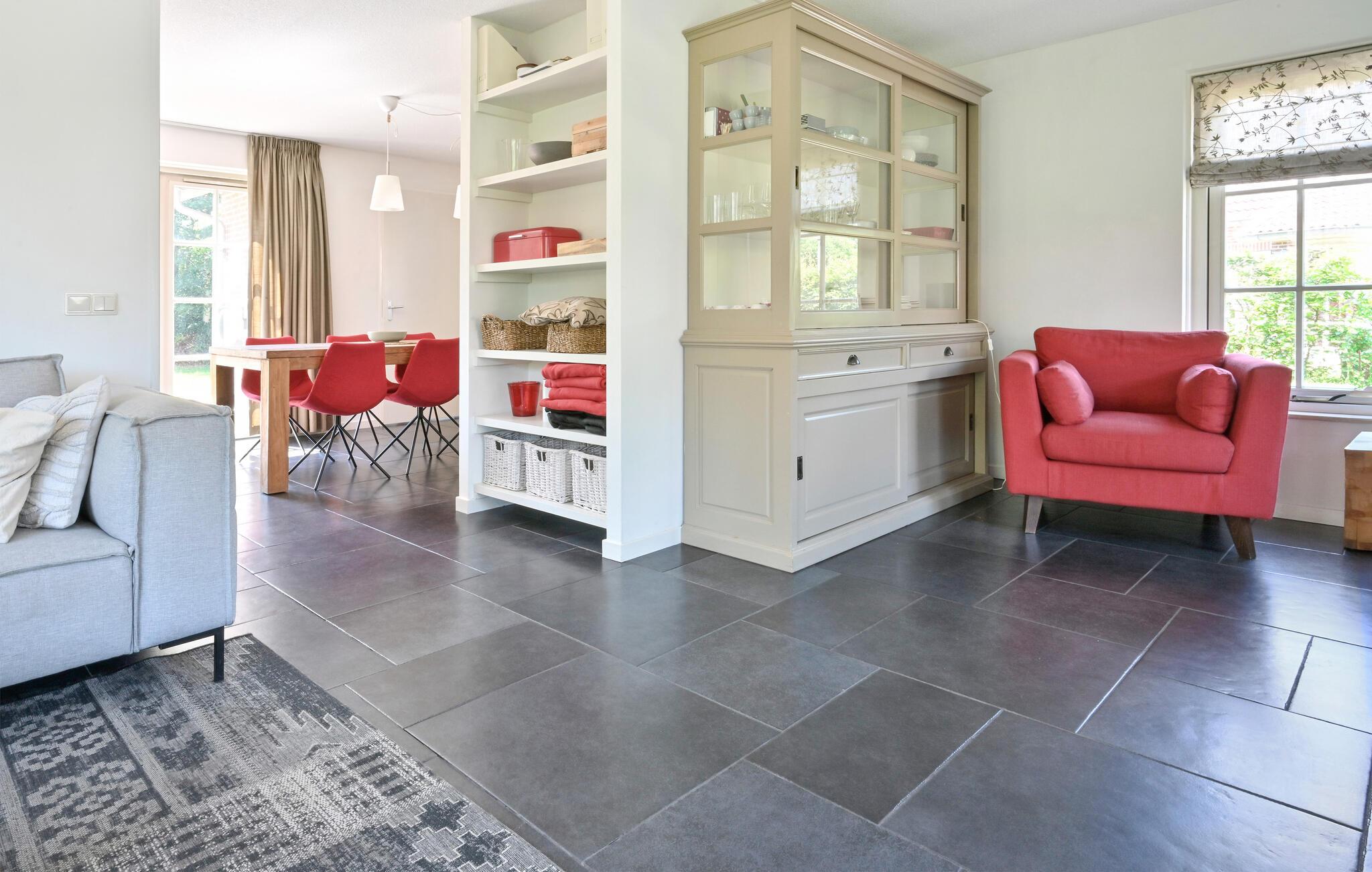 Denne komfortable luksusvilla er beliggende i ferieanlægget Buitengoed Het Lageveld. Ved siden af parken ligger der en badesø (36 ha) - i løbet af sommermånederne et bade- og fritidsparadis. Trampolinen kan bruges sammen med HOV120. Varer opholdet mere end en uge, bliver sengelinned skiftet hver uge (gebyr pr. uge).