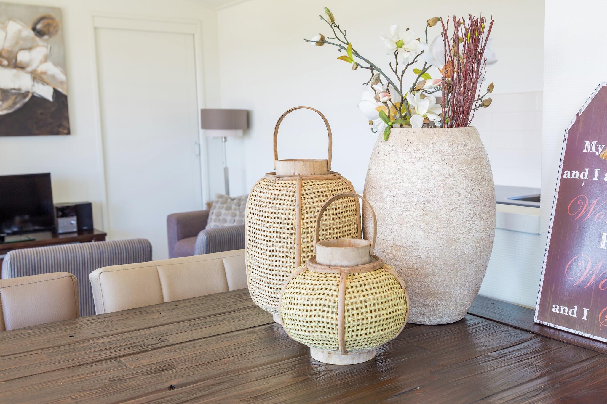 Stueetage: (åbent køkken(elkedel, komfur(gas), kaffemaskine(kaffetragt), combi-mikroovn, opvaskemaskine , køleskab(+ fryser)), stue / spisestue(Fjernsyn(fladskærm), spisebord(4 personer), DVD-afspiller), Soveværelse med badeværelse(2x enkeltseng(dynebetræk), Fjernsyn, rejseseng, bruser(enhed), håndvask, toilet), Soveværelse med badeværelse(2x enkeltseng(dynebetræk), Fjernsyn, bruser(enhed), håndvask, toilet)) tørretumbler, vaskemaskine, varme(central), terrasse, havemøbler, parkering, swimmingpool(deles med andre gæster, overdækket), barnestol