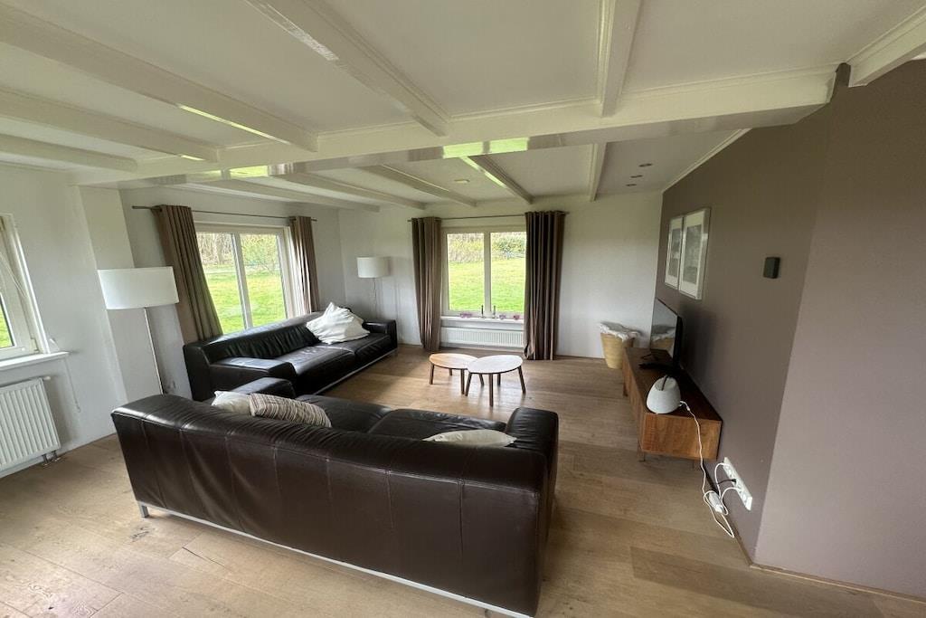 Feriehuset har moderne møbler og en stor have og terrasse. Husets indretning: Entré med separat toilet og bruser. Der er en lys, rummelig stue med siddeområde, fladskærms-tv og Bluetooth-højttaler. Det åbne køkken med spisebord til 8 personer er udstyret med opvaskemaskine, ovn og køleskab med frostboks. Dobbeltdøre fører ud til den møblerede terrasse. Soveværelser (4) Soveværelserne ligger på samme etage. Alle værelser har luksuriøse boxmadras. Badeværelser (1) Badeværelset ligger på første sal og har bruser, badekar, toilet og bred vask. Terrasse Terrassen har et spisebord, 4 liggestole og 2 liggestole. En stor trampolin er gravet ned i haven.