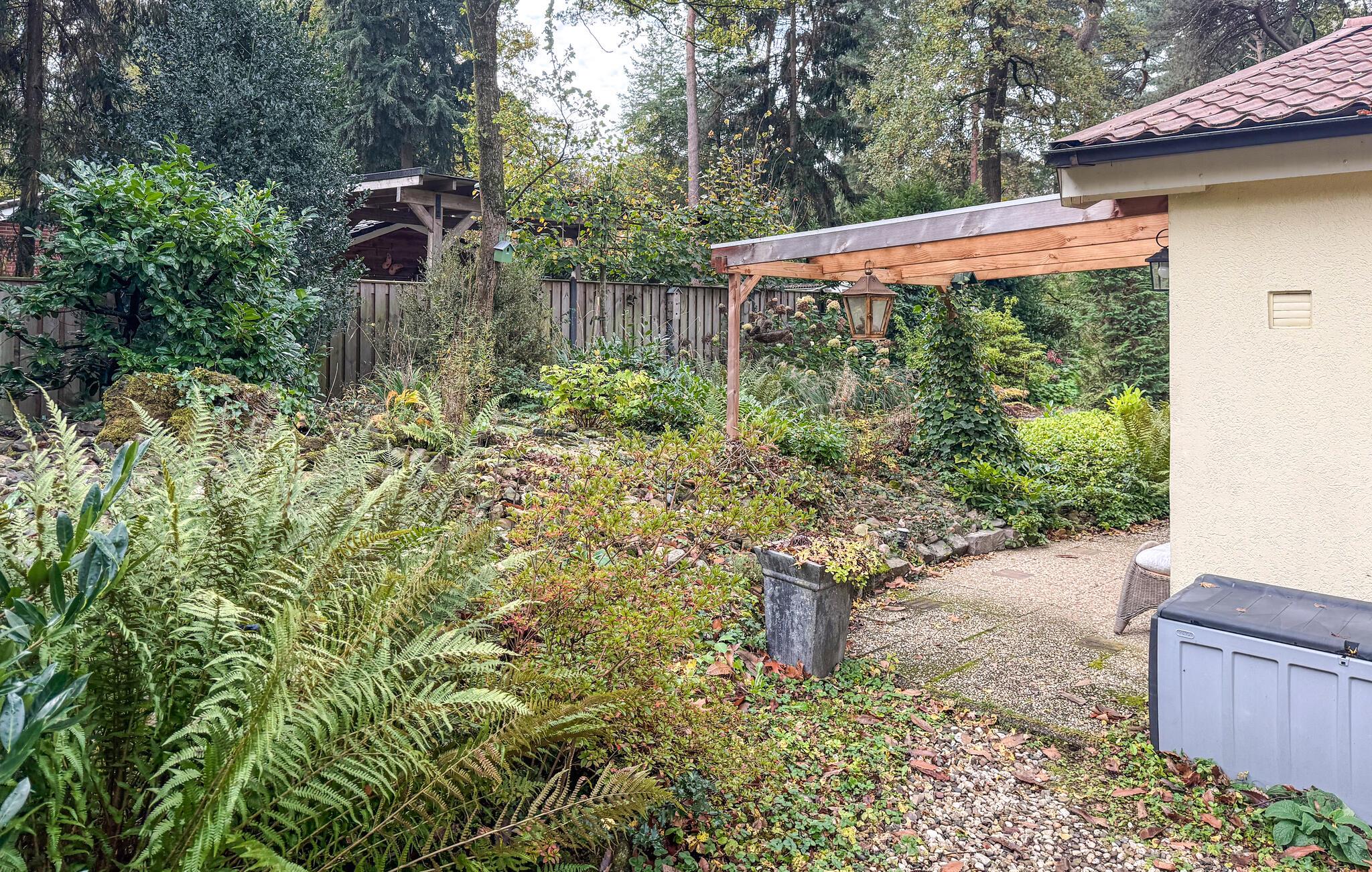 Nyd en afslappende ferie i dette hyggelige feriehus med den idylliske have. Tilbring afslappende dage i dette smukt møblerede feriehus. Beliggende i en frodig have og omgivet af træer, er det det ideelle tilflugtssted for par eller små vennegrupper, der værdsætter fred og natur. Indenfor skaber diskrete farver, naturlige materialer og gennemtænkte detaljer en harmonisk og indbydende atmosfære. Den lyse opholdsstue med store vinduer tilbyder en smuk udsigt over de omkringliggende grønne områder. Slap af i den komfortable sofa, læs en bog eller nyd blot roen. Det moderne, åbne køkken inviterer jer til at lave mad sammen og afslutte dagen med et lækkert måltid. Gå udenfor og nyd det varierede udvalg af planter i den fortryllende have. Tag plads på den overdækkede terrasse eller på et af siddeområderne i haven og lyt til dammens blide skvulpen. Nyd jeres morgenkaffe i solskinnet eller tilbring aftenen under den klare himmel. Udforsk de varierede omgivelser i jeres feriedestination. Tag på vandretur eller cykeltur i Sallandse Heuvelrug Nationalpark, hvor hedeområder og skove inviterer jer til at udforske. Besøg den charmerende landsby Holten med dens små caféer og butikker, eller tag en dagstur til de historiske byer Deventer og Zutphen.
