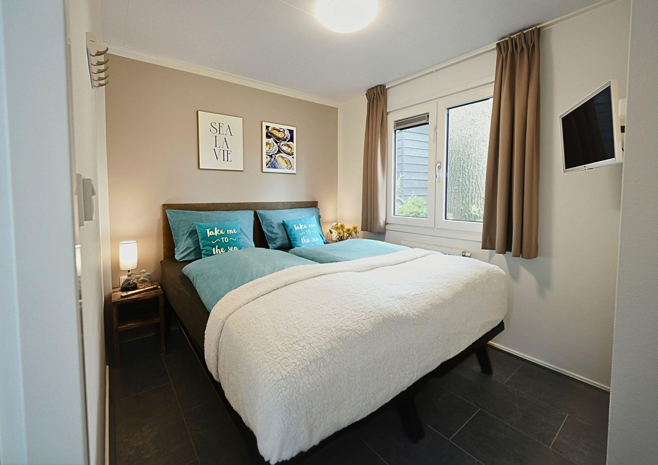 Das freistehende Chalet (eingezäunt) befindet sich in einer traumhaften Parklandschaft in einem der schönsten Ferienparks in den Niederlanden.
